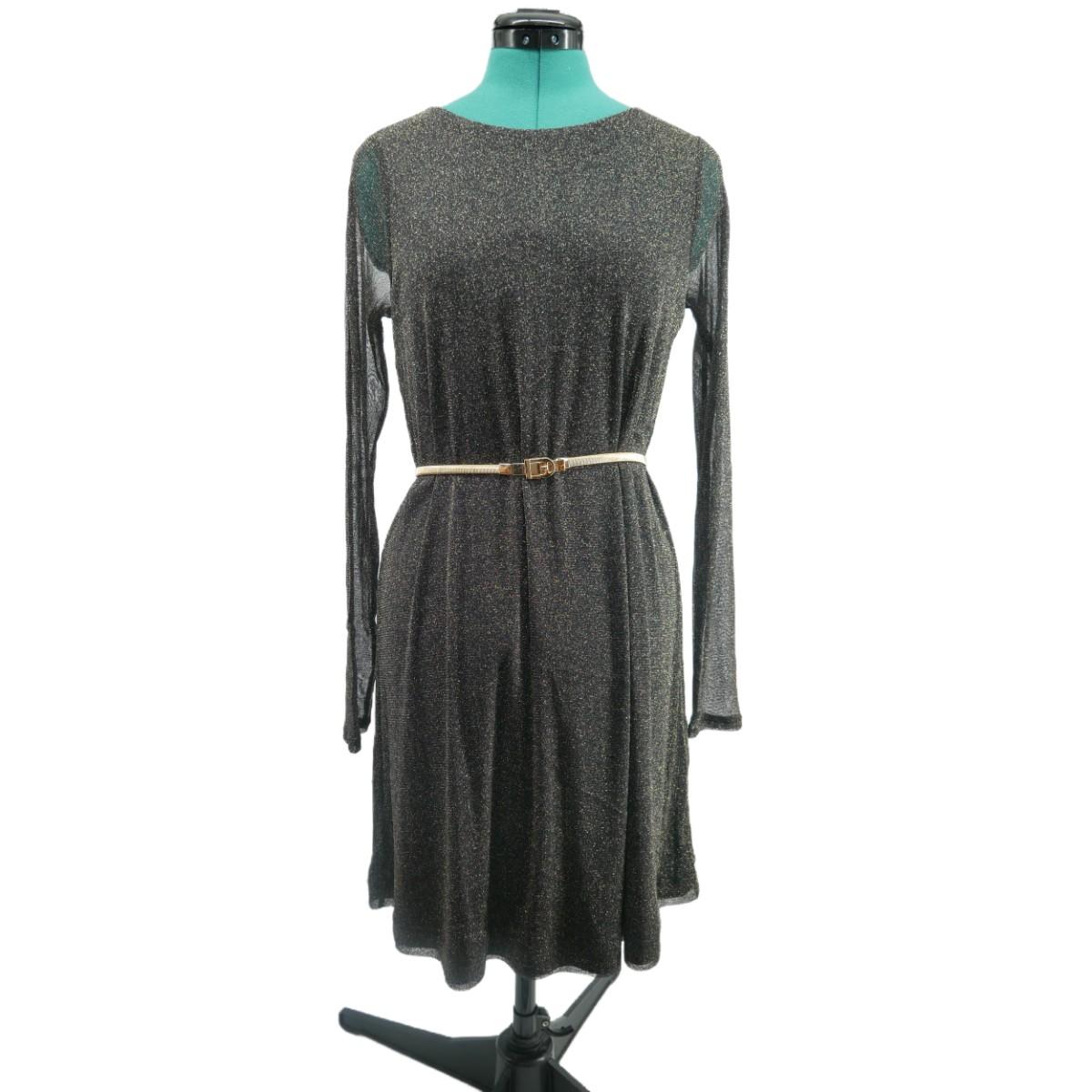 Lilly Pulitzer black and gold sparkly dress with sheer long sleeves. Women's size medium. In wonderful condition, belt is not included.