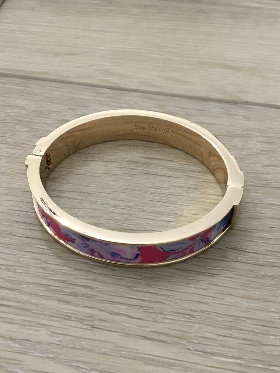 Lilly Pulitzer Photodome Pink Blue Bangle Bracelet Small Pink Isle Floral Gold