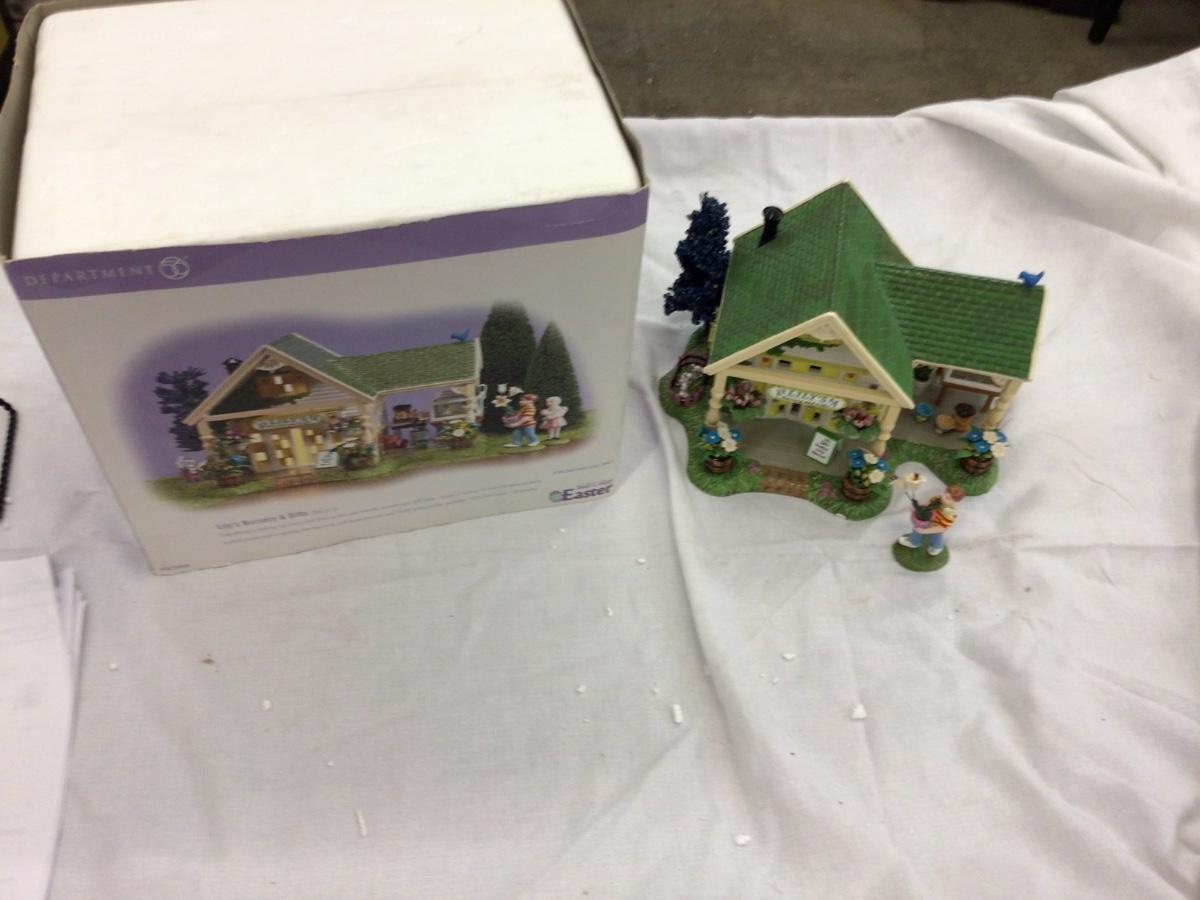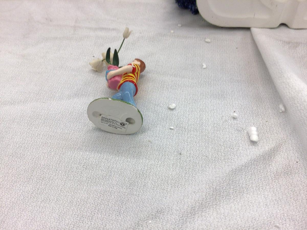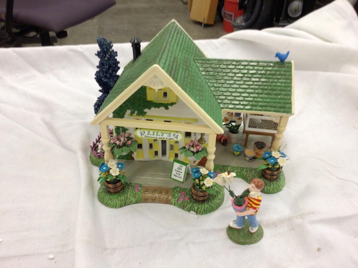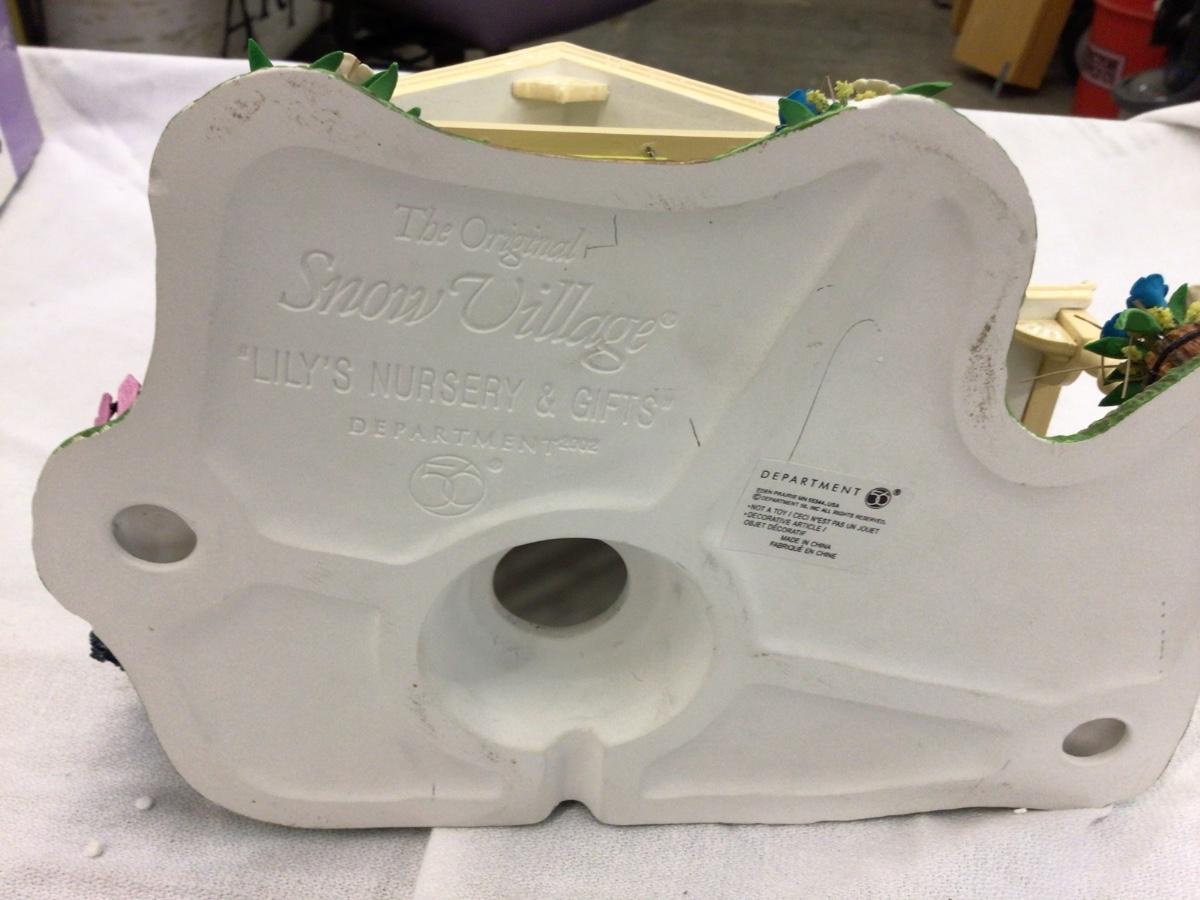 Lily’s Nursery Gifts Dept. 56 Snow Village has chips (See pics) and is missing girl figurine. Has box and light.
