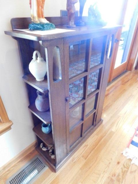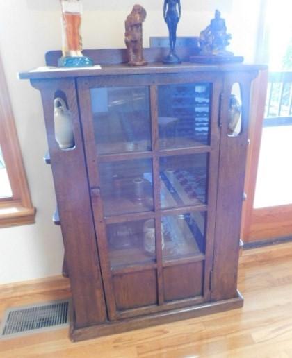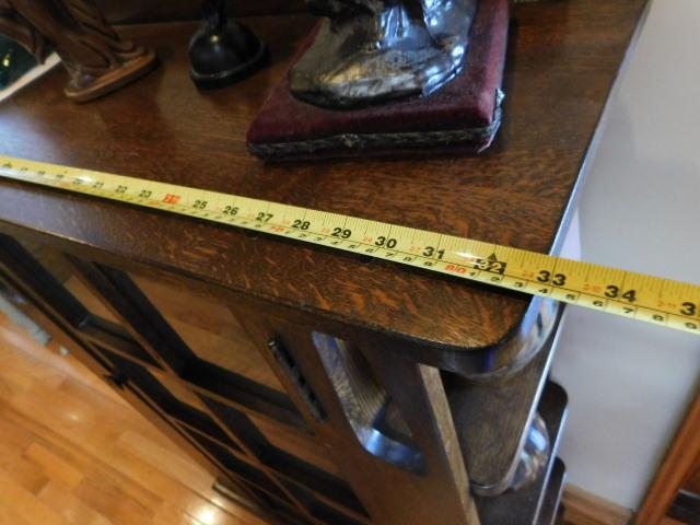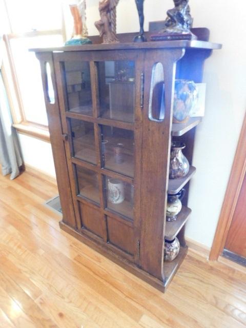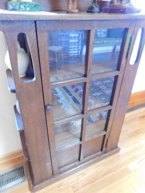 Limbert Design Oak Arts and Craft Cabinet with Side Shelves 33"x13"x46" (No Contents) may expect scratches or wear. Very nice. Great design and has terrific eye appeal