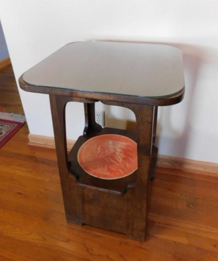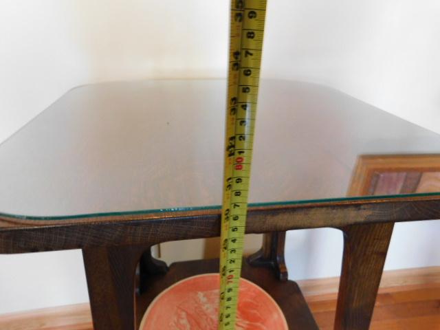 Limbert Inspired Oak Side Table with Cut Outs 20" with Glass Top expect some wear or scratches. Compare to online retail pricing of $650 or more.