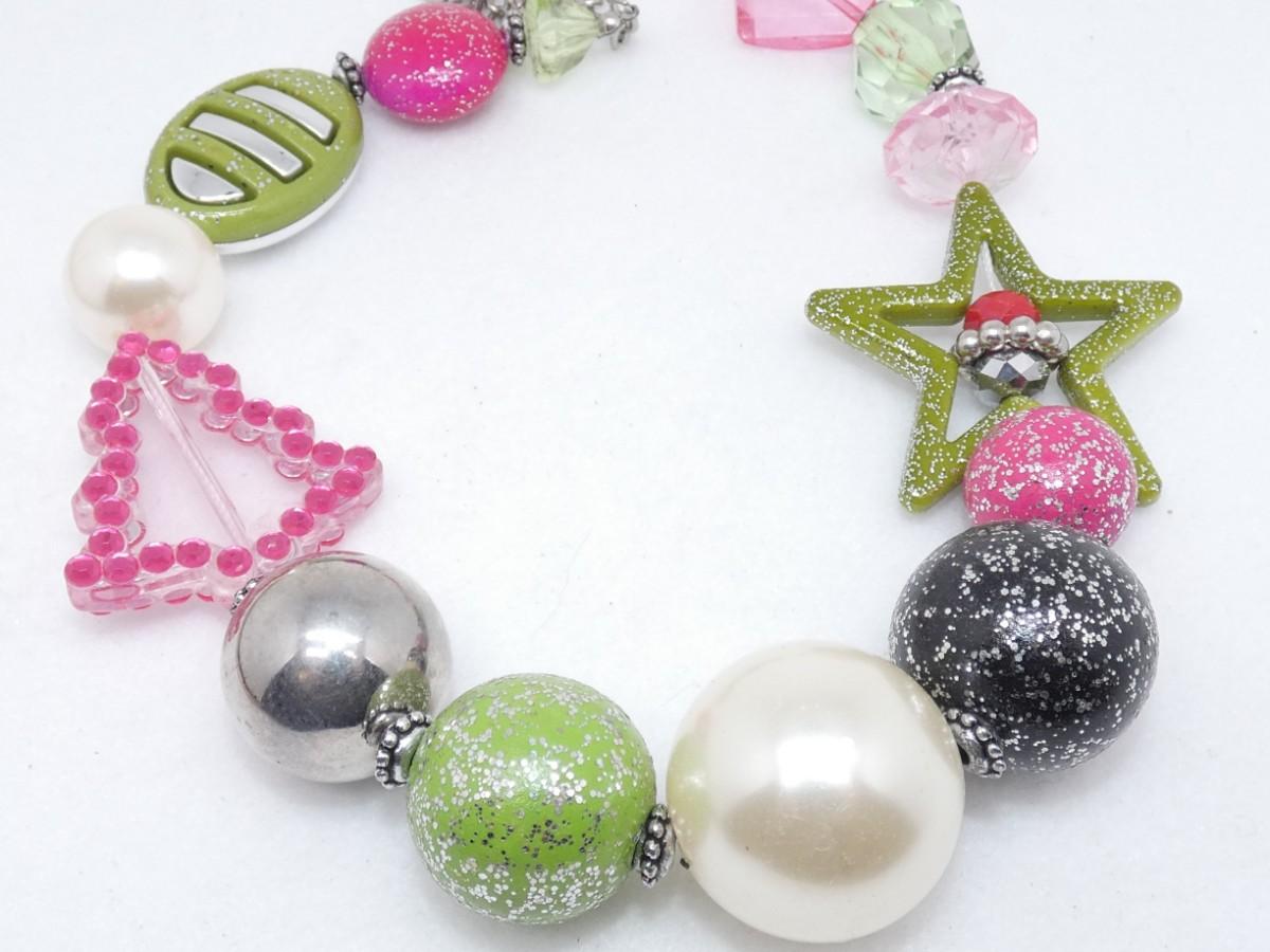Lime Green & Pink Christmas Statement Necklace, Christmas Tree, Star, Glitter