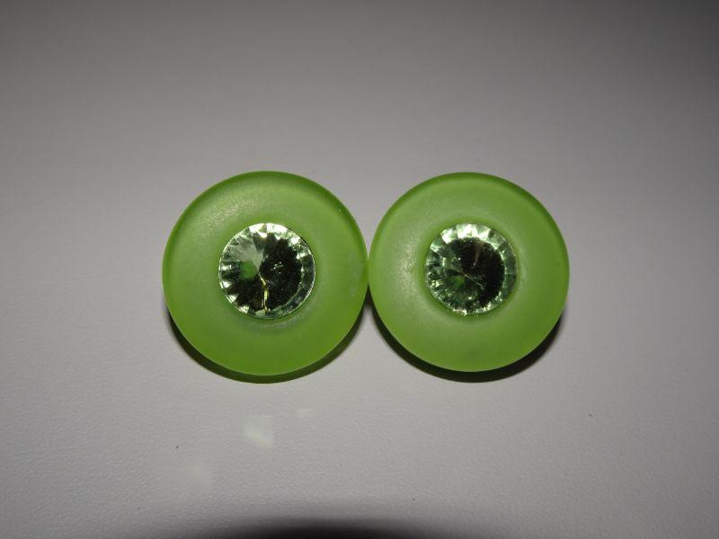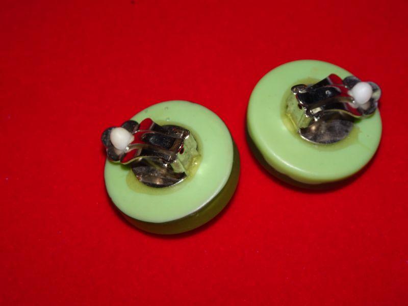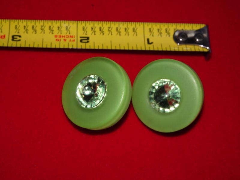Lime Green Rhinestone, Lucite? Clip Earrings, MCM, Christmas Earrings