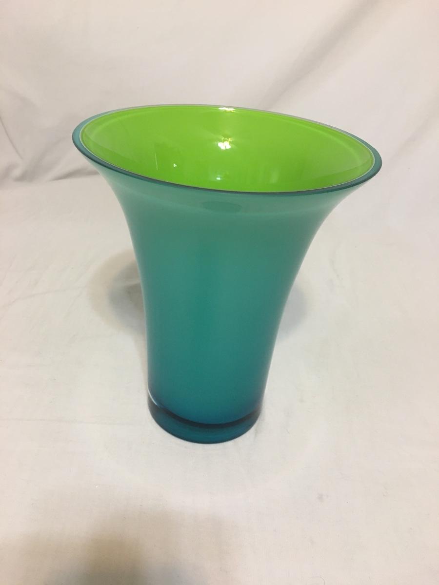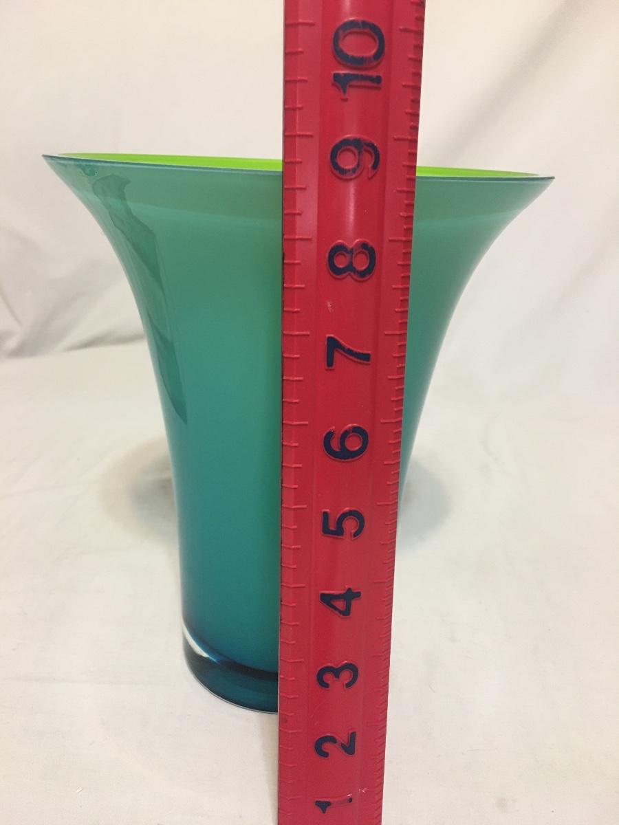 Lime/Teal Green Glass Vase - Crate & Barrel 8.75” **