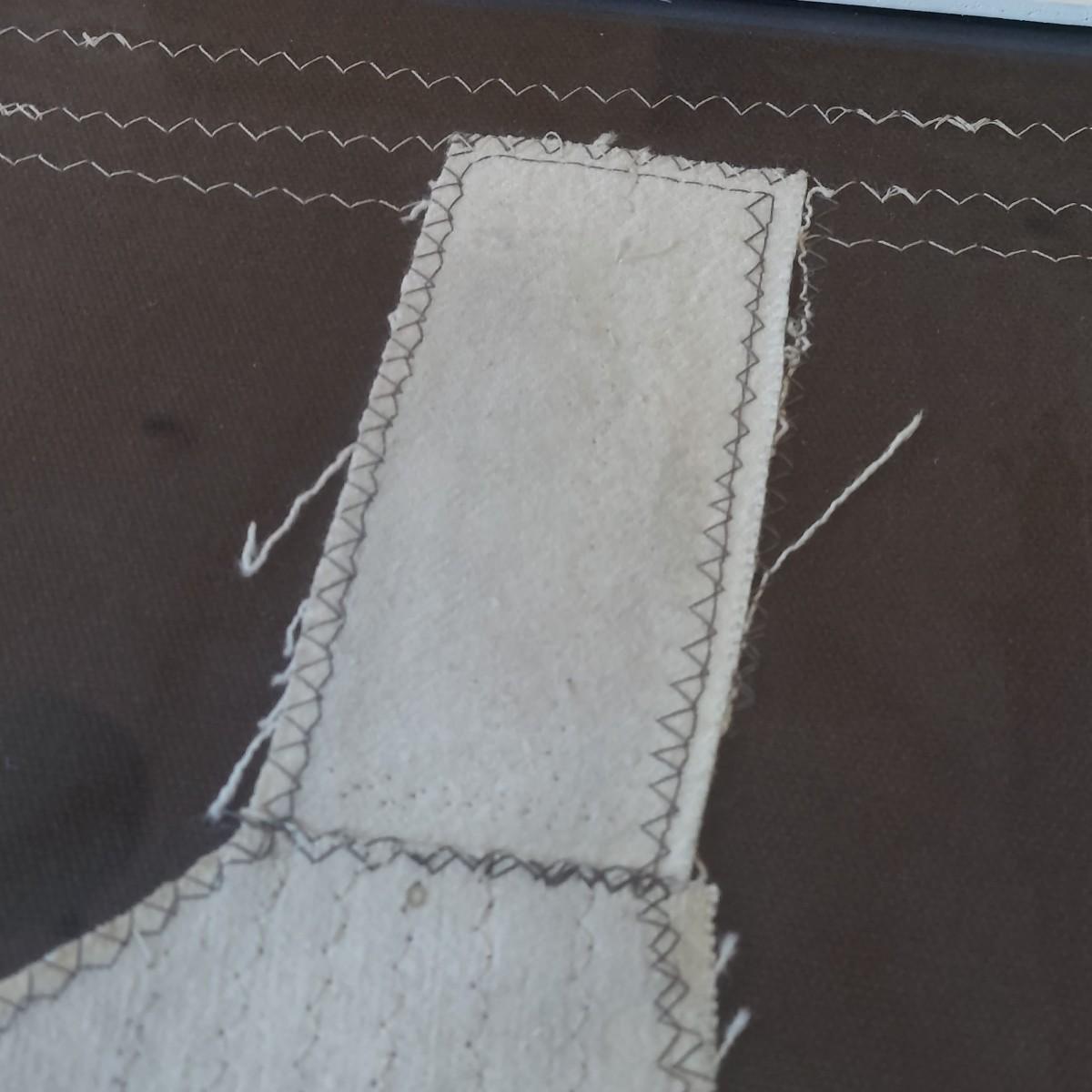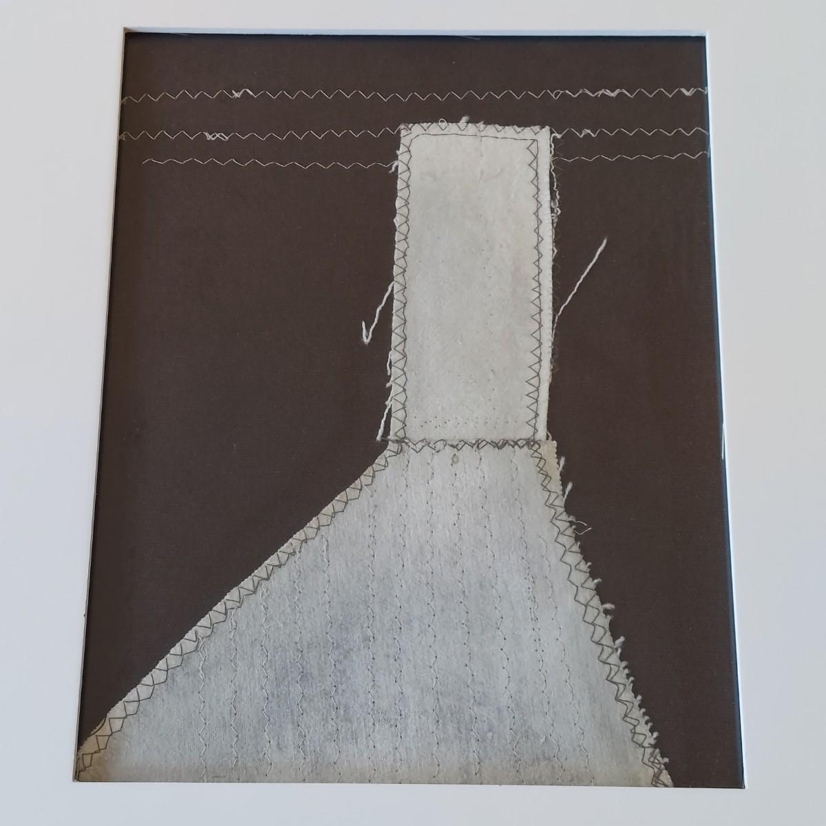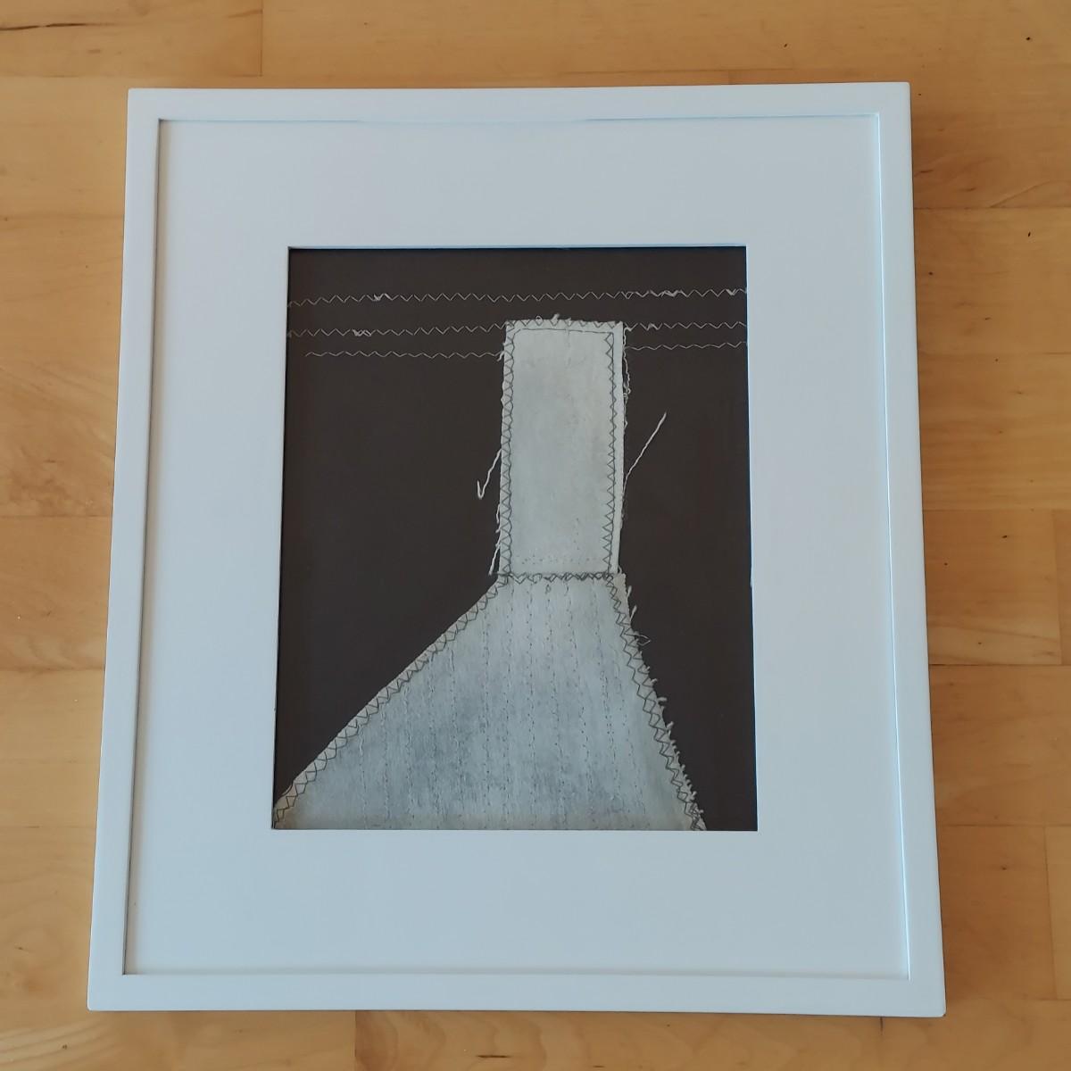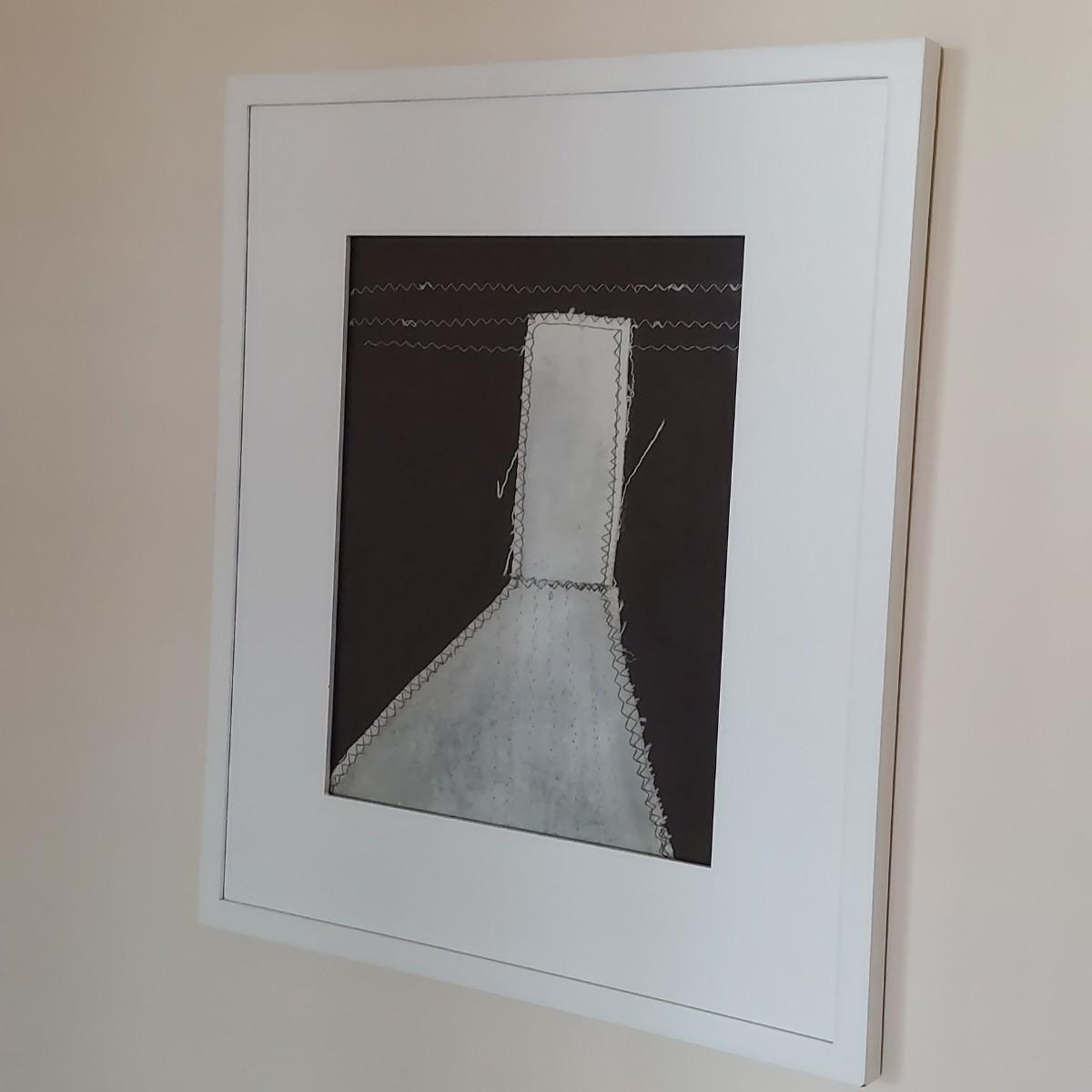 Fiber art in a liminal space style. Piece is framed under glass. Thick wooden frame measures 13” x 15"H. Appears to be signed and dated on back; B. Burns 2012. Please see photos for details. Shipping available