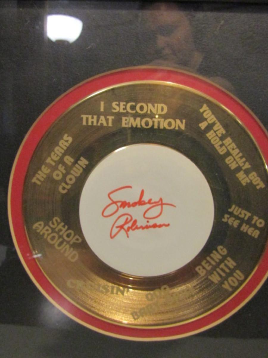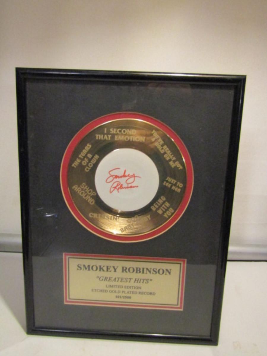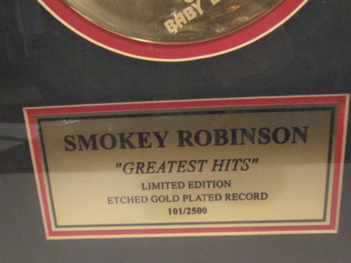 Limited Edition (101/2500) Smokey Robinson Etched Gold Plated Record- Framed, Approx 12 1/4" x 16 1/2"