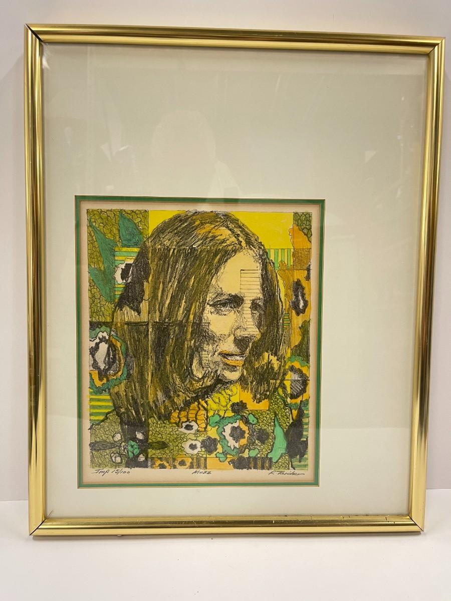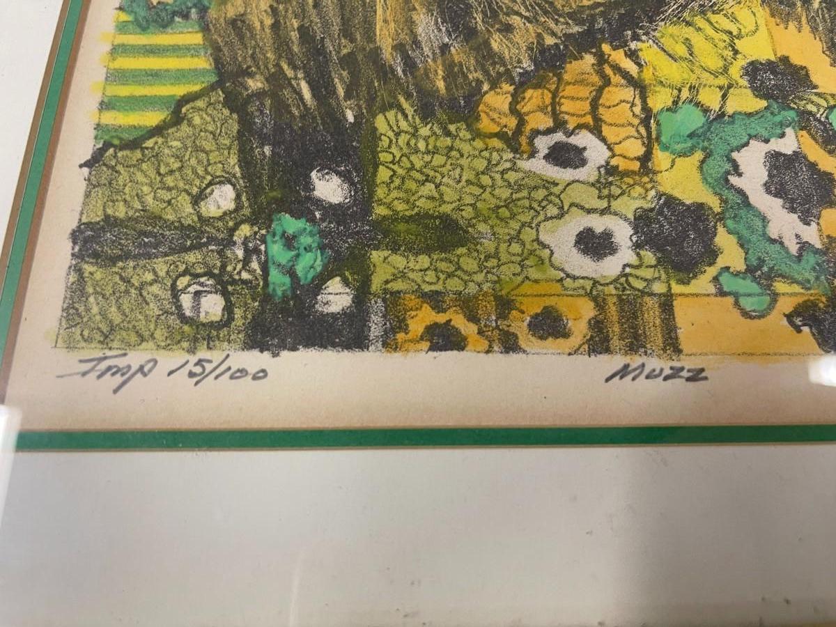 Richard Taicher signed and numbered limited edition print titled Muzz. 15/100. Framed: 15 x 18 1/2"; Matted size: Approx 9" x 10 1/2".