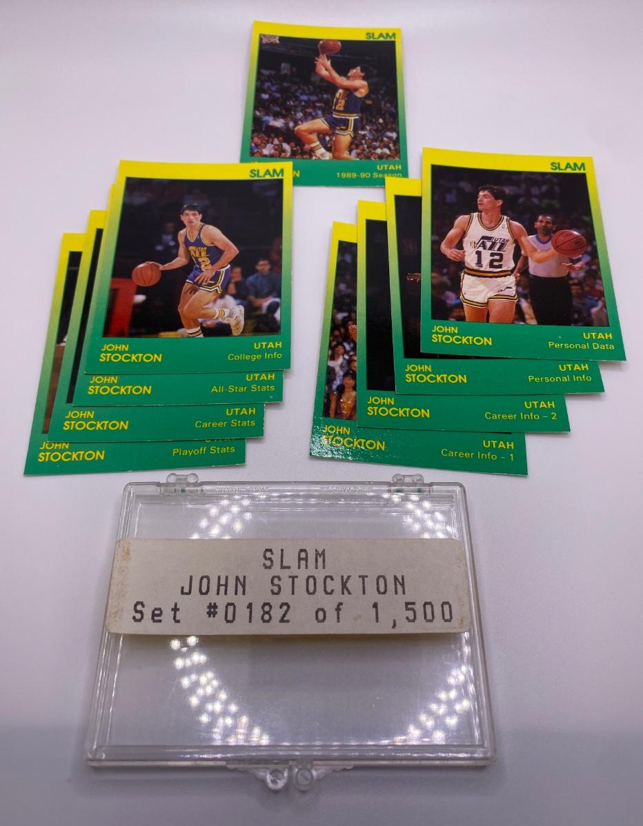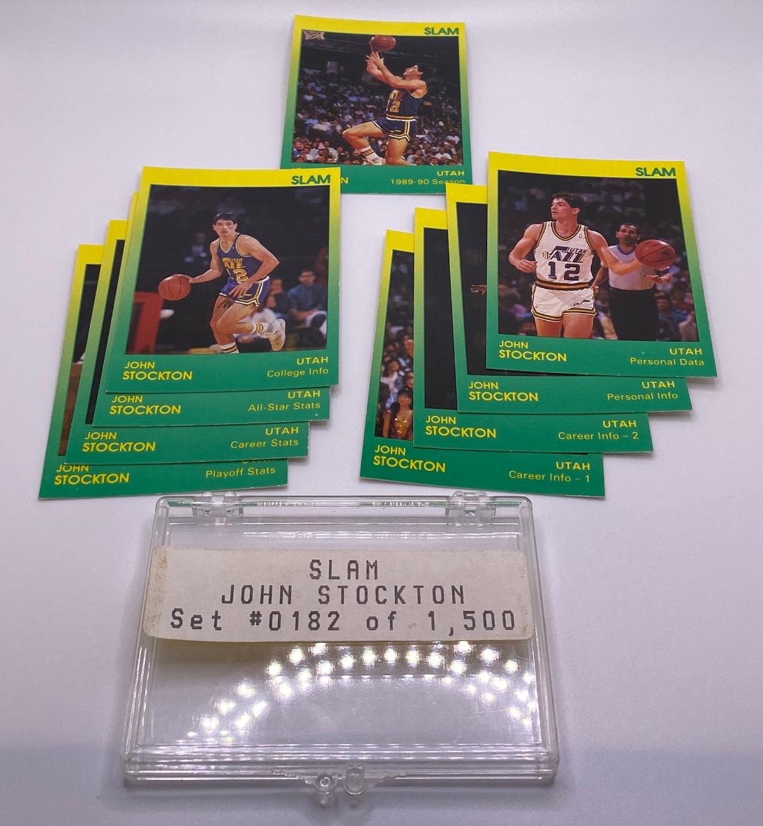 Limited Edition John Stockton Basketball Trading Cards. Set # 0182 of 1,500.