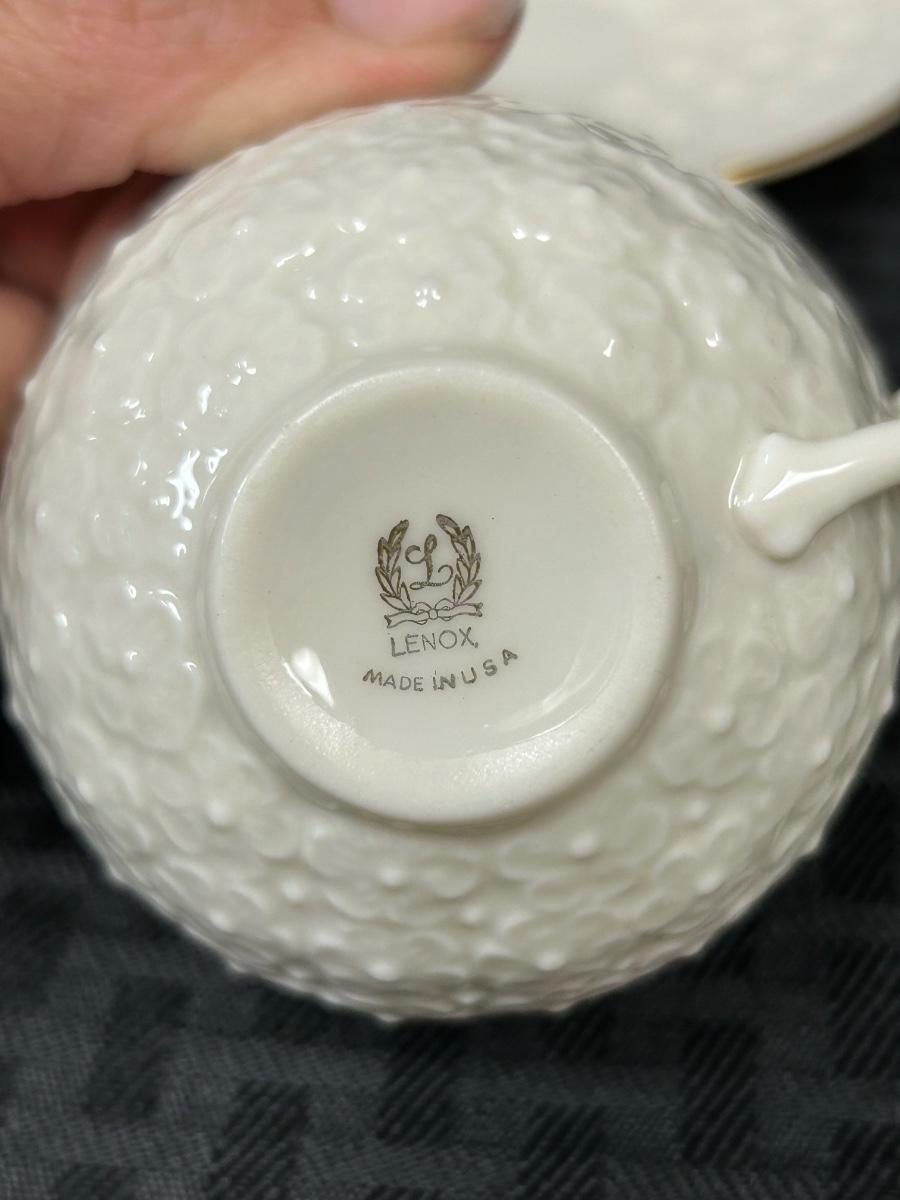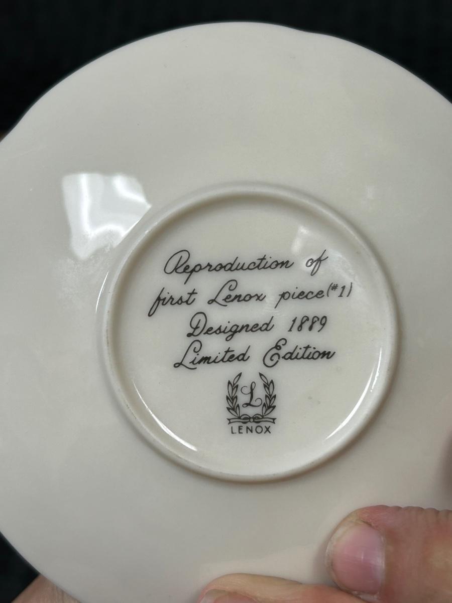 Limited Edition Lenox Ivory Teacup and Saucer Reproduction of First Piece Flower Quilted Pattern