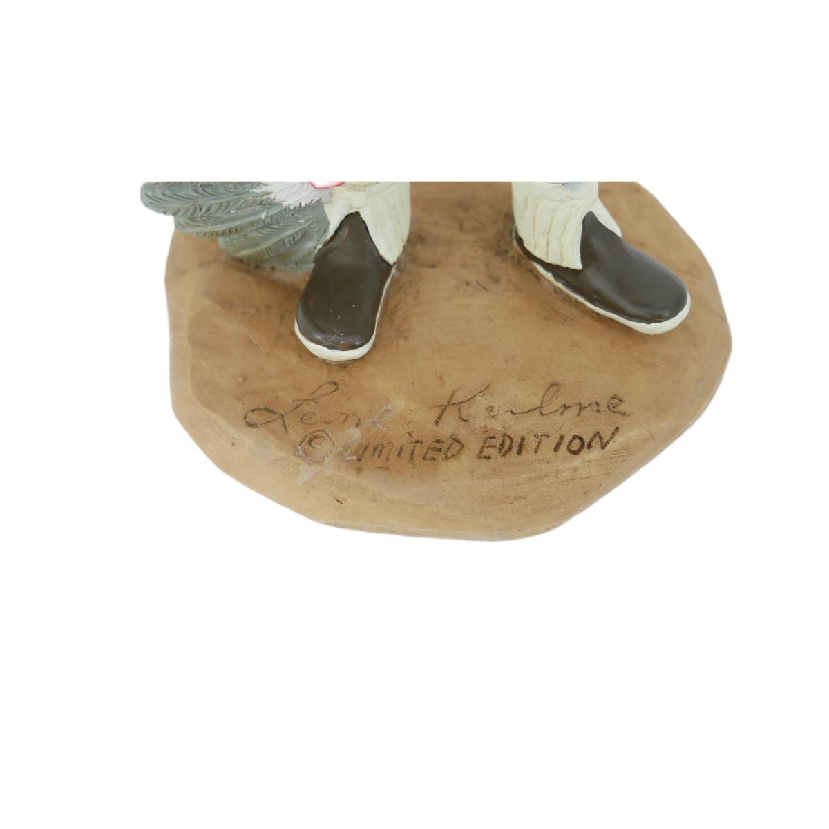 Limited edition Navajo Native American style clay pottery wolf mask kachina statuette. Signed Leone Kulme and numbered 227/3000. Excellent condition, no issues found. Does not come with tags or original box. Measures L 3" x H 7". Weighs 7.7 oz. (C64)