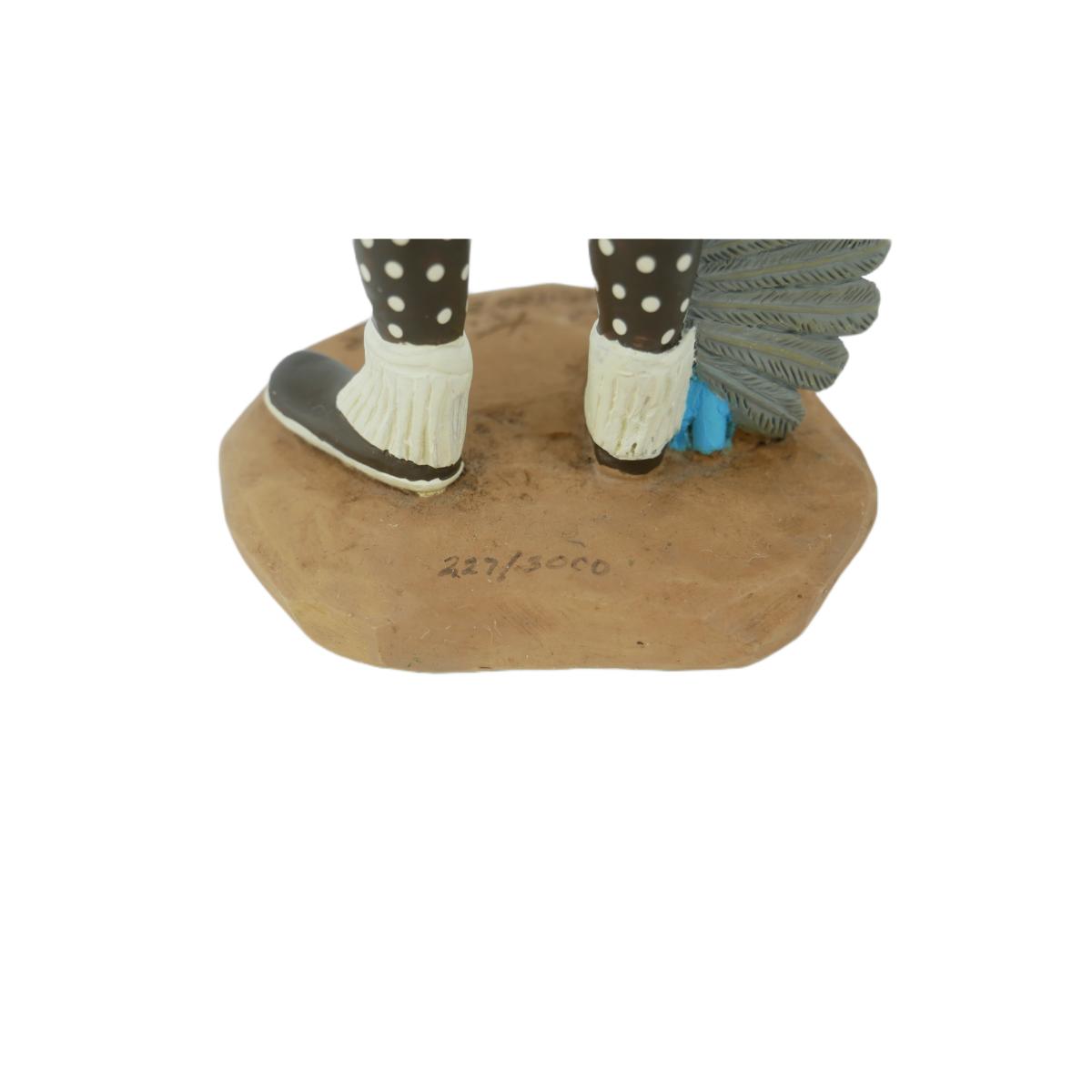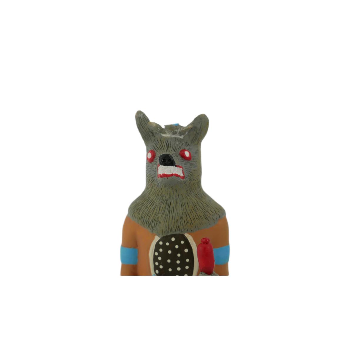 Limited edition Navajo Native American style clay pottery wolf mask kachina statuette. Signed Leone Kulme and numbered 227/3000. Excellent condition, no issues found. Does not come with tags or original box. Measures L 3" x H 7". Weighs 7.7 oz. (C64)