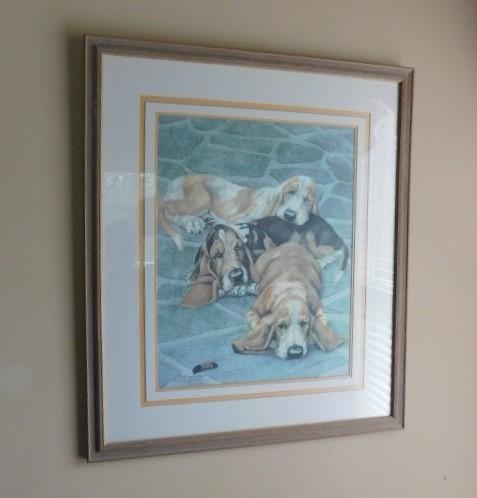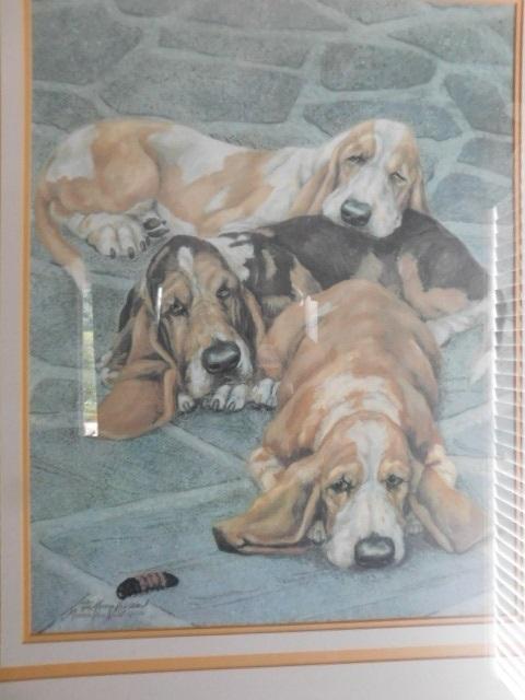 Limited Edition Print of Hounds Framed Art by Marcia Van Woert 142/300 Artist Signed 31"x26"