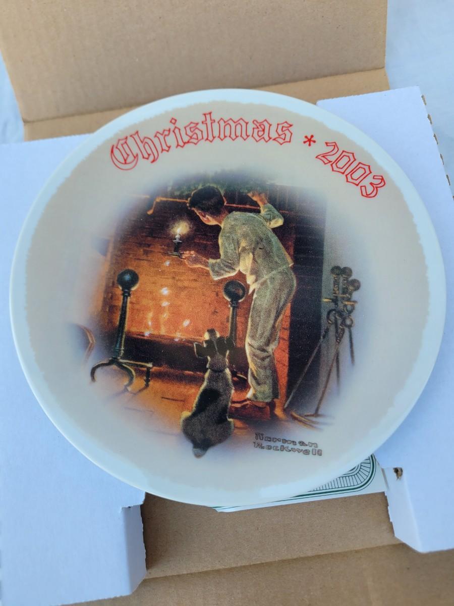 This is a Limited Edition Norman Rockwell Christmas Plate from 2003, featuring the artwork titled "Waiting for Santa".