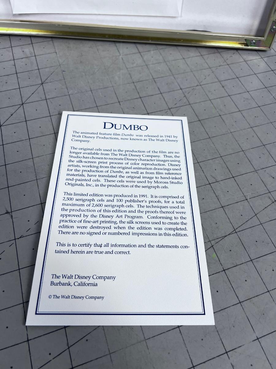Limited Edition Walt Disney DUMBO Serigraph Cel