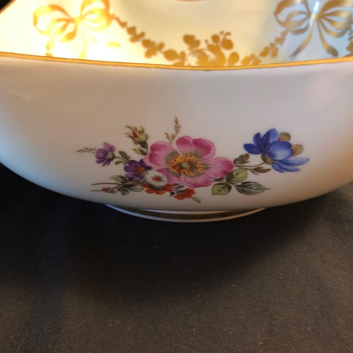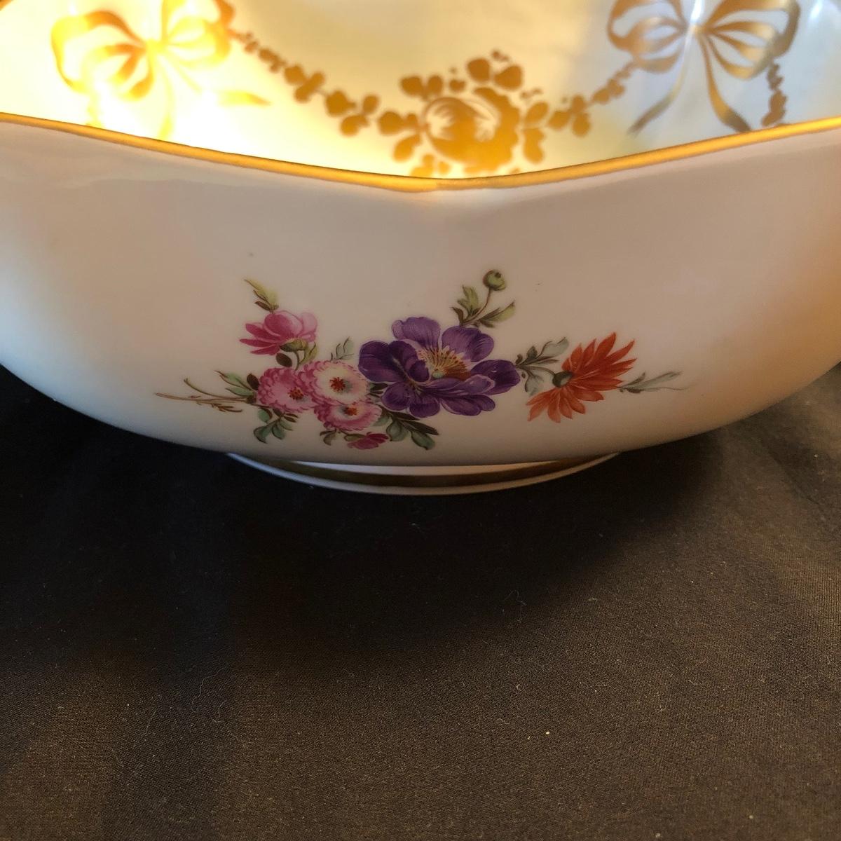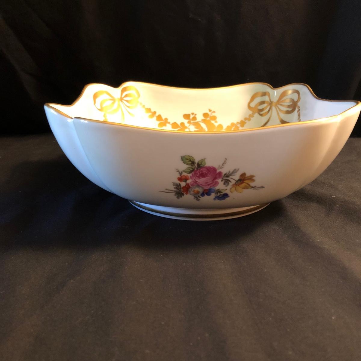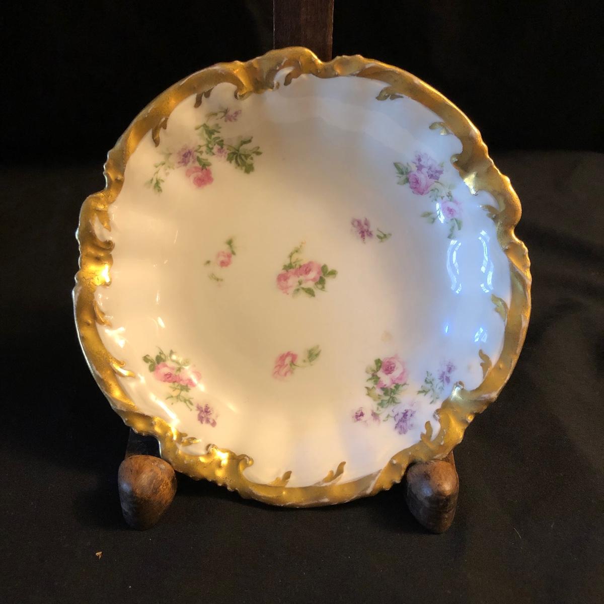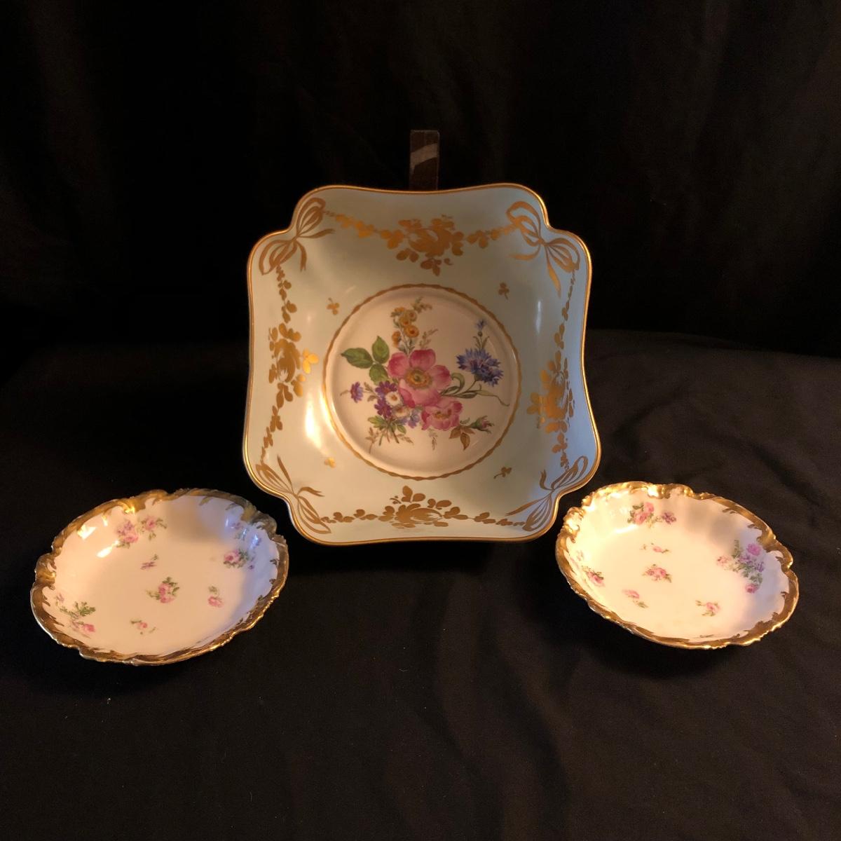 Lot includes a large Limoges floral design bowl and two Limoges floral design dishes.