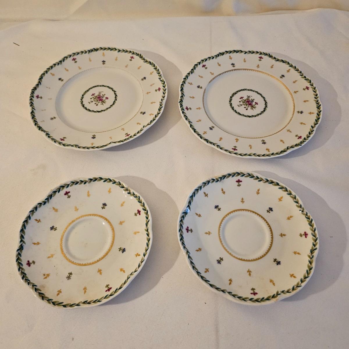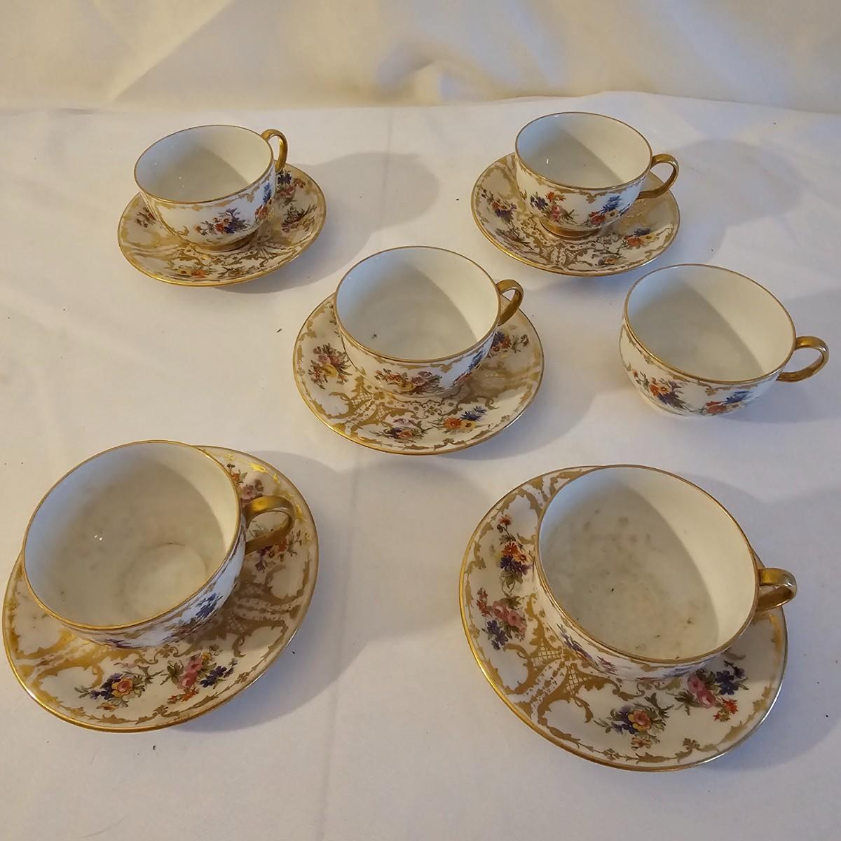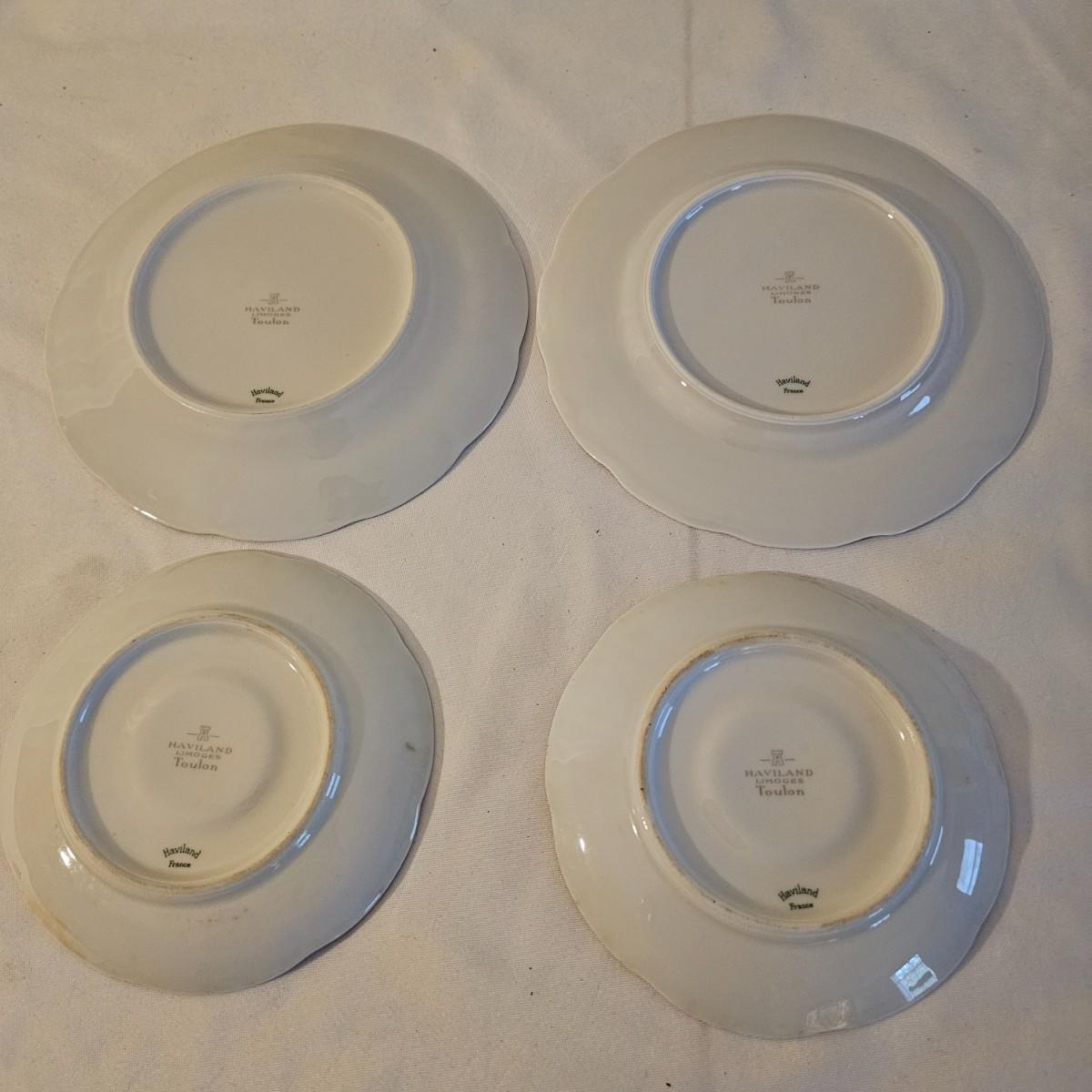 A mixture of different sizes, patterns and more of Limoges Haviland china from France. No complete sets but plates, cups/saucers and others. Plates are 10", 9.5", 7.5" and 6"D. 32 pieces total. Some small chips, see photos for details. Shipping available.