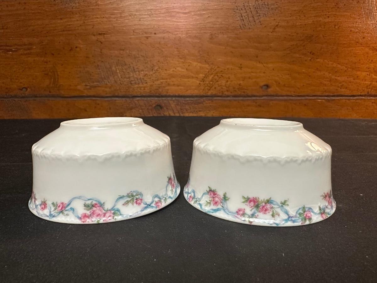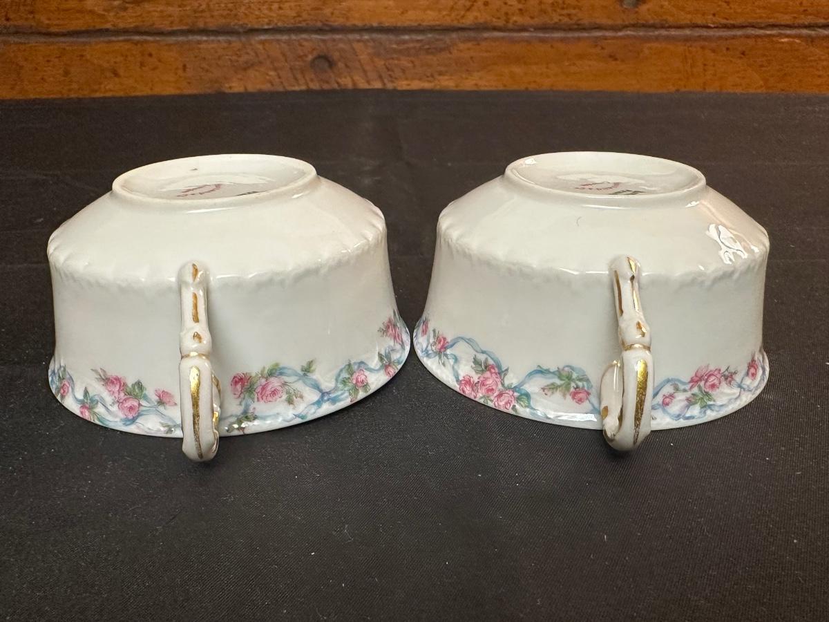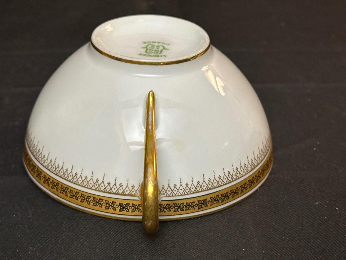 2 Tea cups & 2 plates match. The 3rd tea cup is Limoges as well. Please see photos for details.