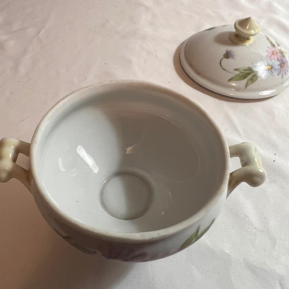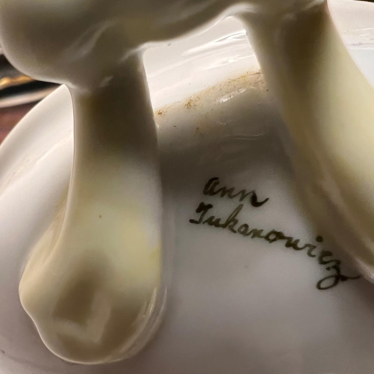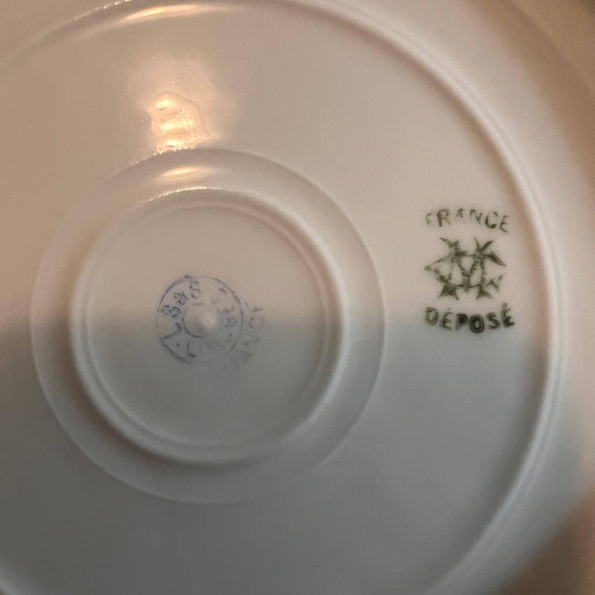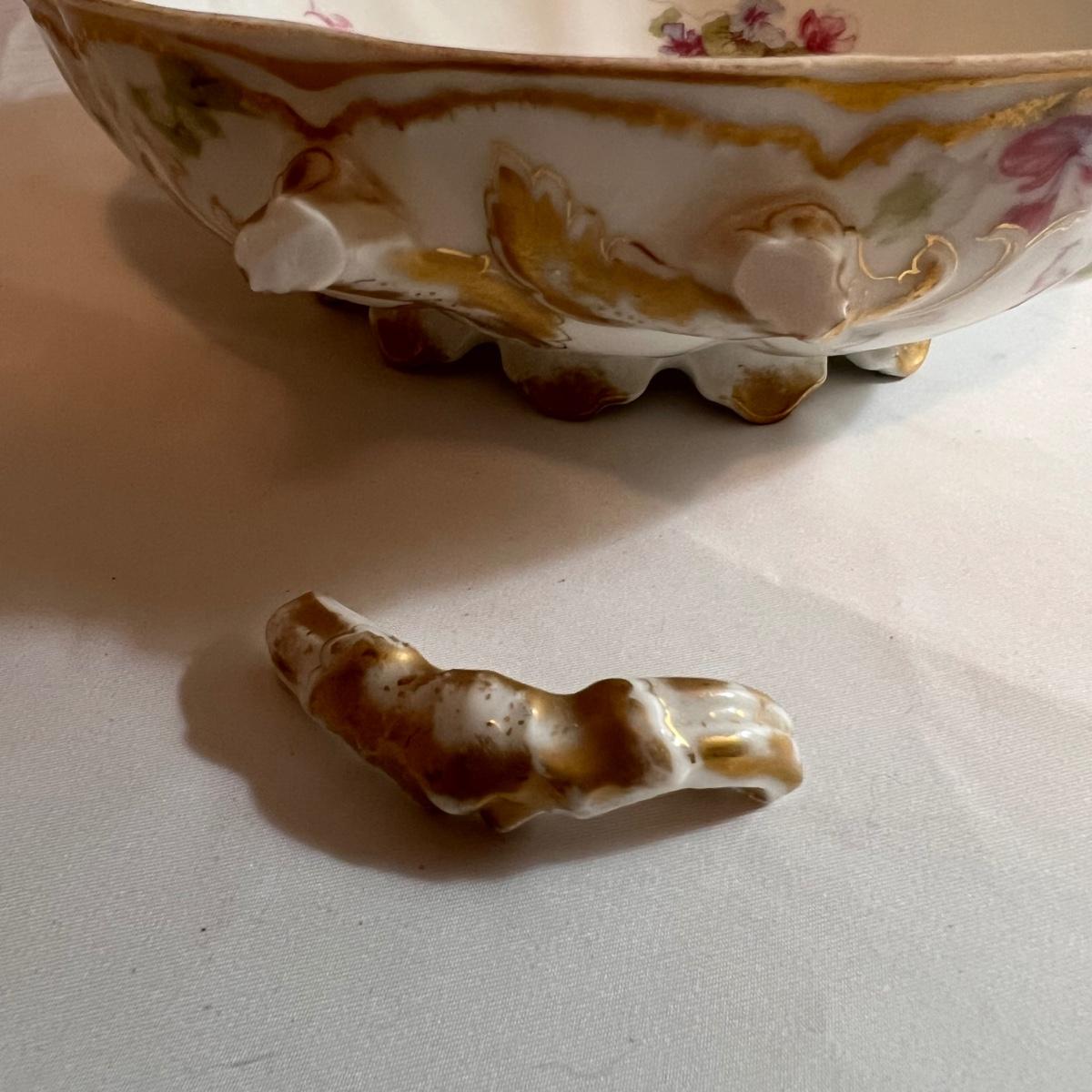 Lot includes six Limoges plates (two pink and two blue both marked Limoges and two white that are marked Depose), an RS white floral plate, Haviland lidded tureen and a small lidded potted with a signature that appears to read Ann Tukanouiez. A few pieces have damage - the tureen has a broken handle which could be glued back on, one pink plate has cracks, one white plate has a chip in the rim, see photos.