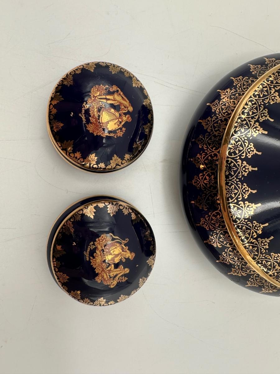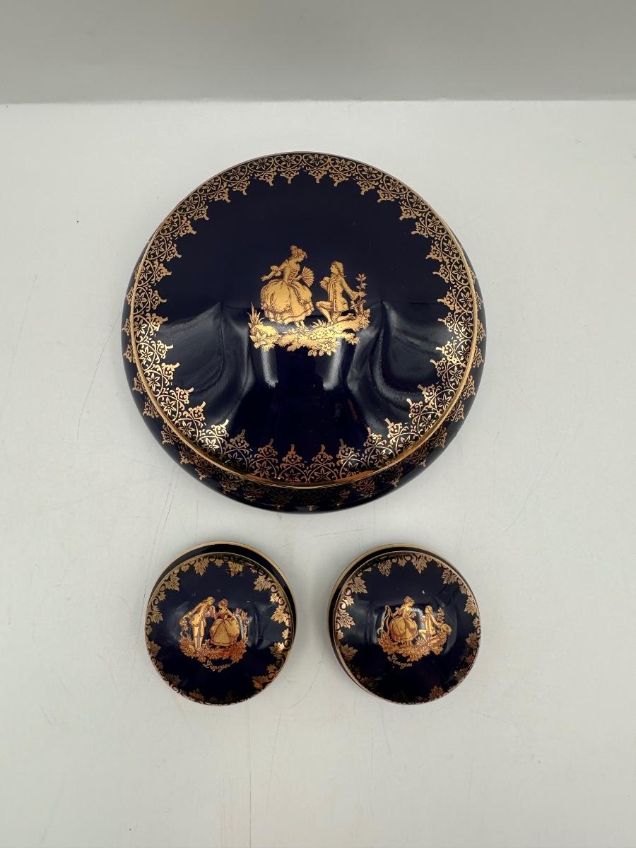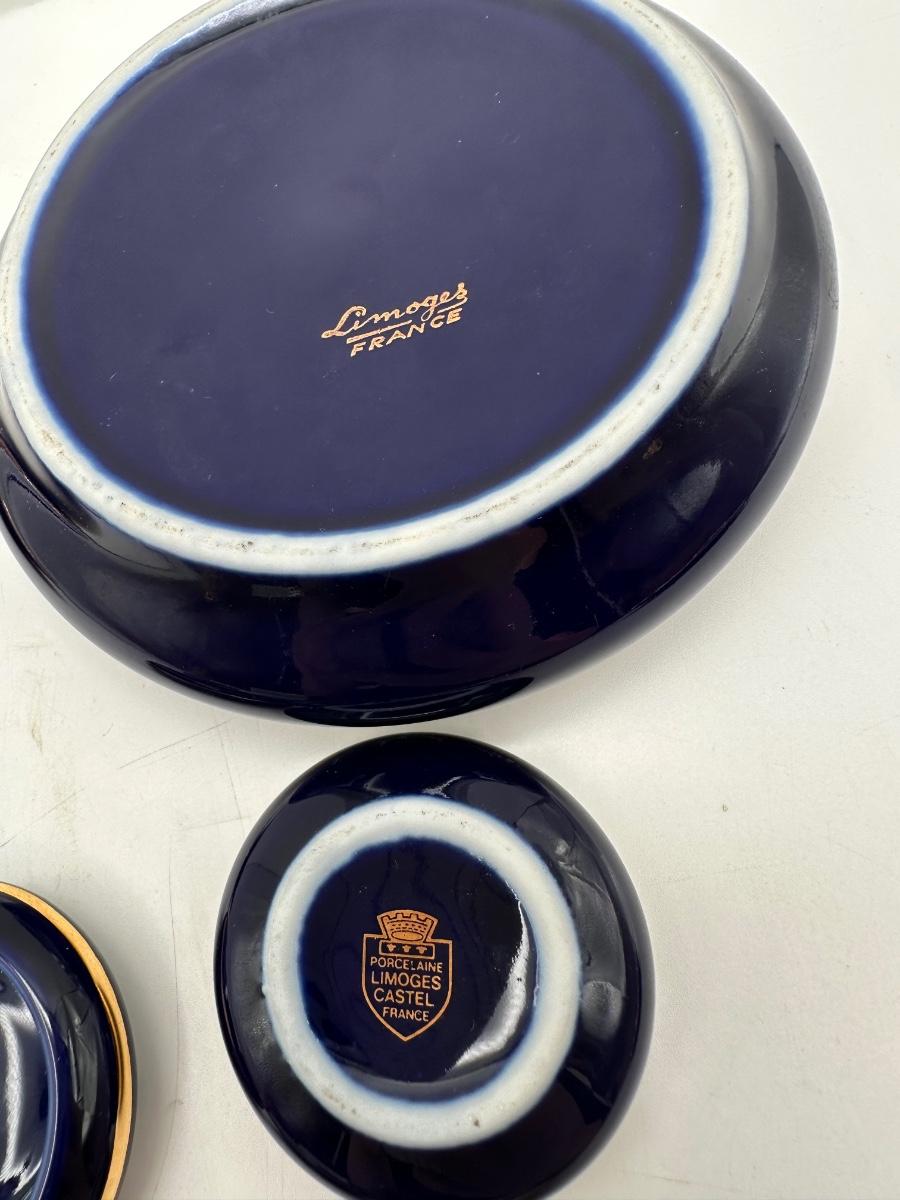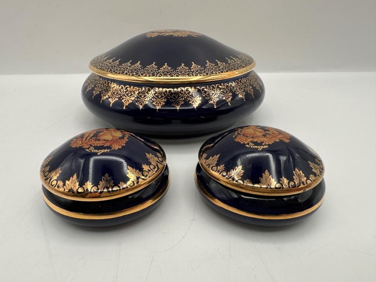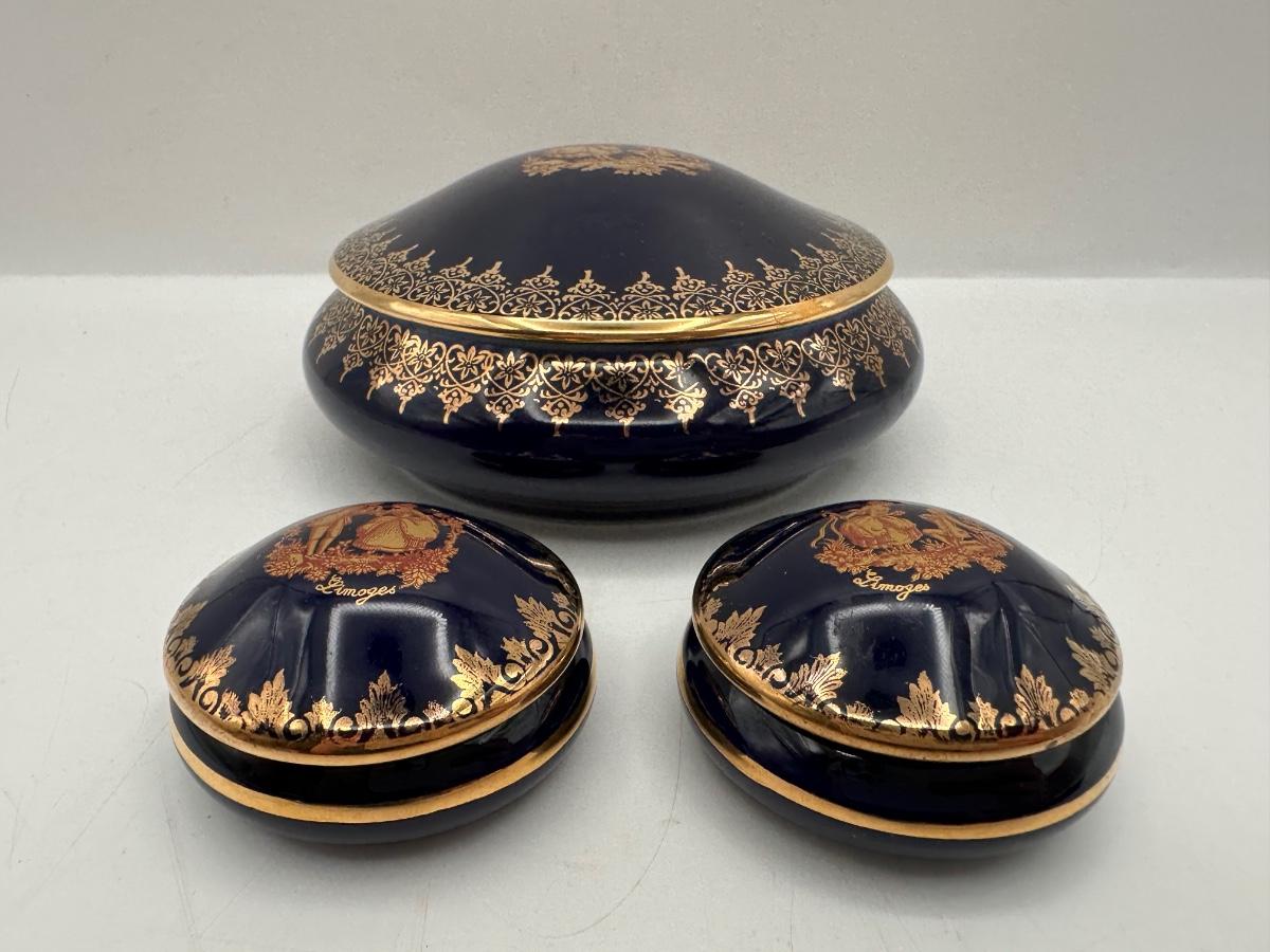 Limoges France Cobalt and Gold Porcelain Trinket Boxes