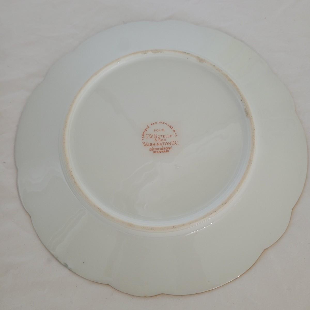 This collection of beautiful decorative plates includes a Limoges France gold edge painted small plate, two gold floral painted plates, a J.W. Boteler & Bro bird plate, Lenox large plate and more. Large Lenox plate measures approximately 12.5”D. Shipping available.