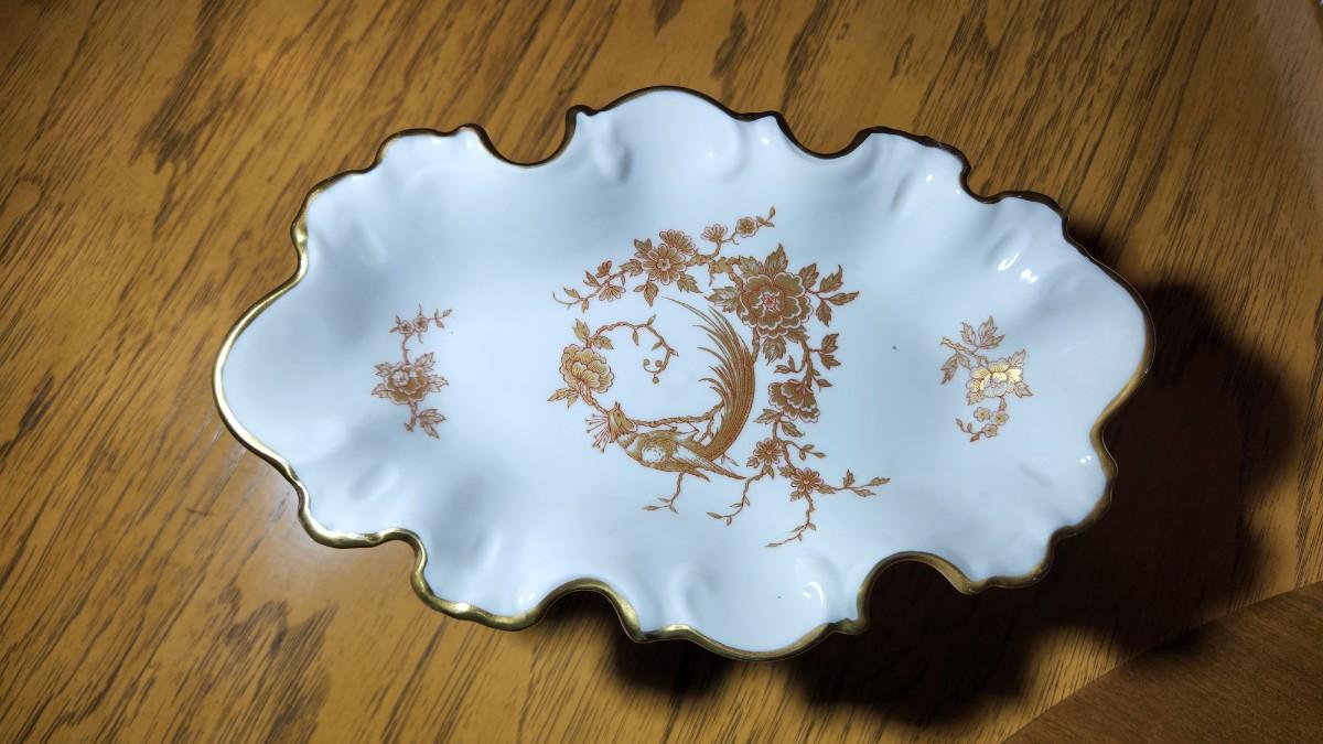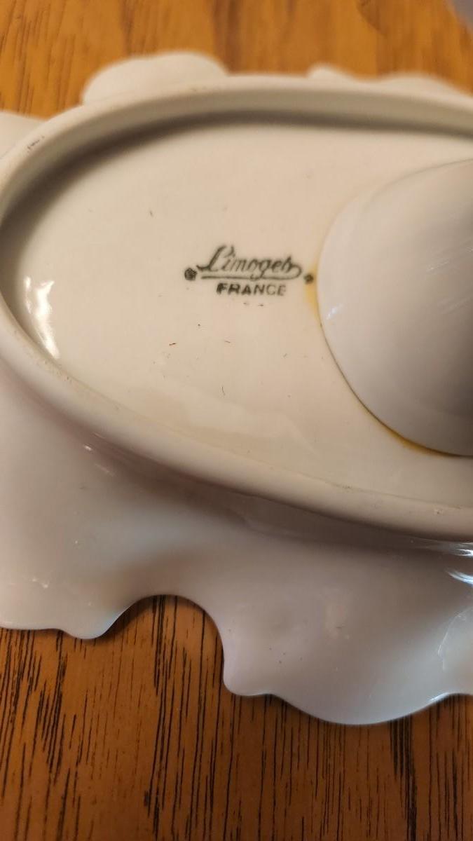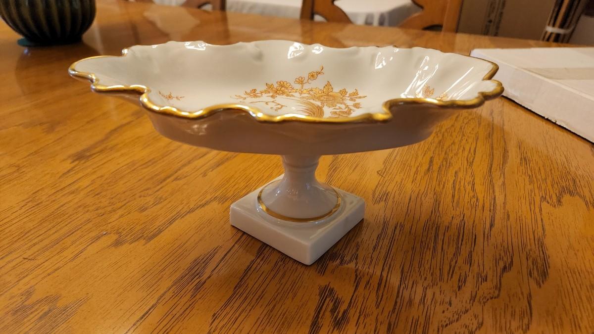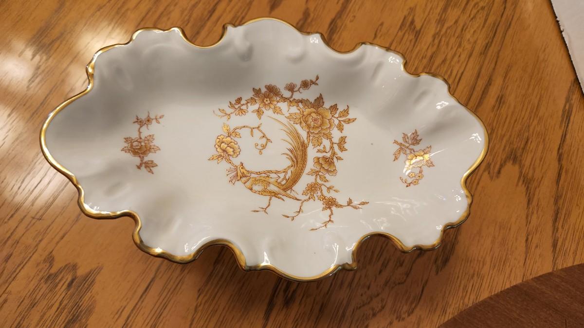 Limoges France Porcelain Footed Candy Dish Floral Peacock