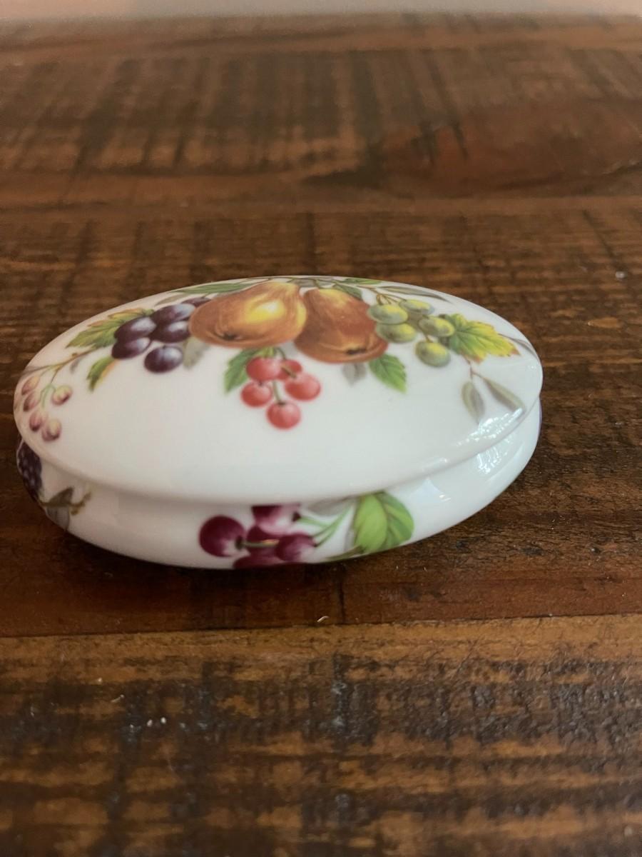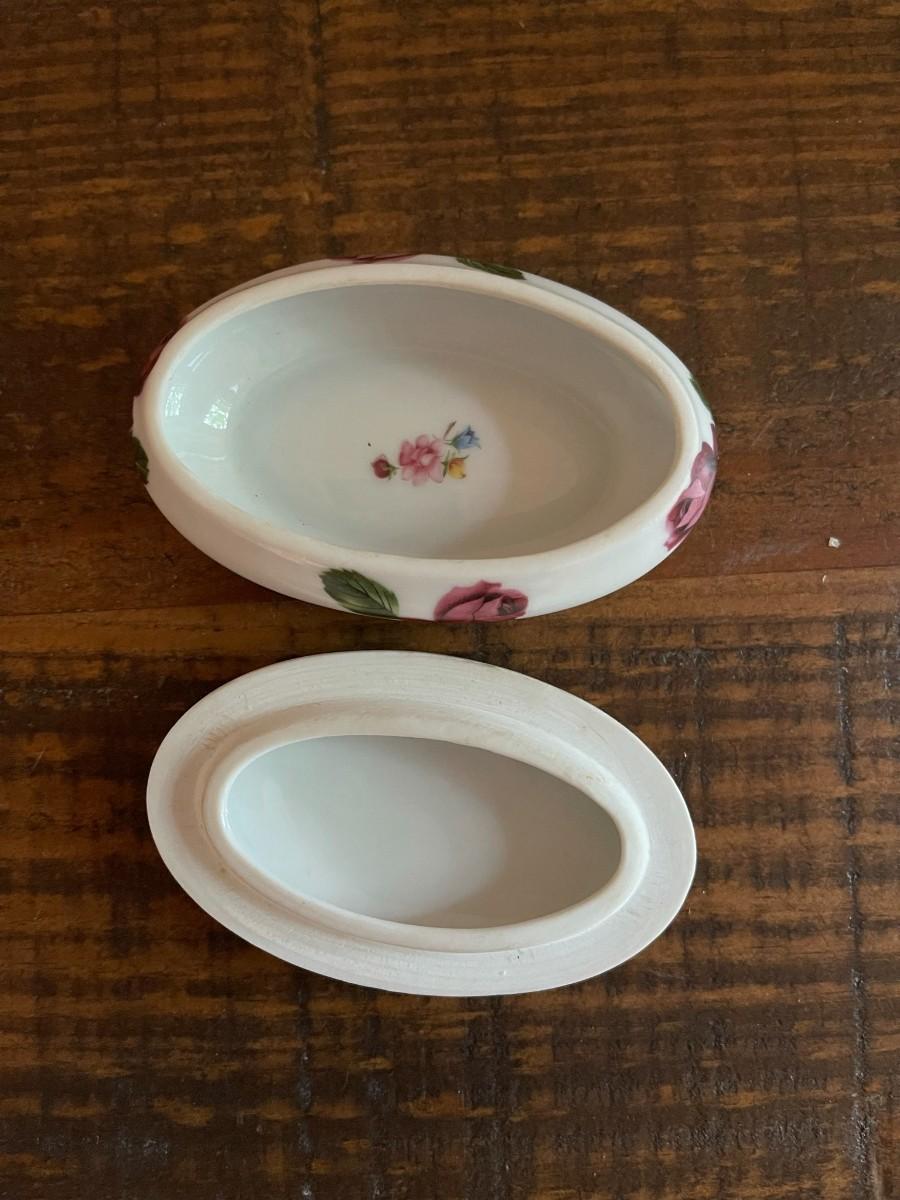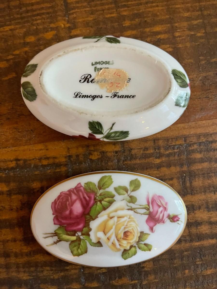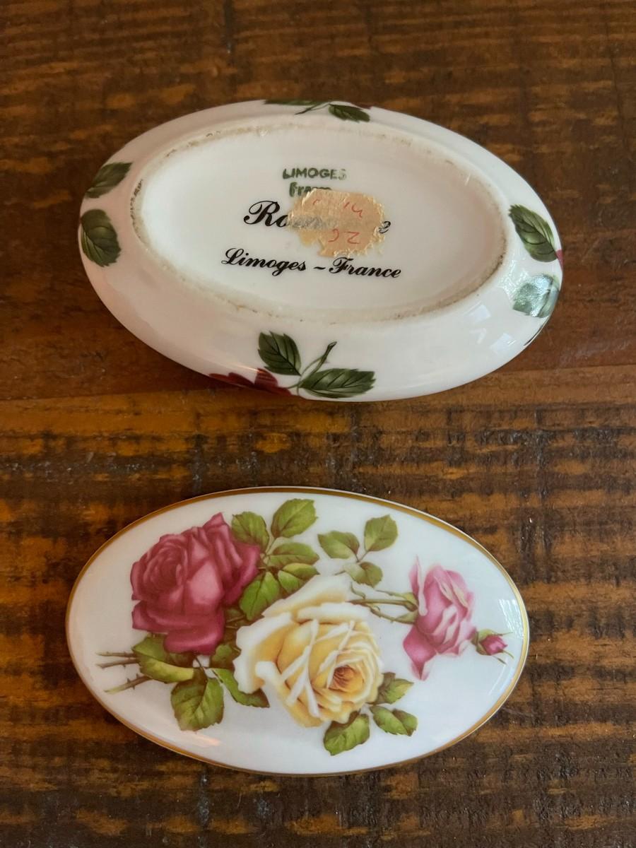 LOT 49 - Limoges France, Romance, Porcelain Oval Trinket Boxes, 2, Roses & Fruit