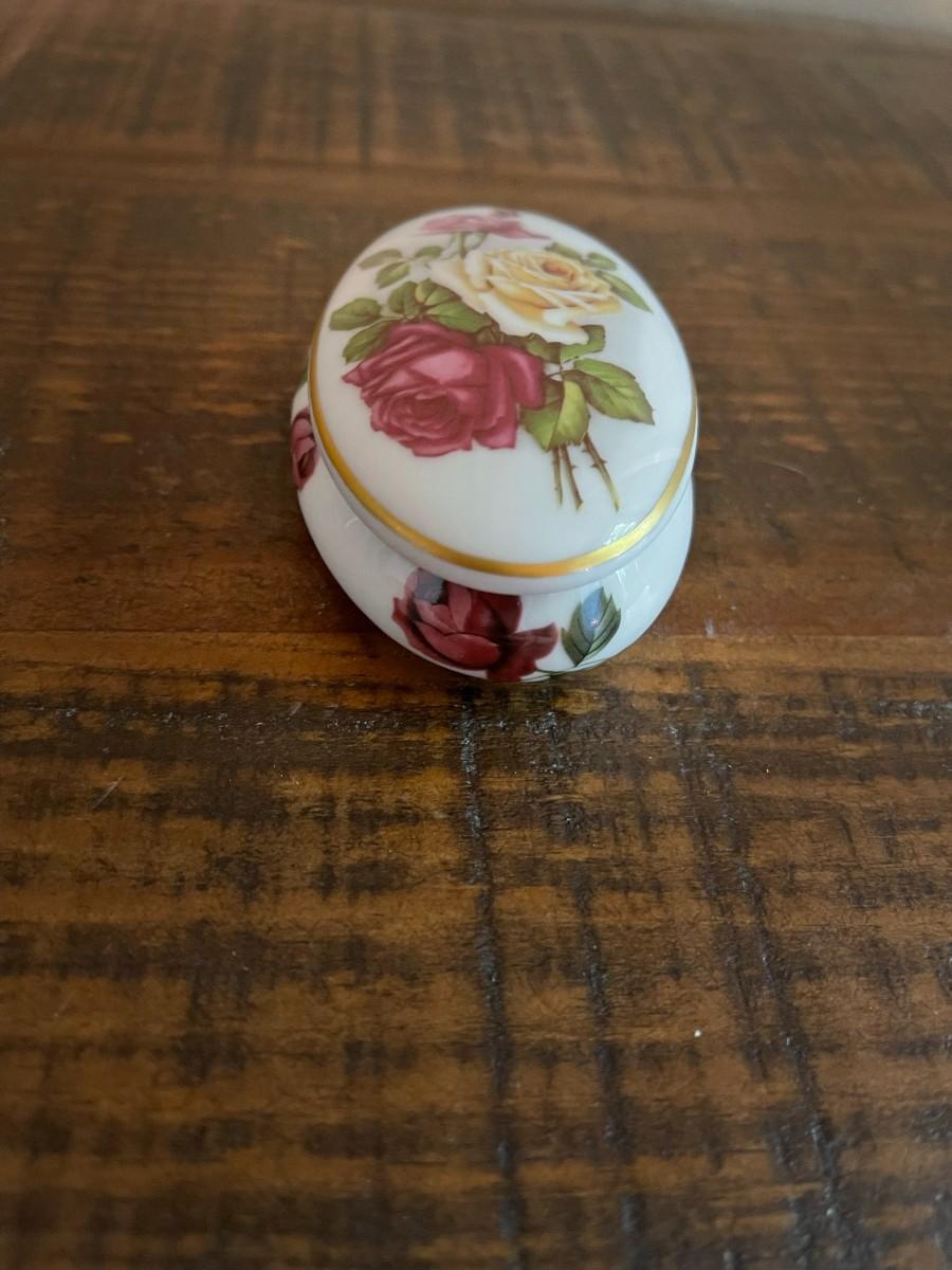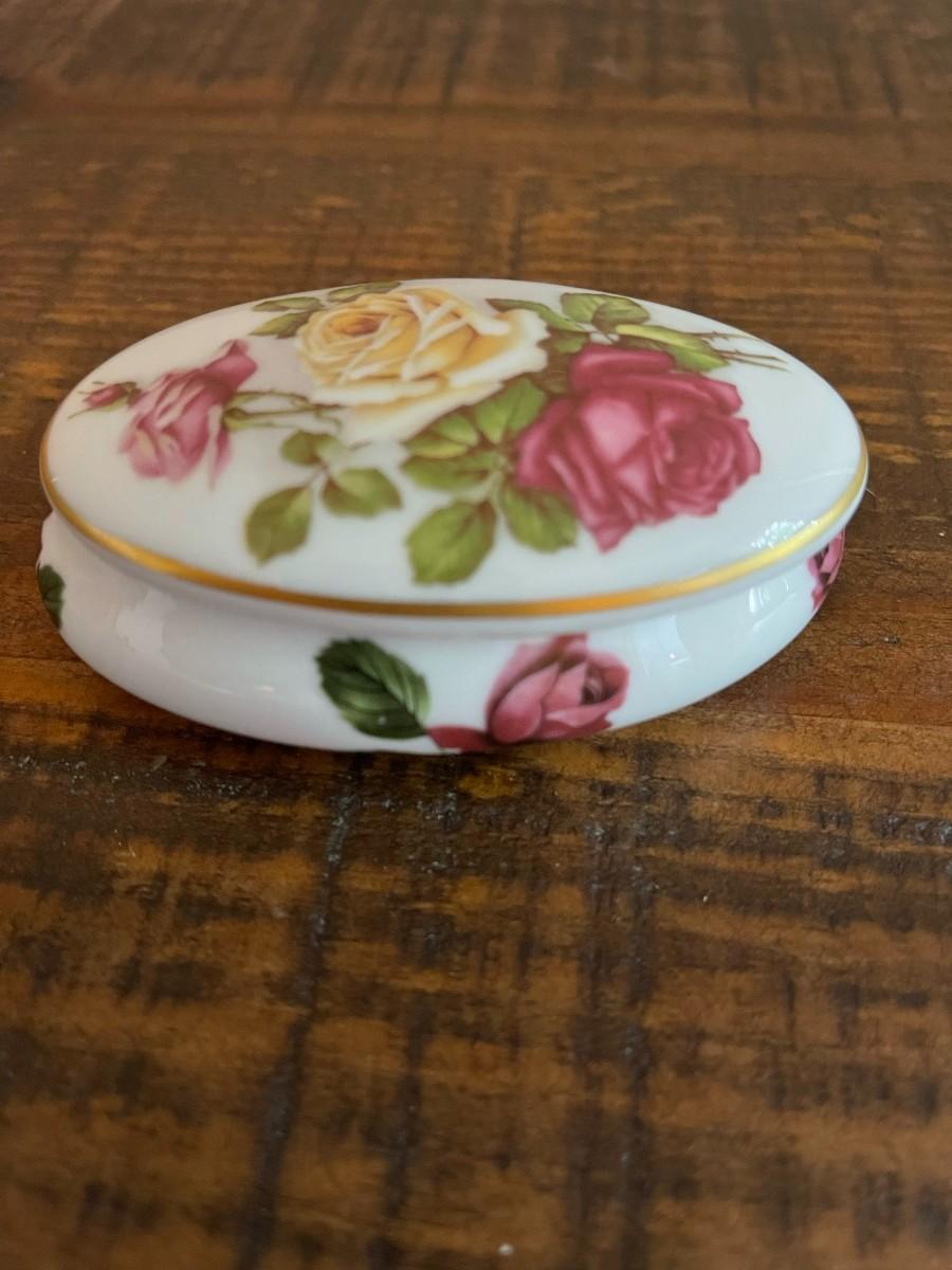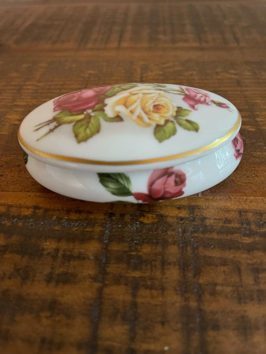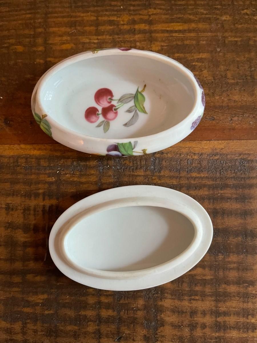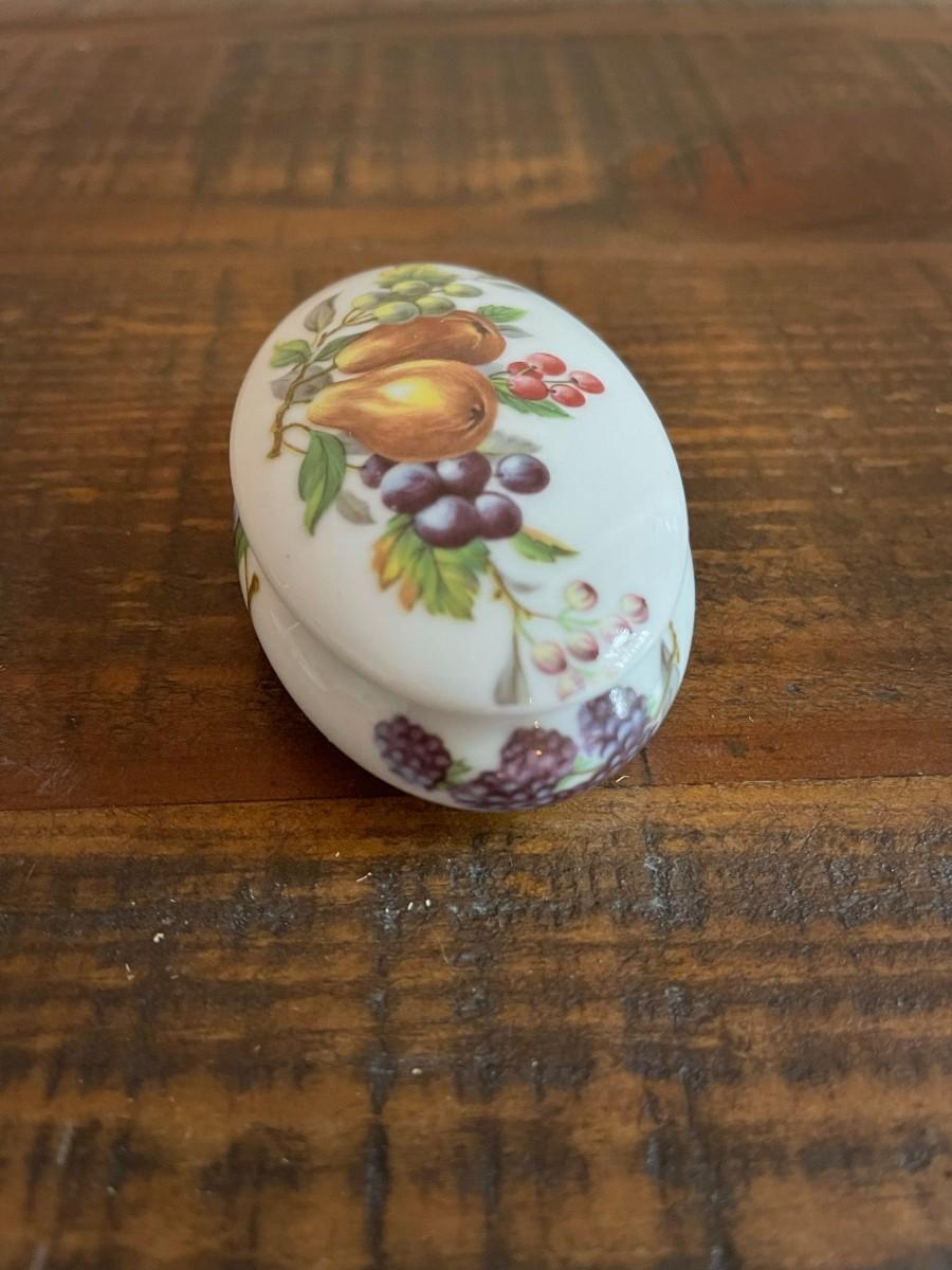 LOT 49 - Limoges France, Romance, Porcelain Oval Trinket Boxes, 2, Roses & Fruit