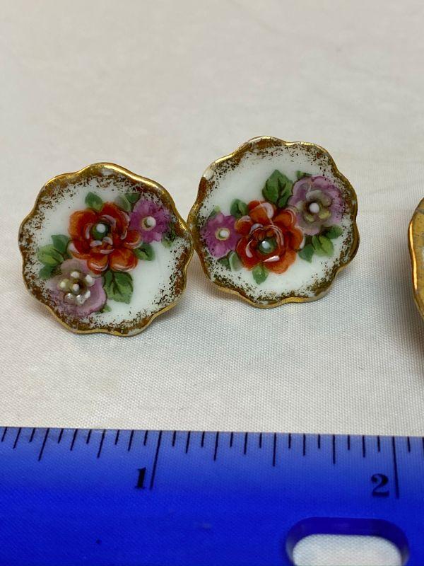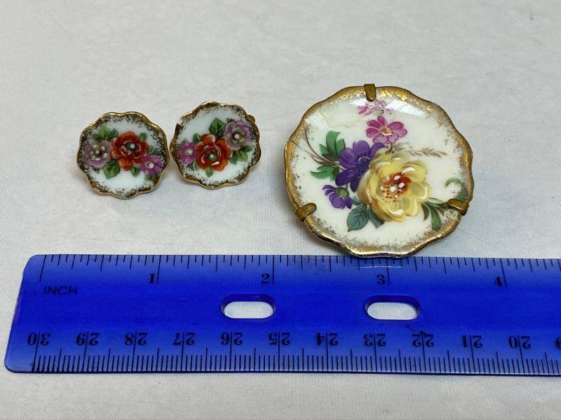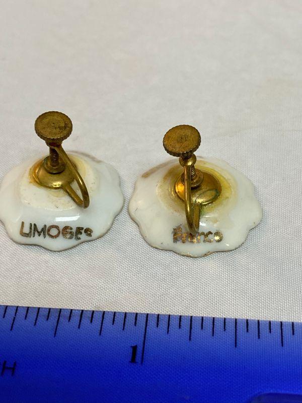Limoges France Screw Back Earrings and Pin