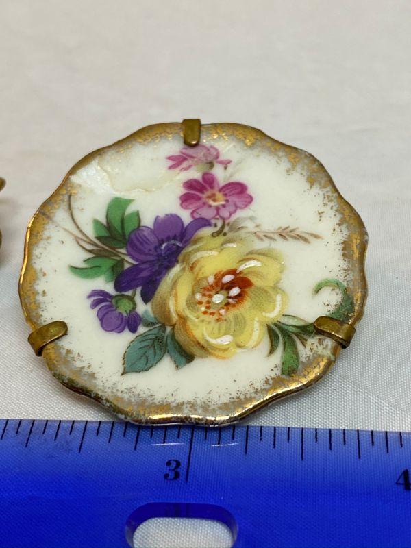 Limoges France Earrings & Pin. Hand painted flowers. Stamped backs. Earrings are screw back. Good Condition.