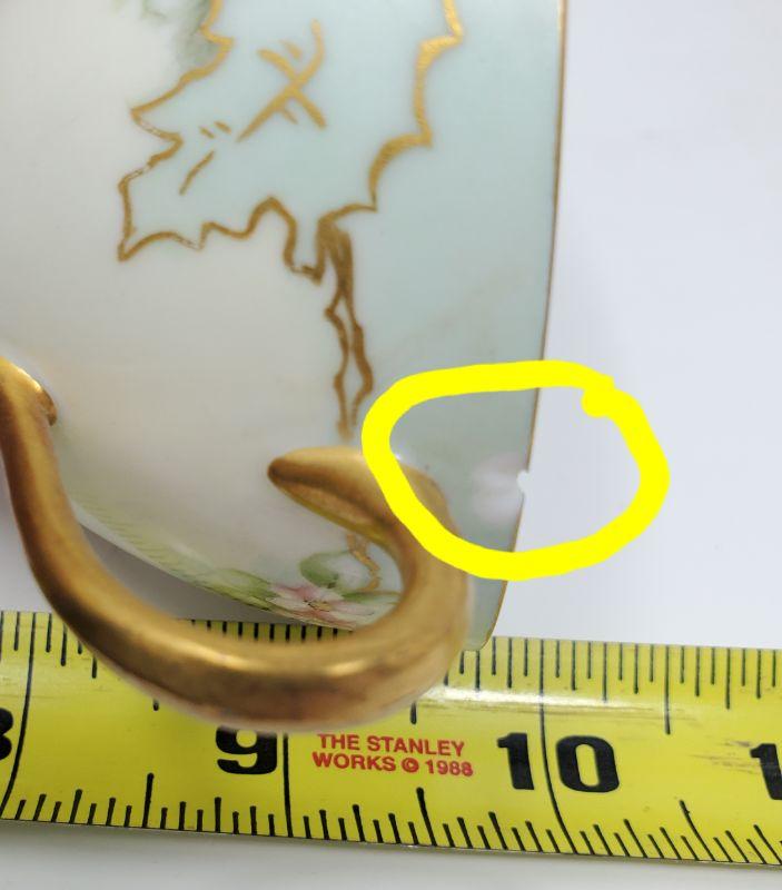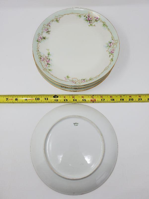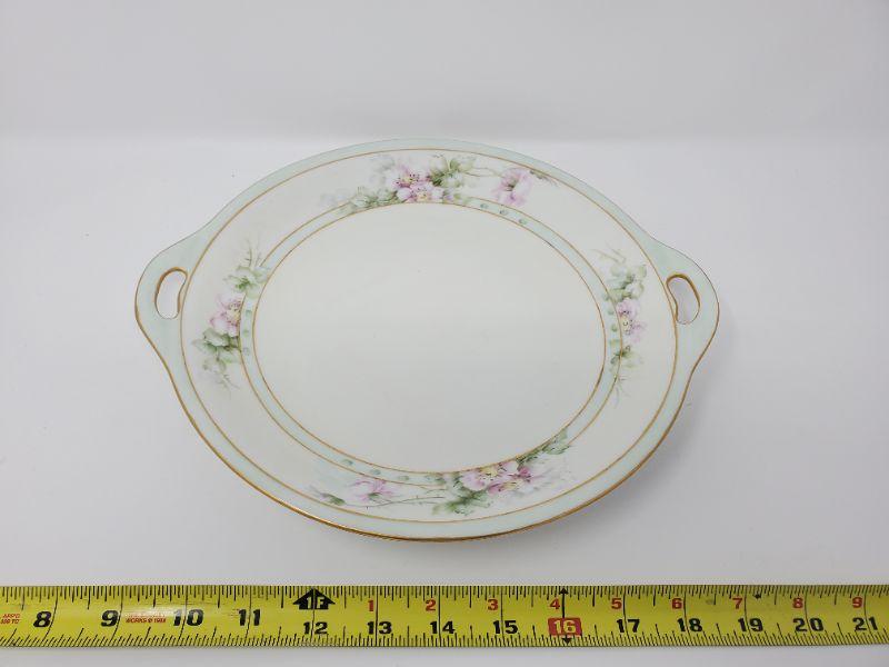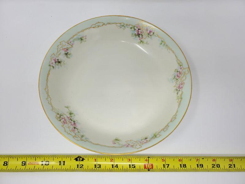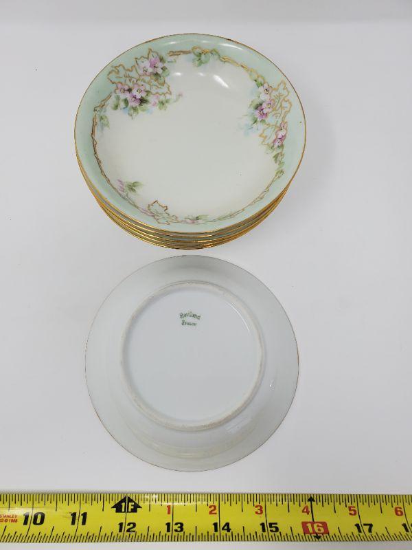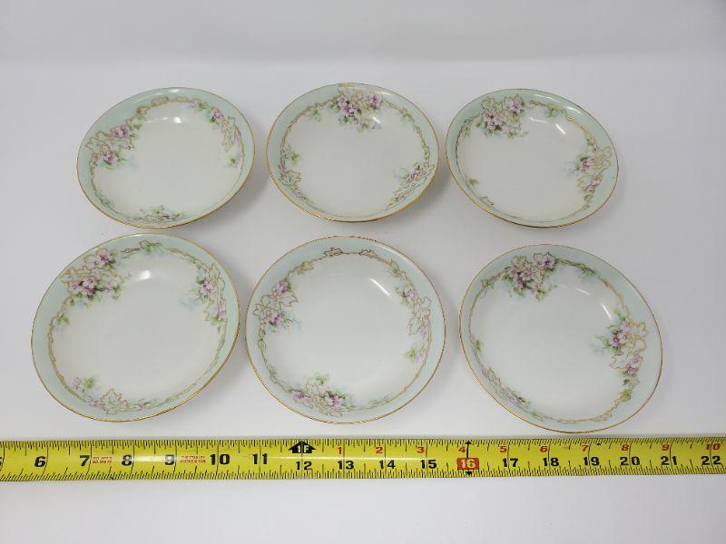6 dinner plates, 6 smaller plates, 6 small bowls 6 tea cup saucers (*one has a chip), 5 tea cups (one has a chip), 1 serving bowl and 1 serving plate. While there are a few flaws, this set is gorgeous! See photos...