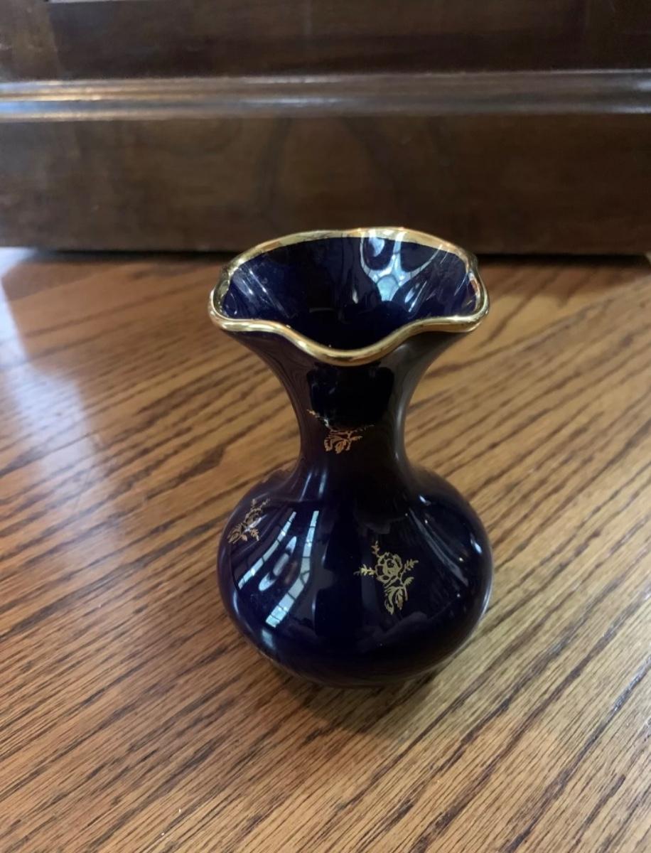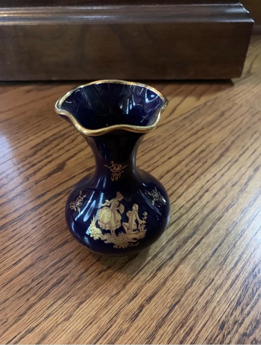 Limoges Imperia Bud Vase Cobalt blue, vintage. France, 4 1/2” Tall