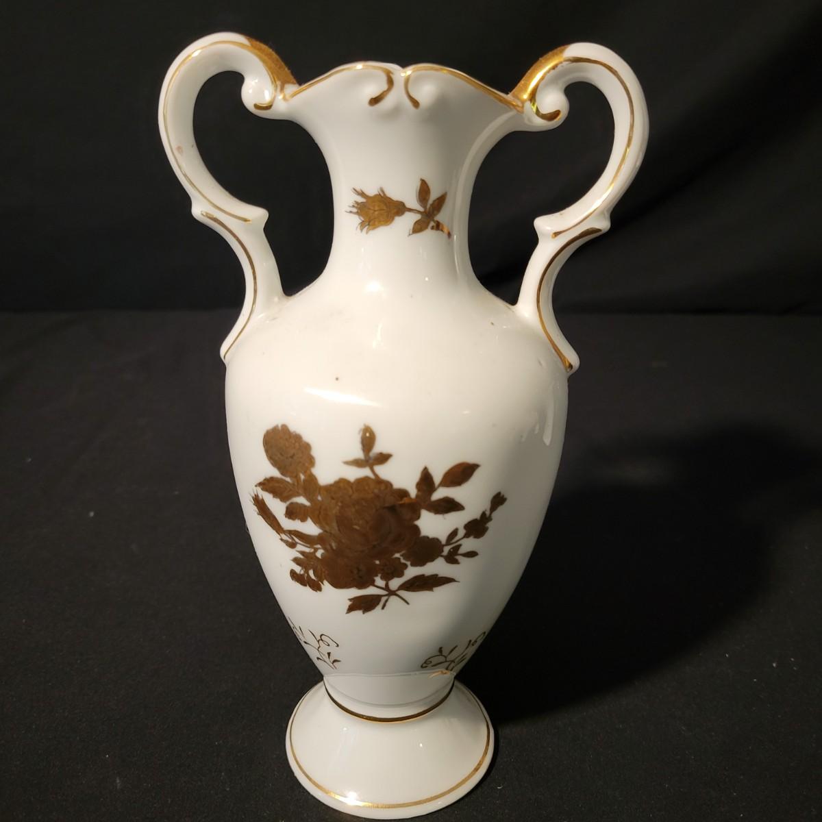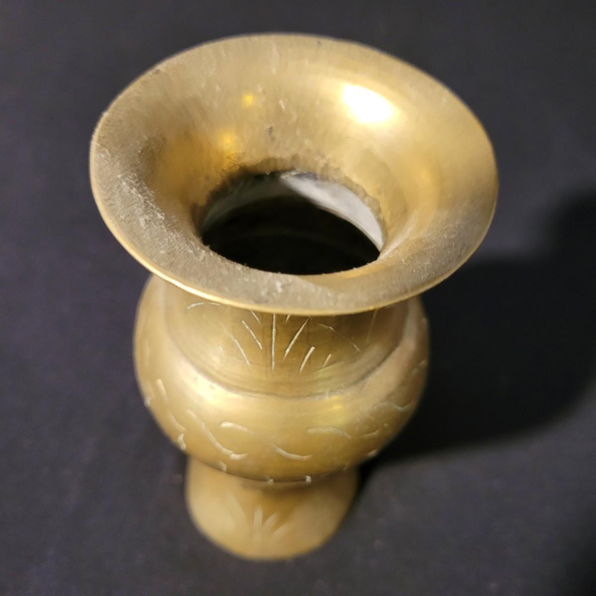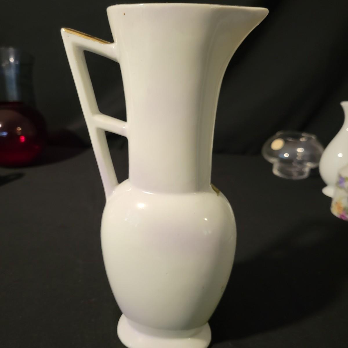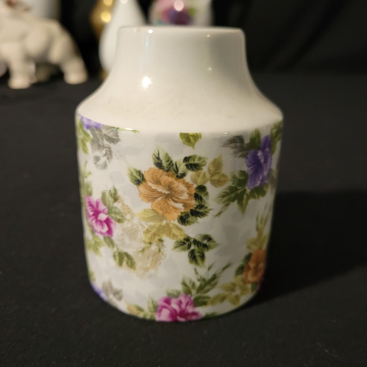 A large assortment of china, glass, ceramic and brass vases in good condition. The red globe vase has two minor chips and the elephant has a chip on its foot. This lot includes a small white bud vase by Limoges and a full leaded crystal piece by Lenox. See attached pictures for full inventory. Largest blue and gold vase measures approximately 4" x 10.5". Local pickup only