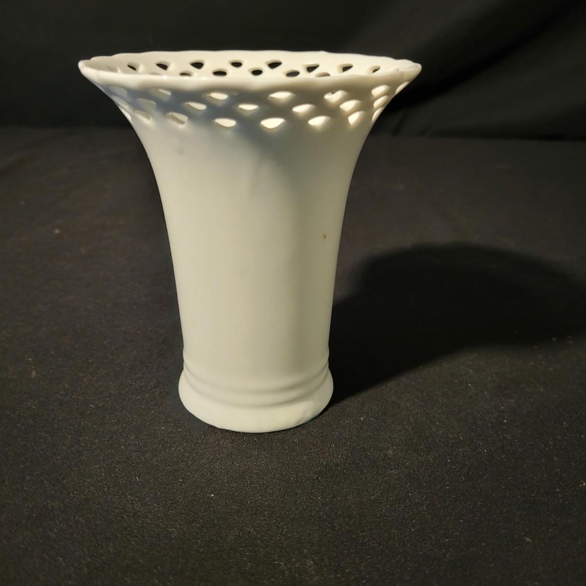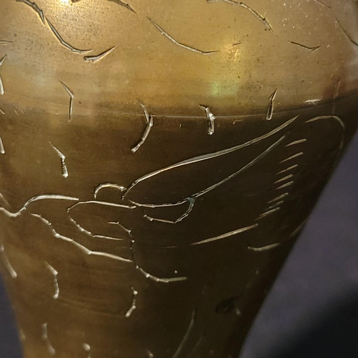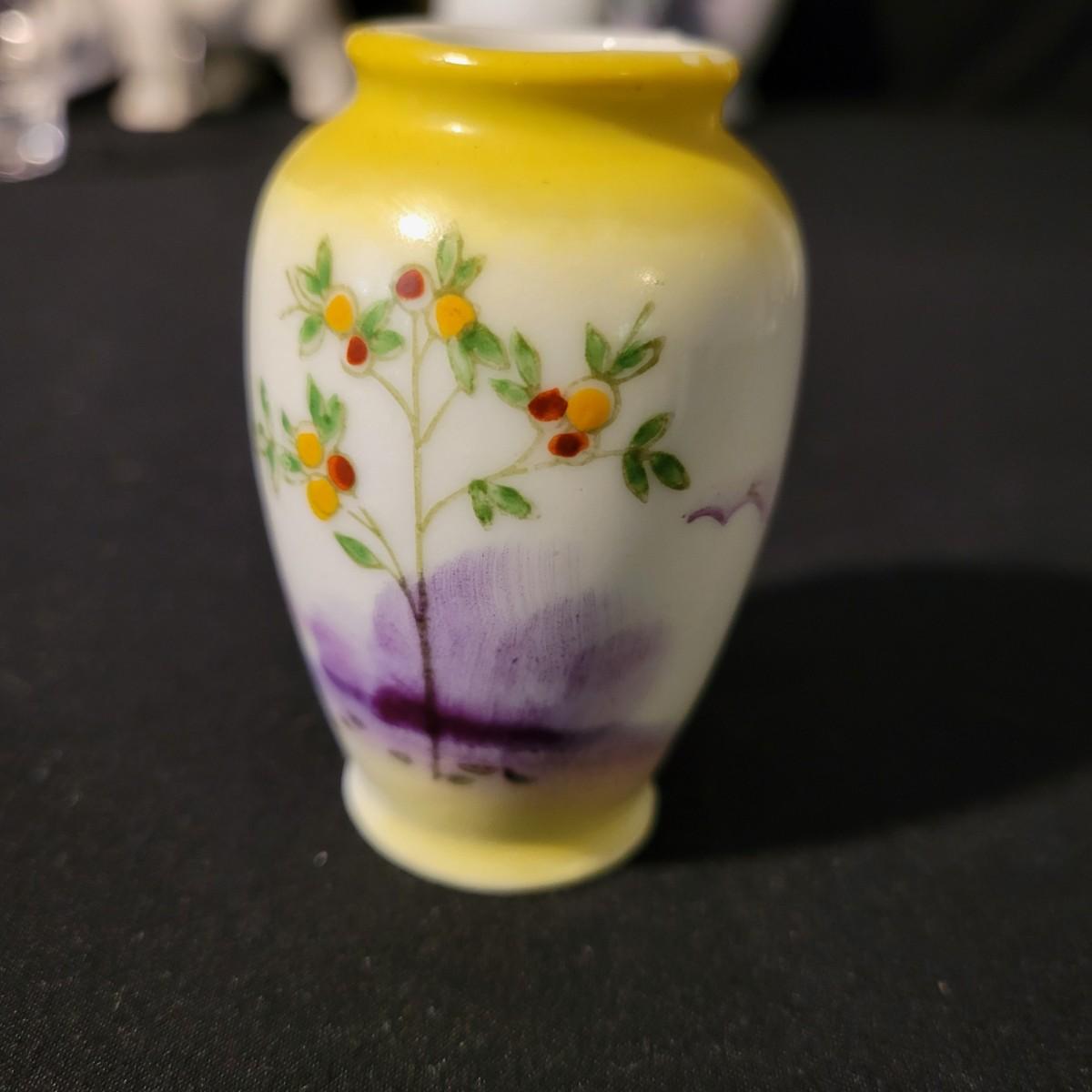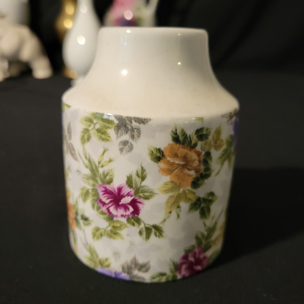A large assortment of china, glass, ceramic and brass vases in good condition. The red globe vase has two minor chips and the elephant has a chip on its foot. This lot includes a small white bud vase by Limoges and a full leaded crystal piece by Lenox. See attached pictures for full inventory. Largest blue and gold vase measures approximately 4" x 10.5". Local pickup only