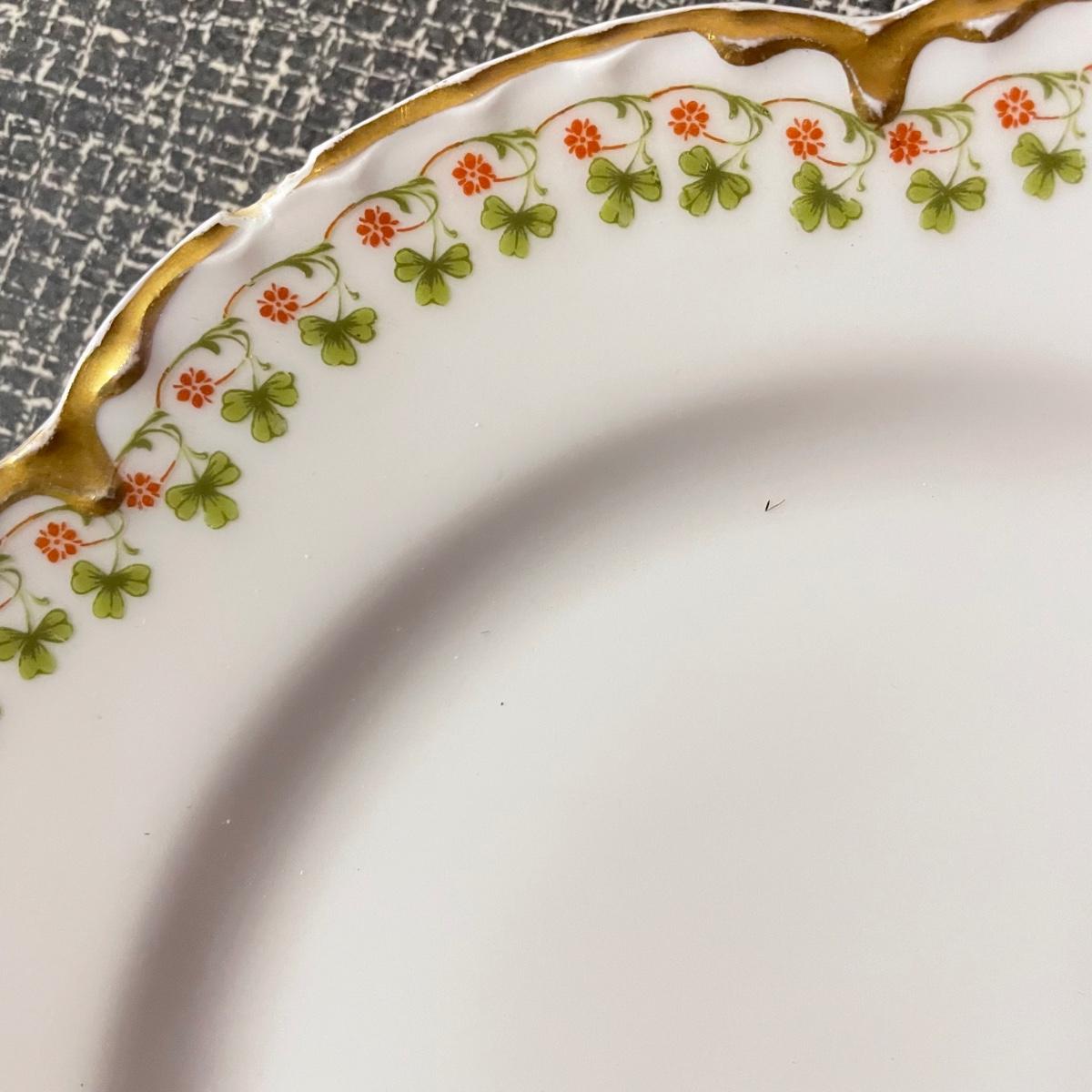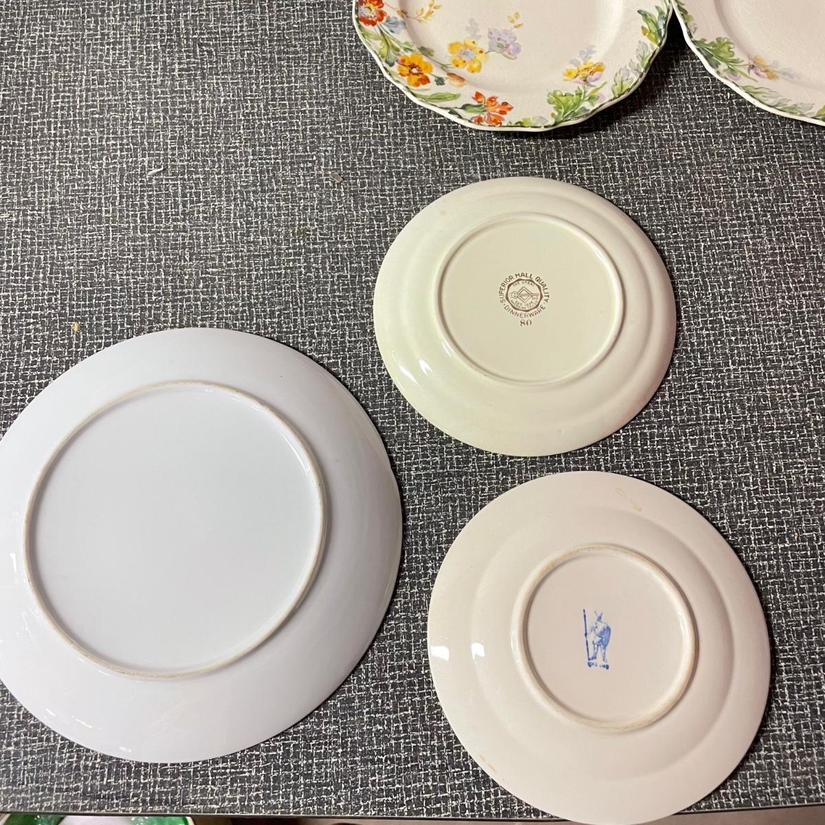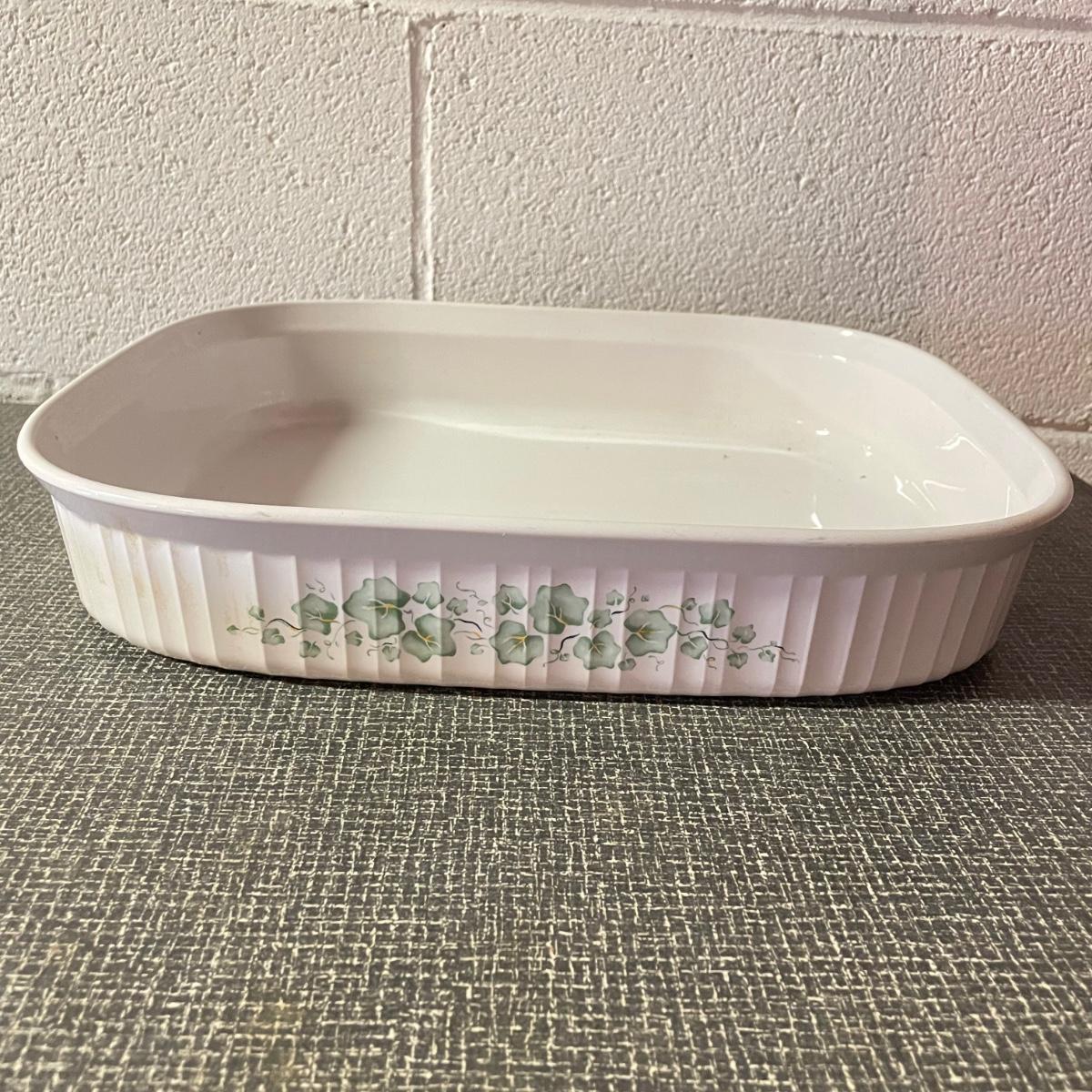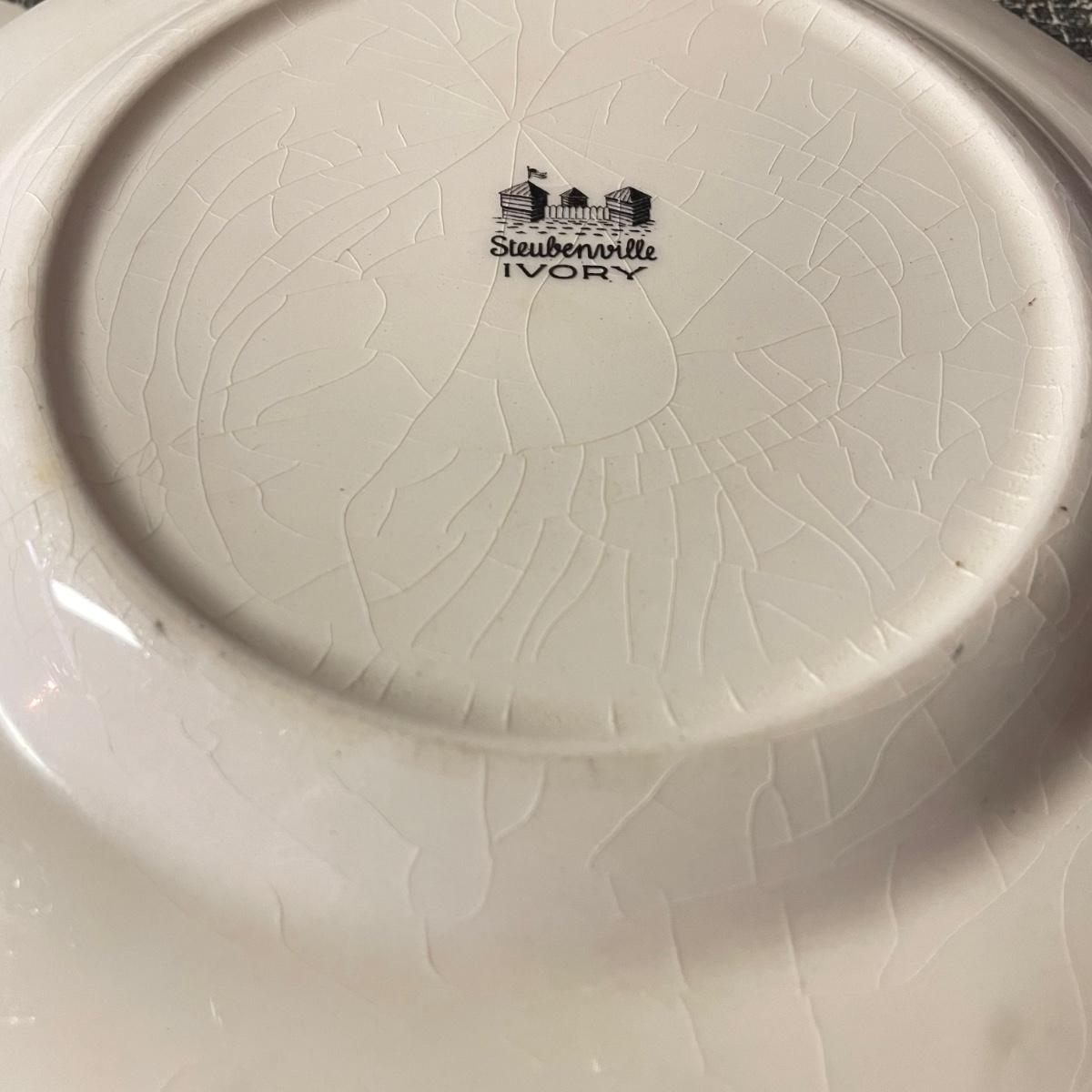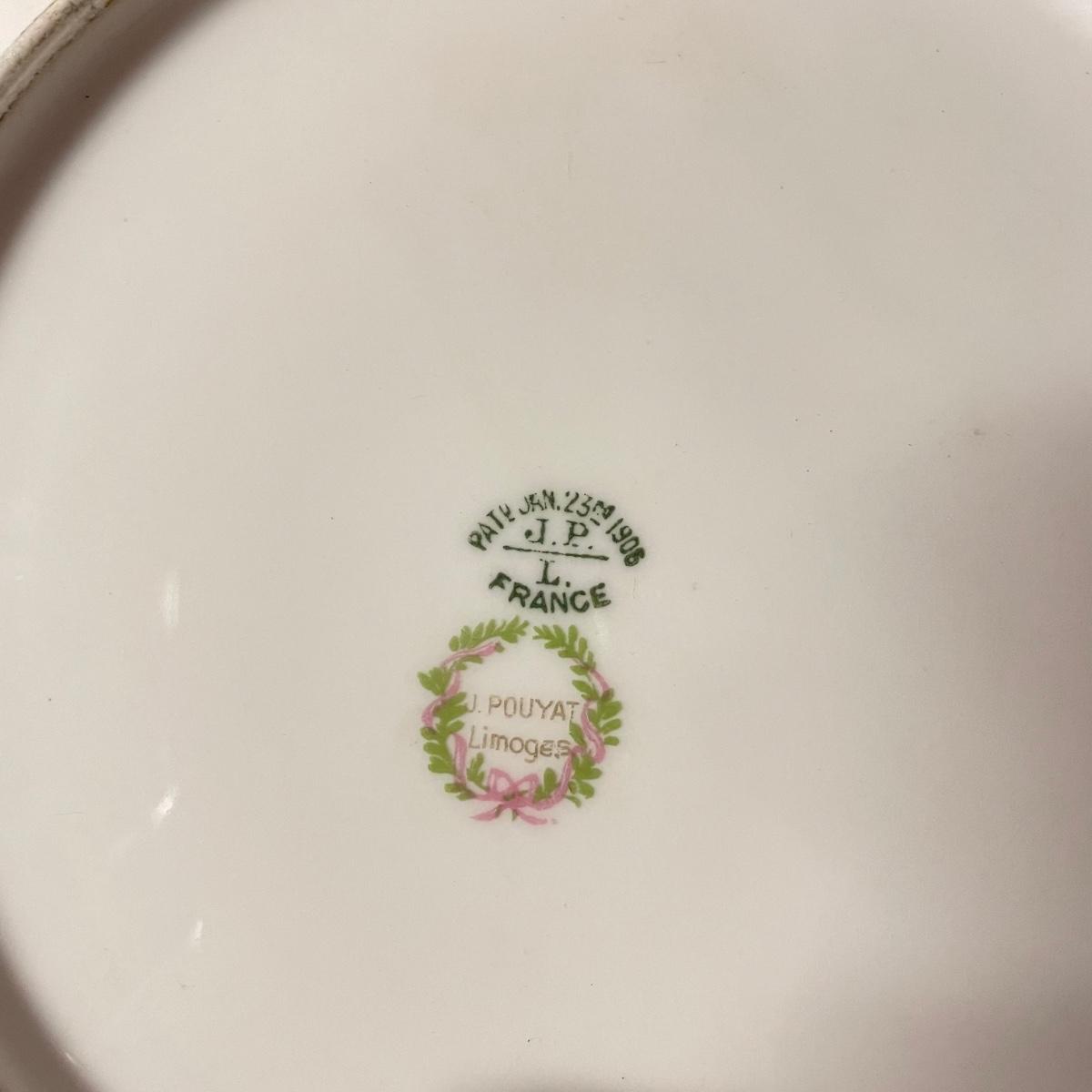 Eleven plates of fine china along with three vintage stoneware dishes. Many dishes are marked Limoges, and some chips were noted in photos. See images. The Corning 4.5 liter casserole dish measures 14” x 12”. Shipping available.