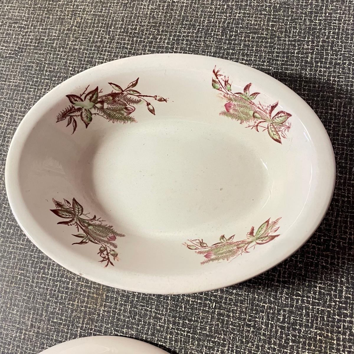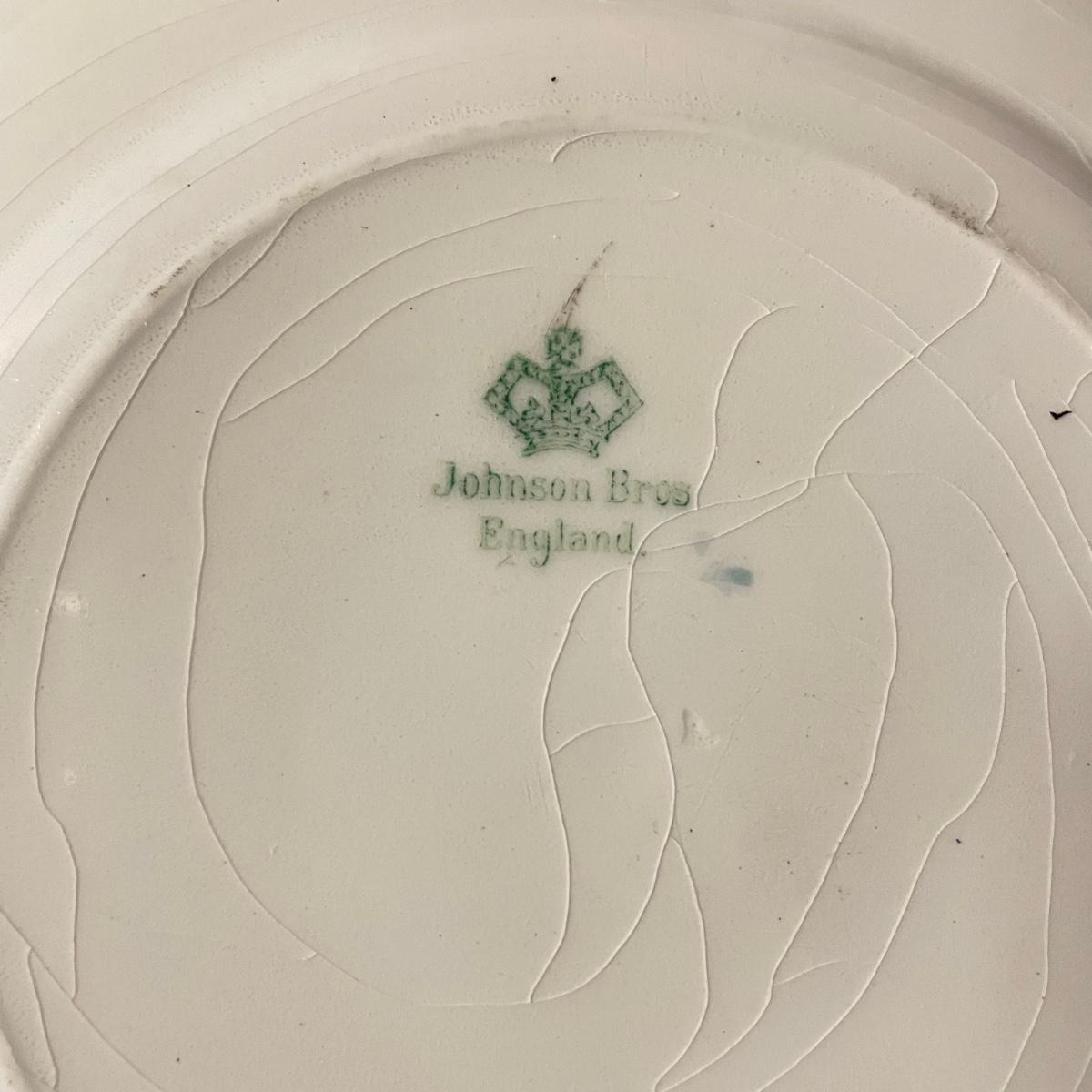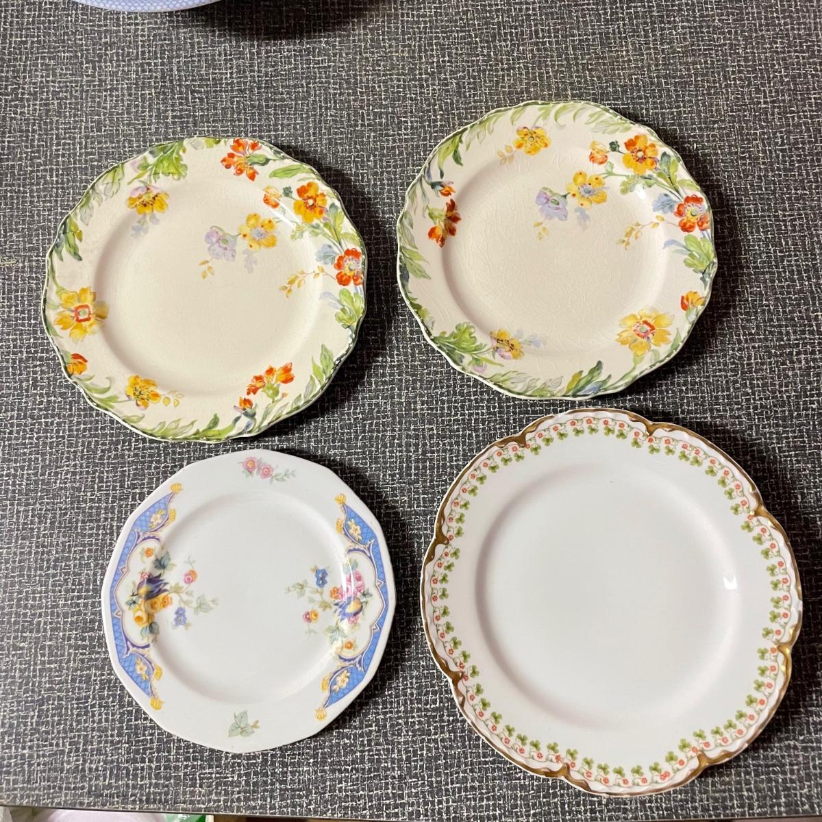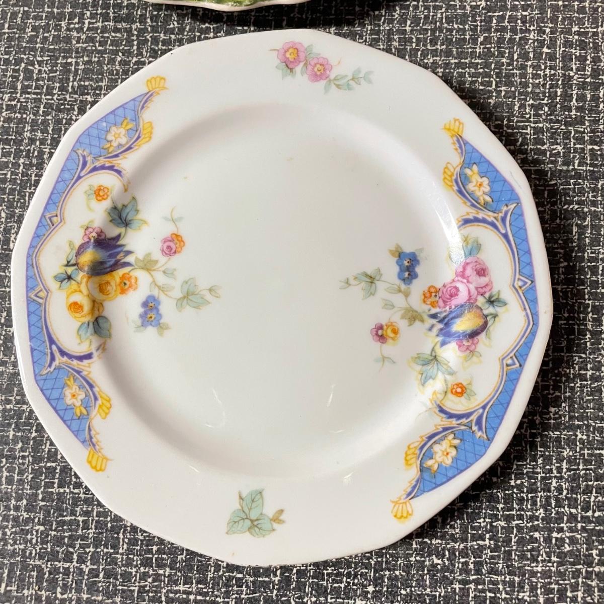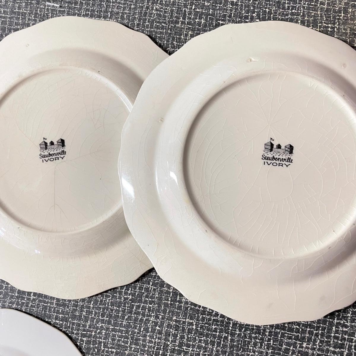 Eleven plates of fine china along with three vintage stoneware dishes. Many dishes are marked Limoges, and some chips were noted in photos. See images. The Corning 4.5 liter casserole dish measures 14” x 12”. Shipping available.