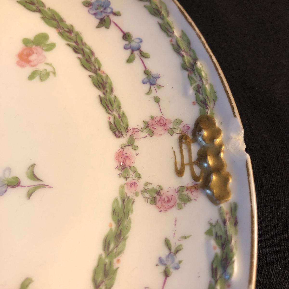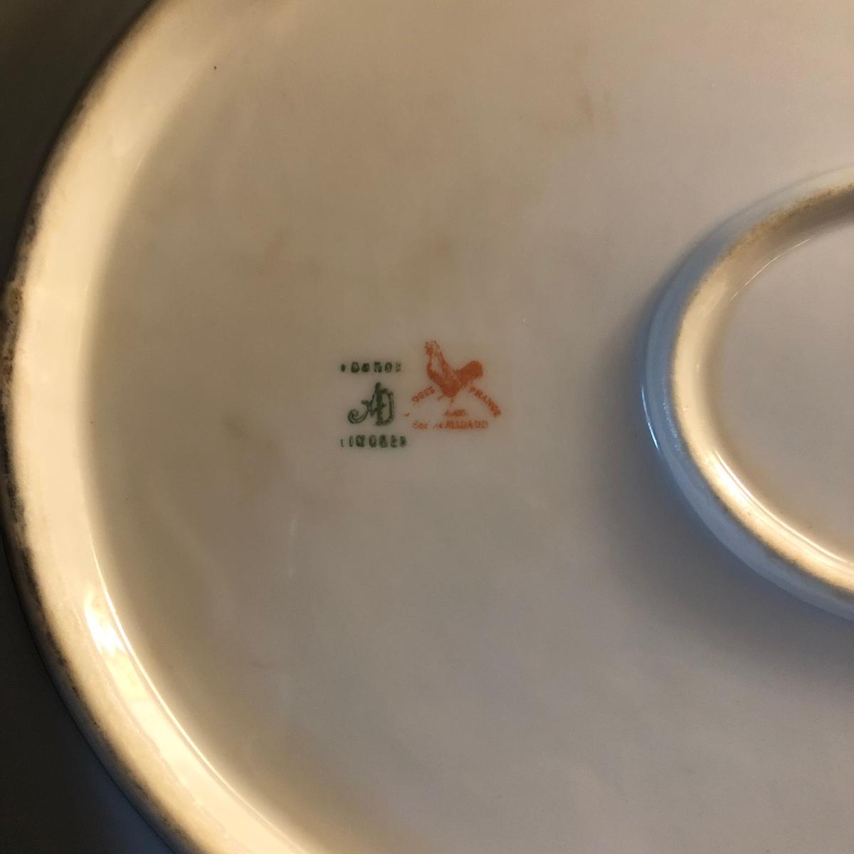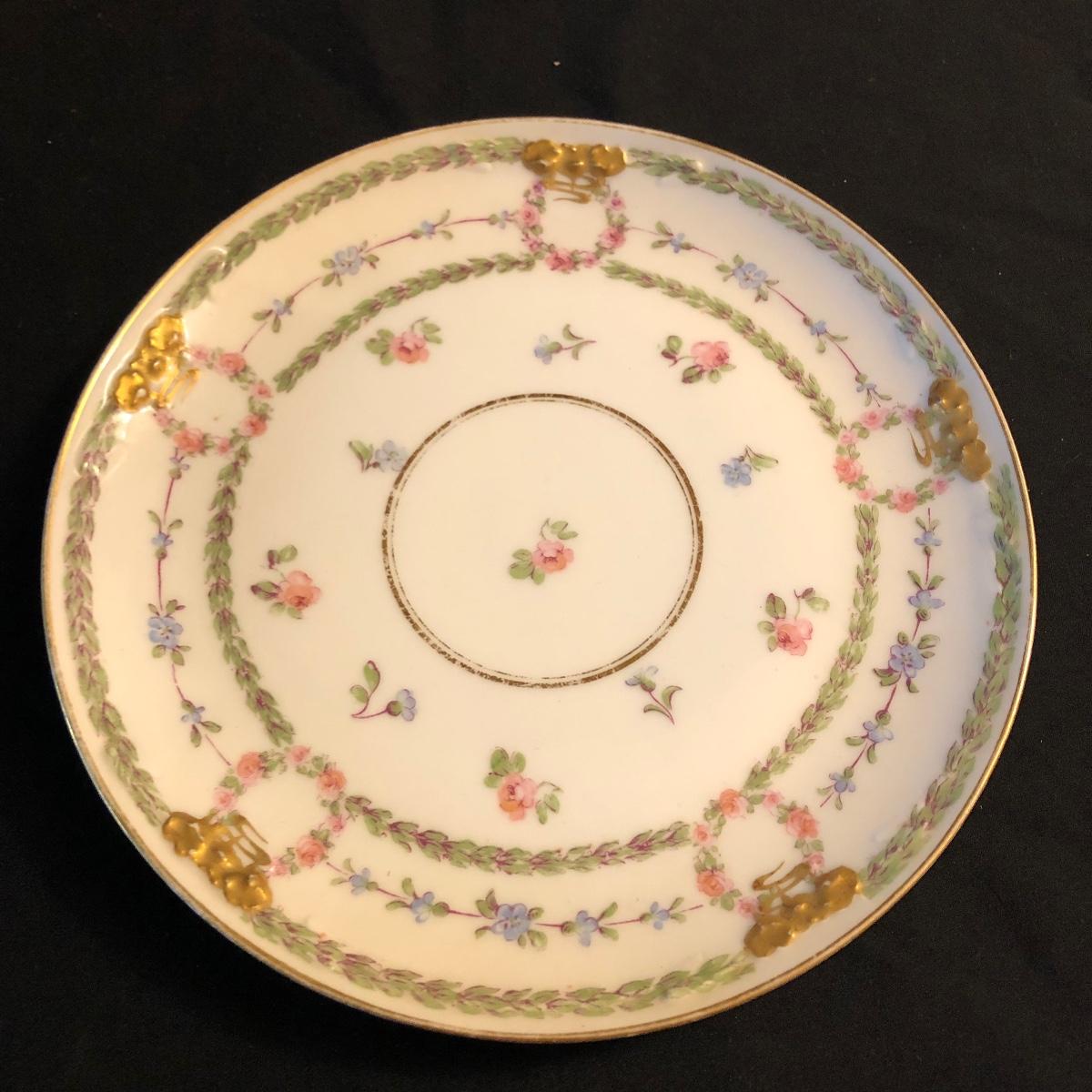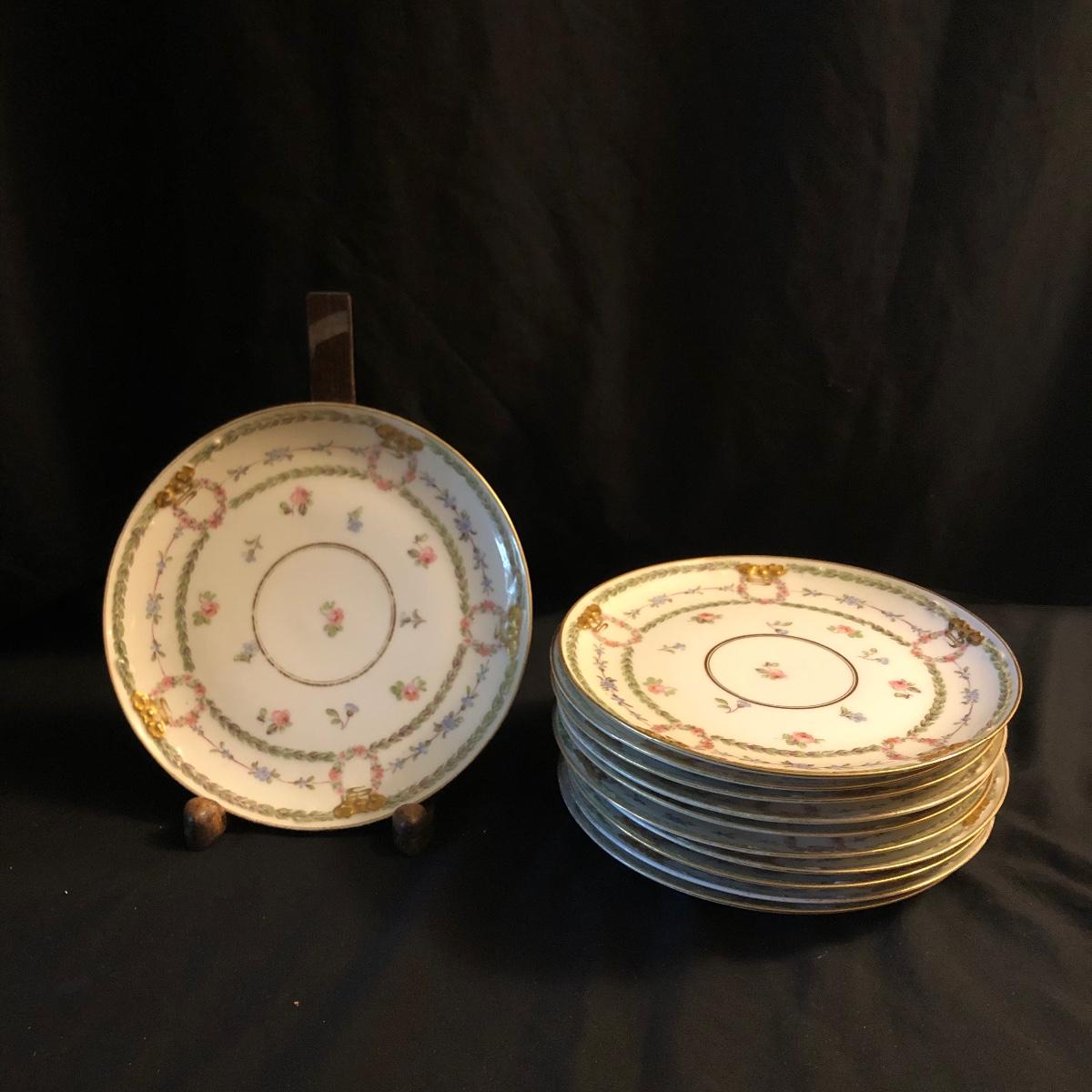Lot includes a Limoges floral design platter and eleven Limoges desert plates in the same design. Platter measures 11” x 15.5”.