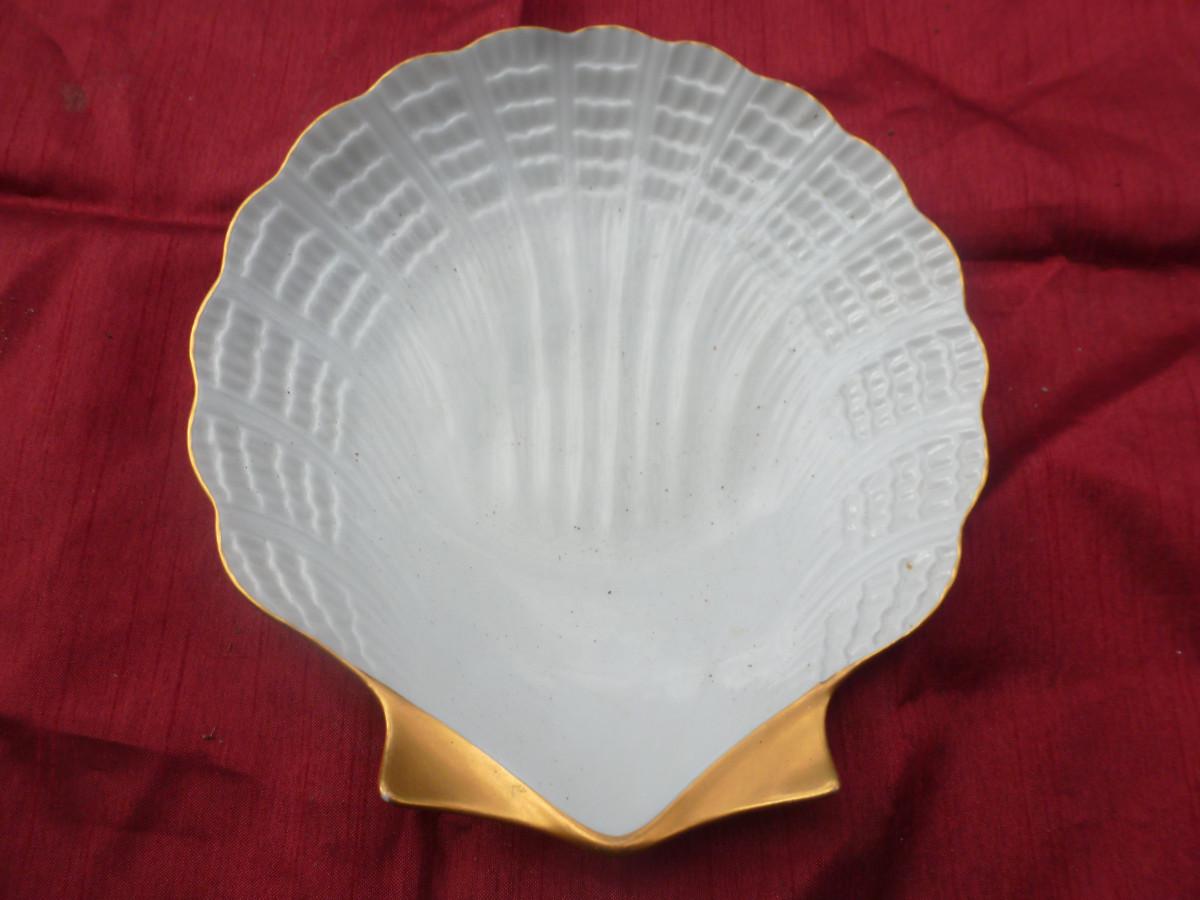 Limoges Porcelain Clam Design Trinket Dish with Gilded Accents- Approx 7"
