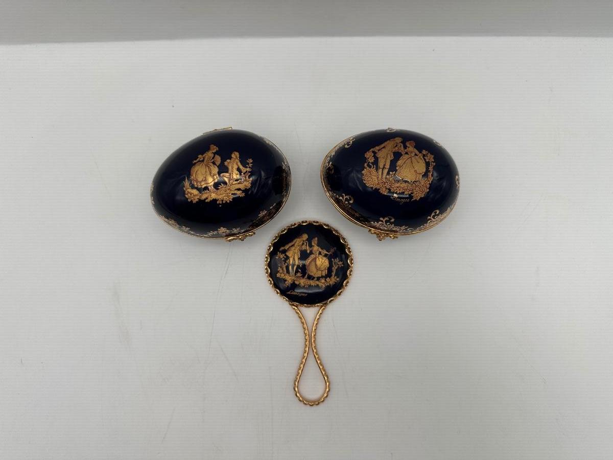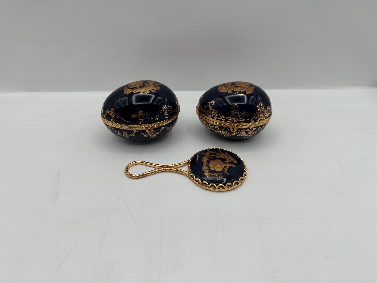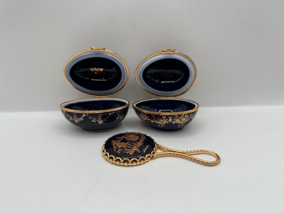 Limoges Porcelain Compact Hand Mirror & Egg Trinket