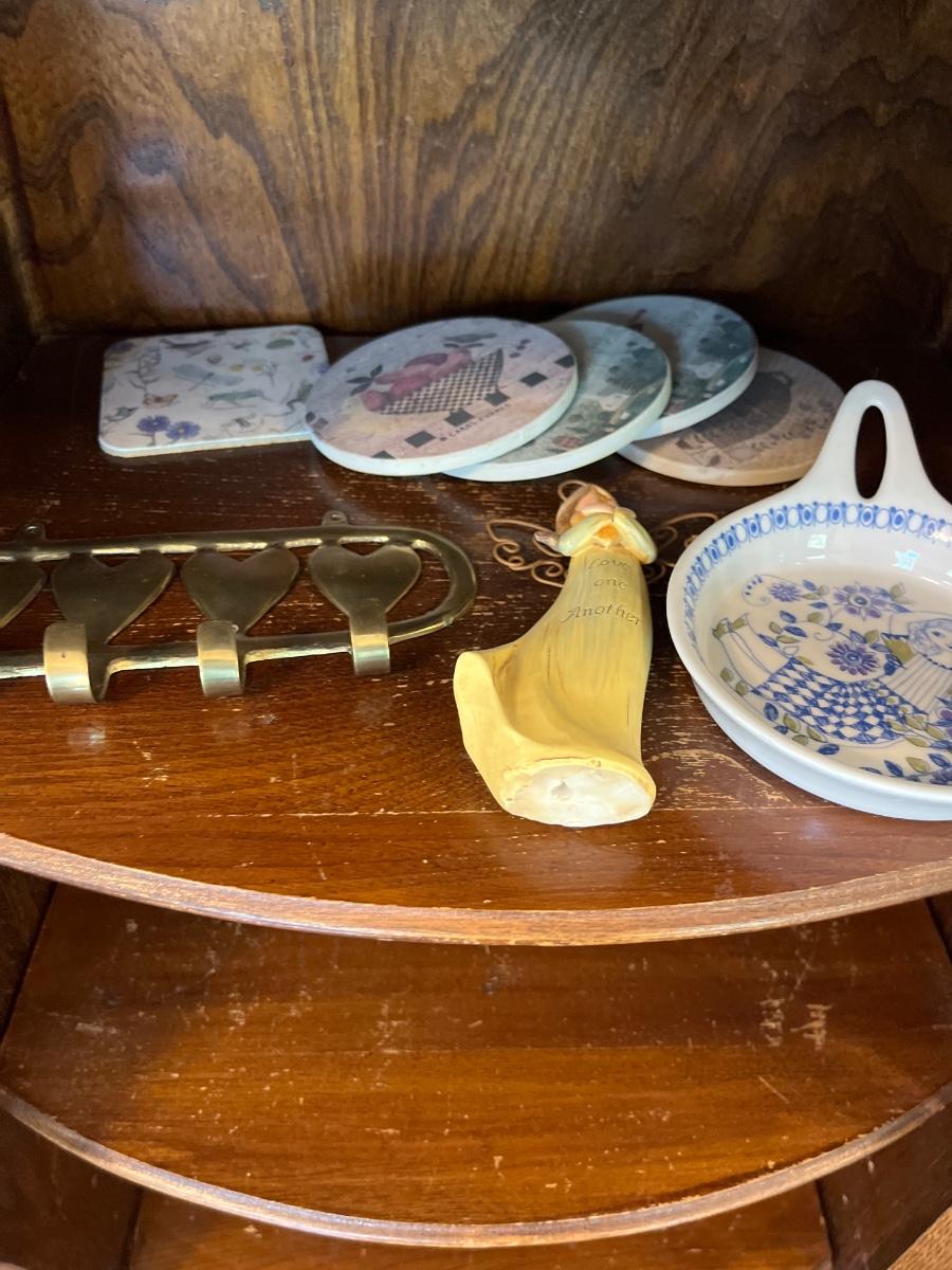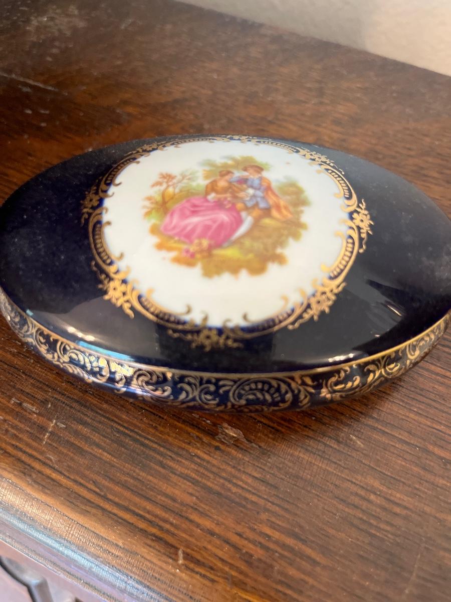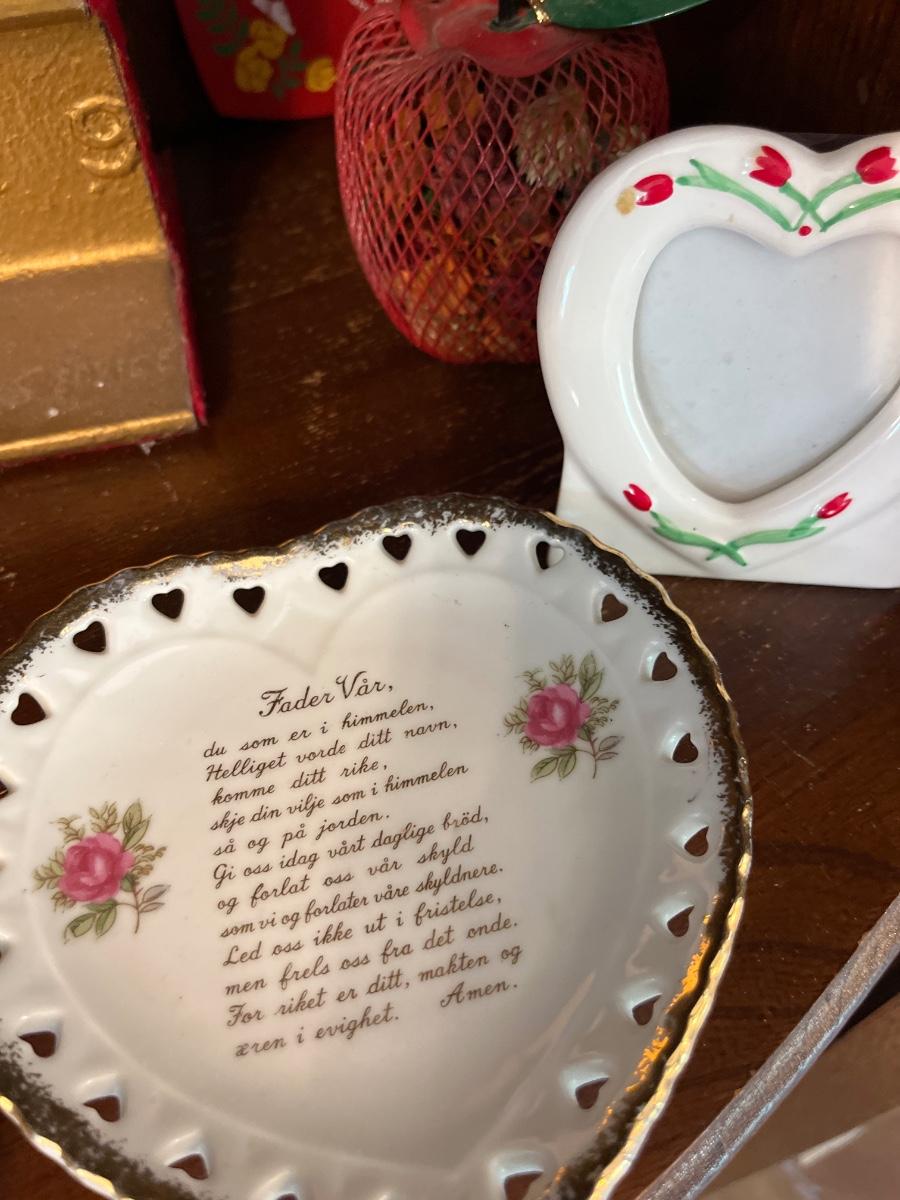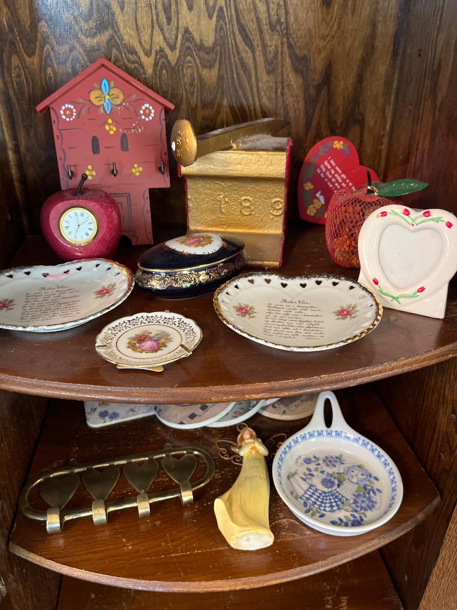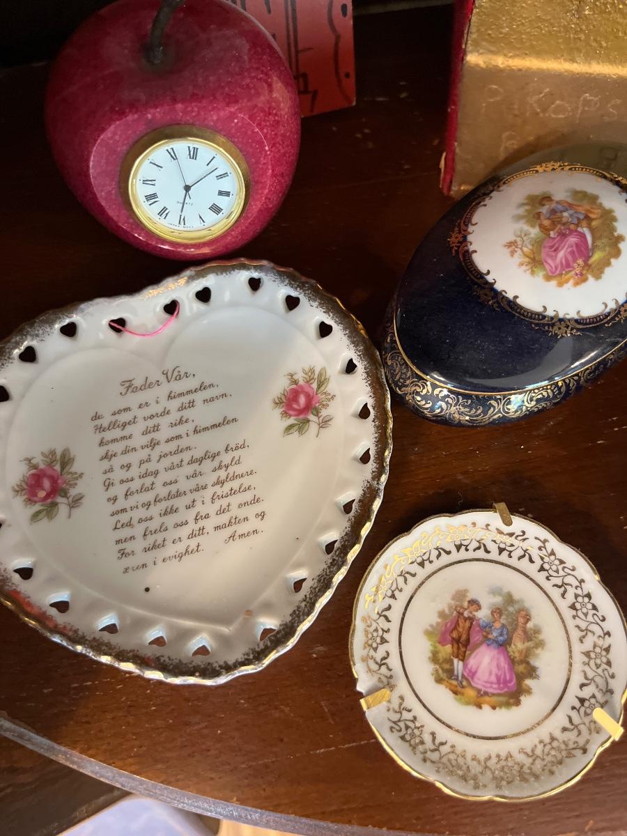 Limoges trinket box, vintage plates, railroad souvenir, brass heart key holder