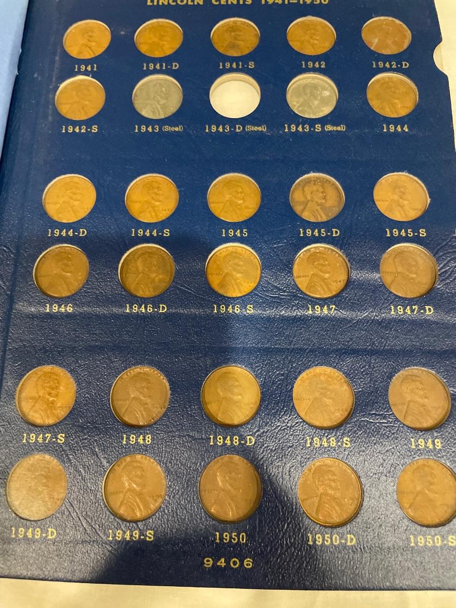 *2 Lincoln Cents Books 1941- Missing 12 coins in 1 book, Missing 28 coins