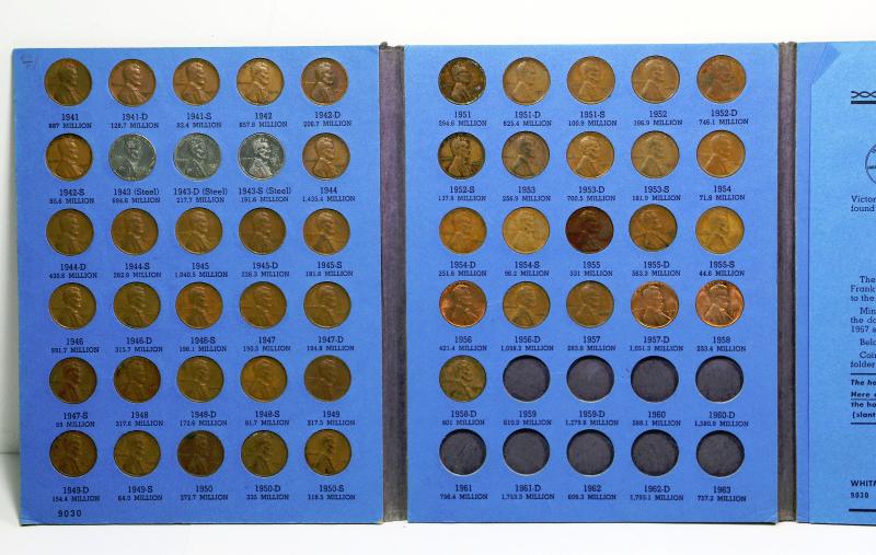 Album contains 51 cents - all dates from 1941 to 1958-D - 51 coins in album,