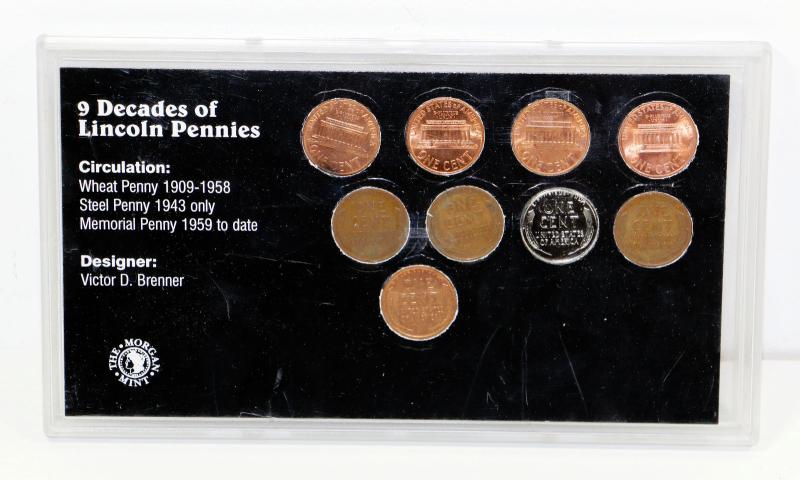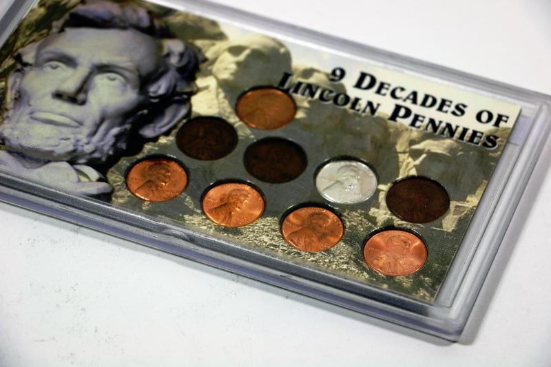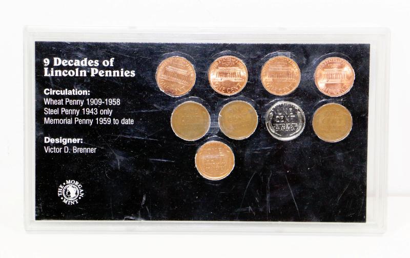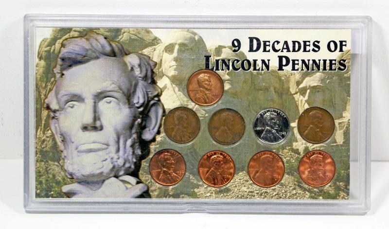 Lincoln Penny Coin Set in Case - 9 Decades of Lincoln Pennies.
