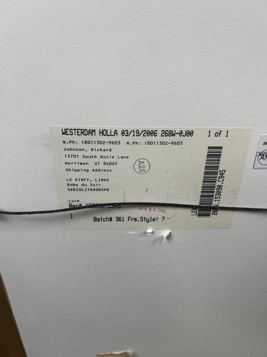 LINDA Le Kinff Serio lithograph Titled Robe du Soir Framed and signed in Pencil Dated April 2006