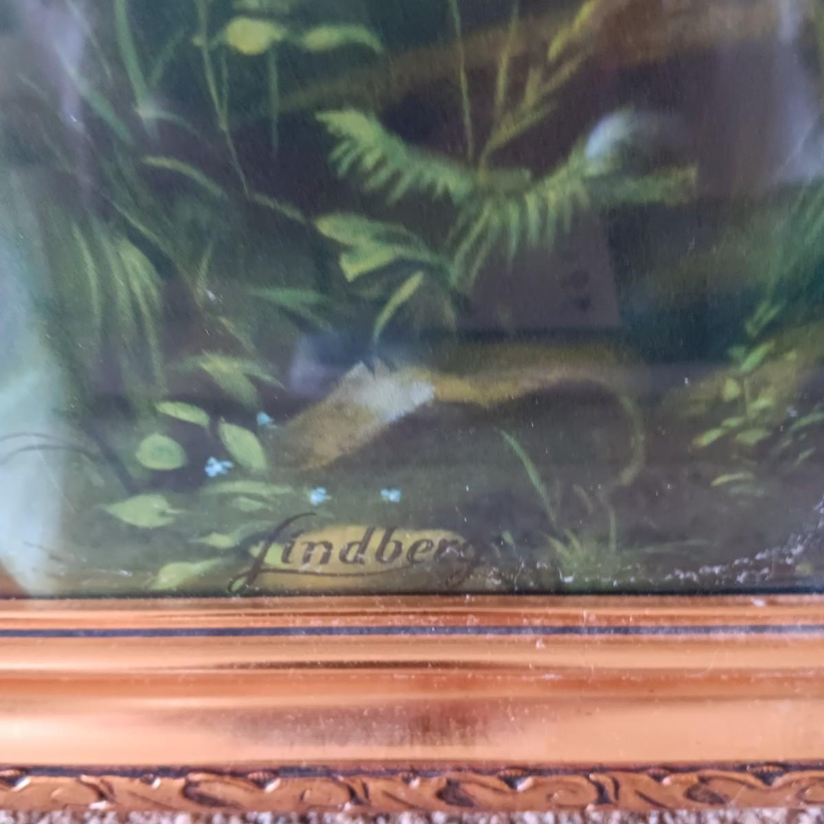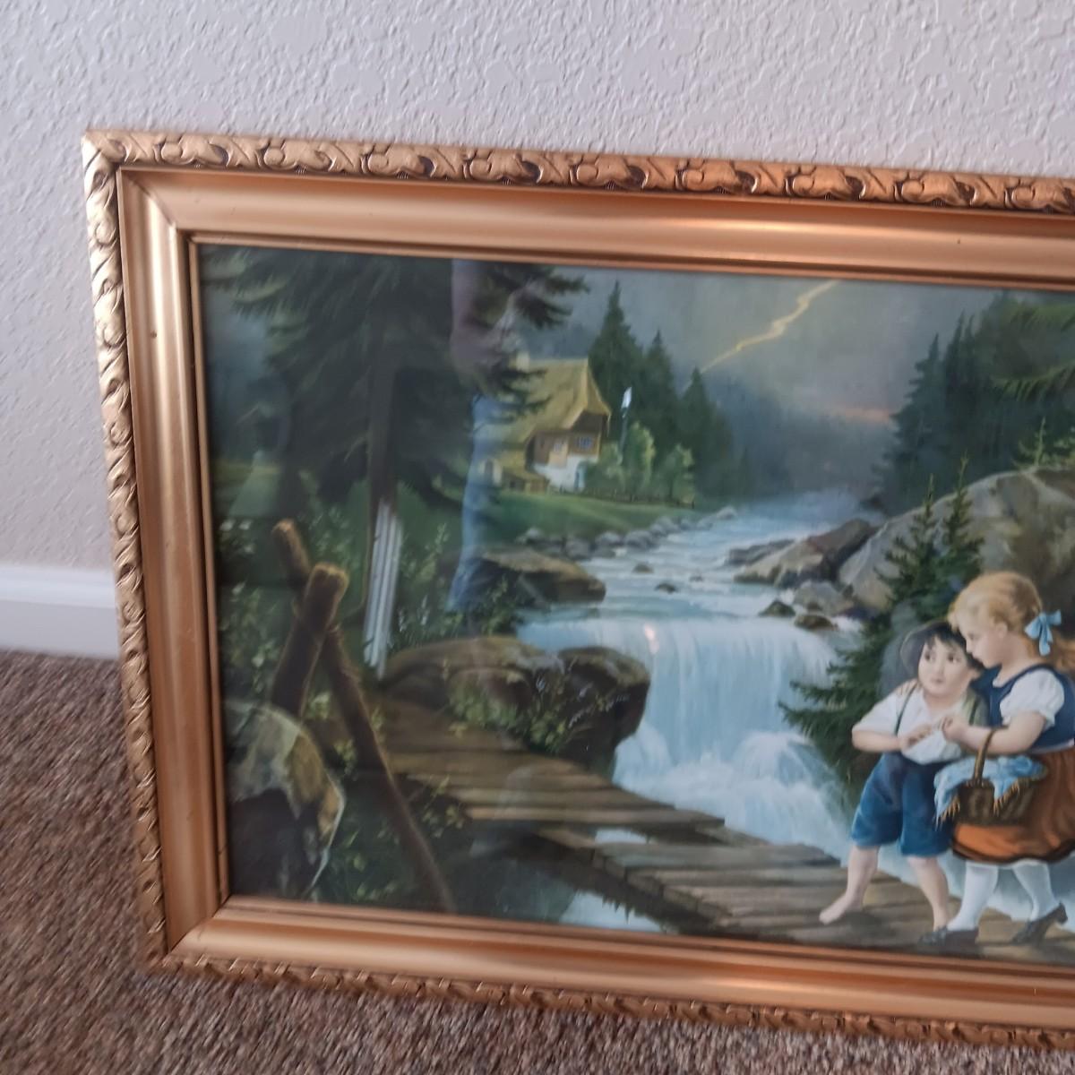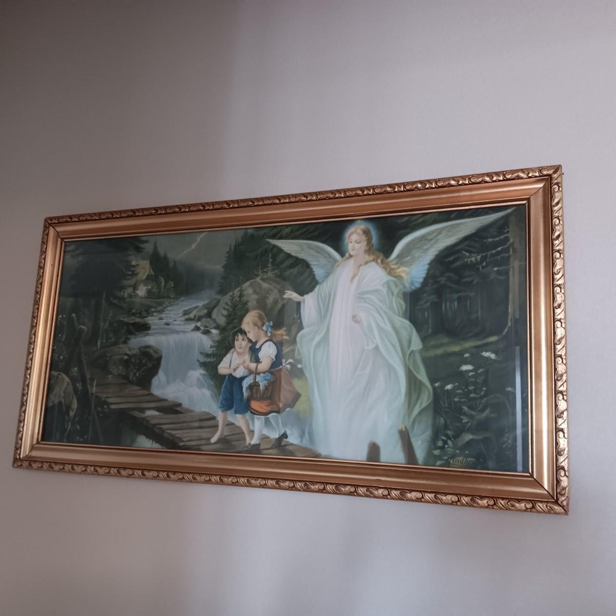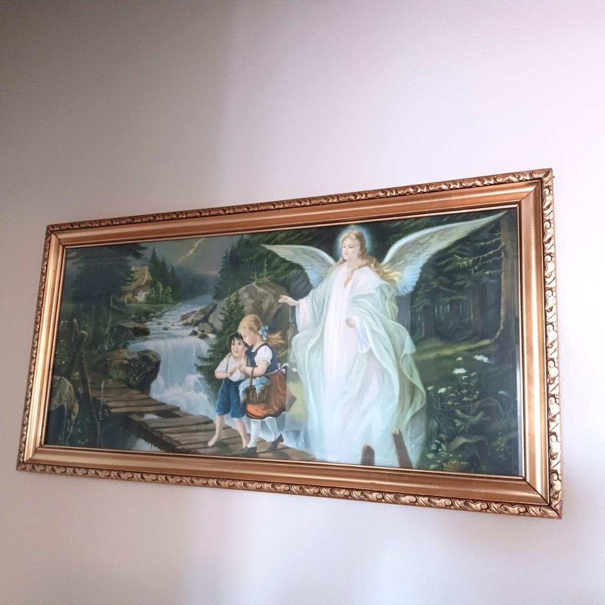 LINDBERG GOLD FRAMED PICTURE OF AN ANGEL WATCHING OVER 2 CHILDREN