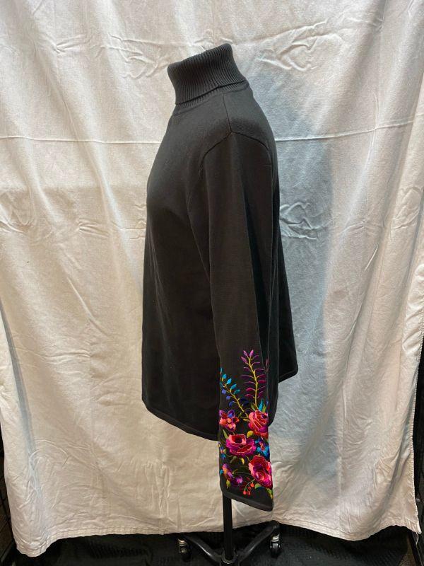 Linea by Louis Dell'Olio Black Turtleneck Sweater w Bright Floral Embroidery Sleeves YD#020-1220-02044