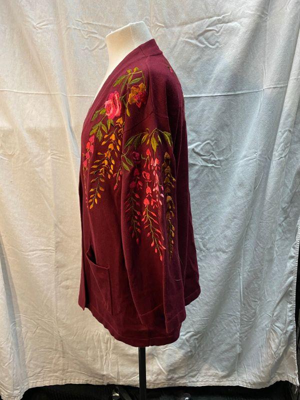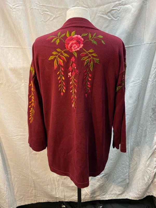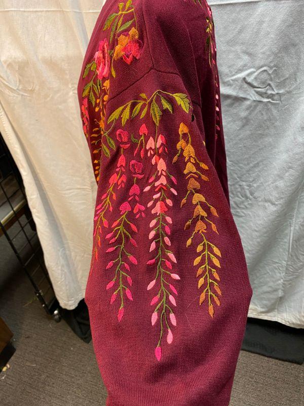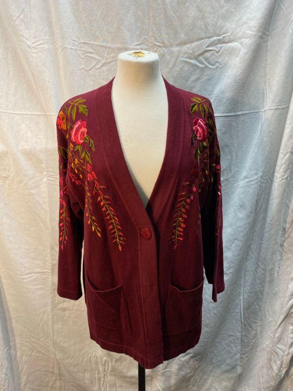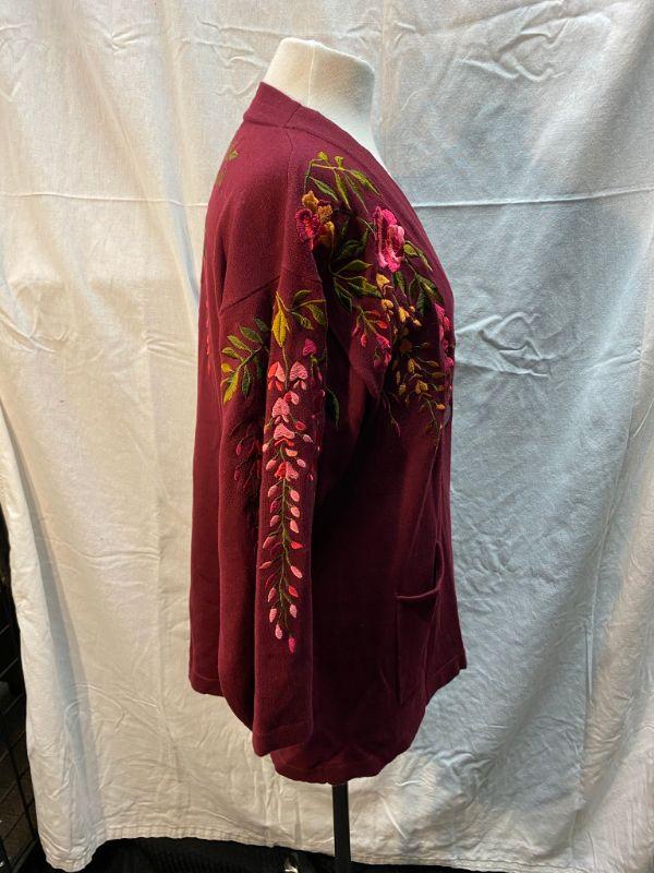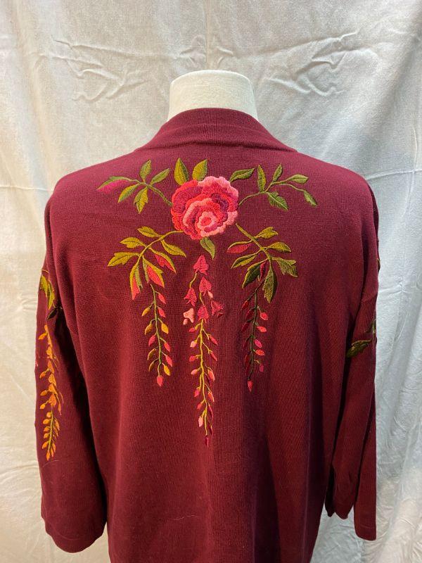 Linea by Louis Dell'Olio Dark Red Floral Embroidered Cardigan Sweater Size Large YD#020-1220-02029