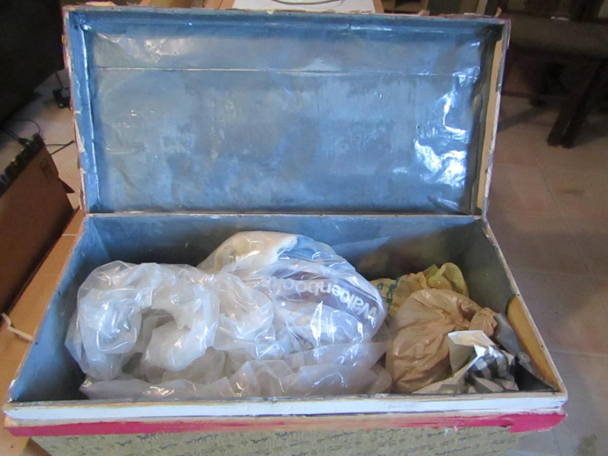 Lined Wooden Trunk with Sewing/Needlepoint Materials