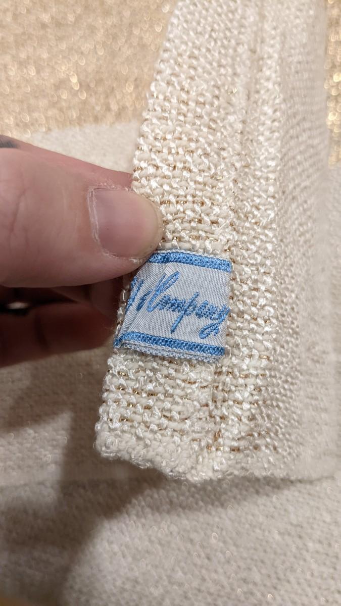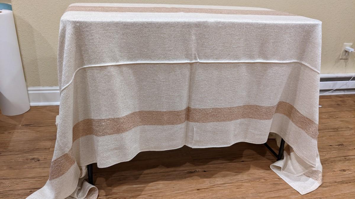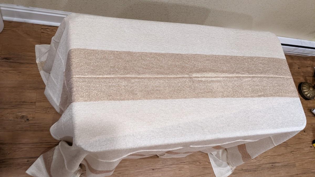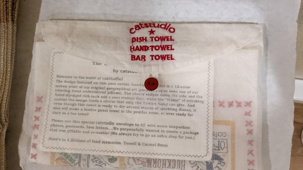 includes new in package queen size feather bed cover, CatStudio San Antonio tea towel, and a gorgeous set of Marshall & Company vintage egyptian cotton and metallic thread 15"x15.75" placemats and 63"x98" table cover. These babies are SOFT with a lovely linen design. SO PRETTY and in great shape for age. No stains, tears, or holes noted. 2 placemats show pull on thread and table cover shows 3 spots of pull, please note in photos.