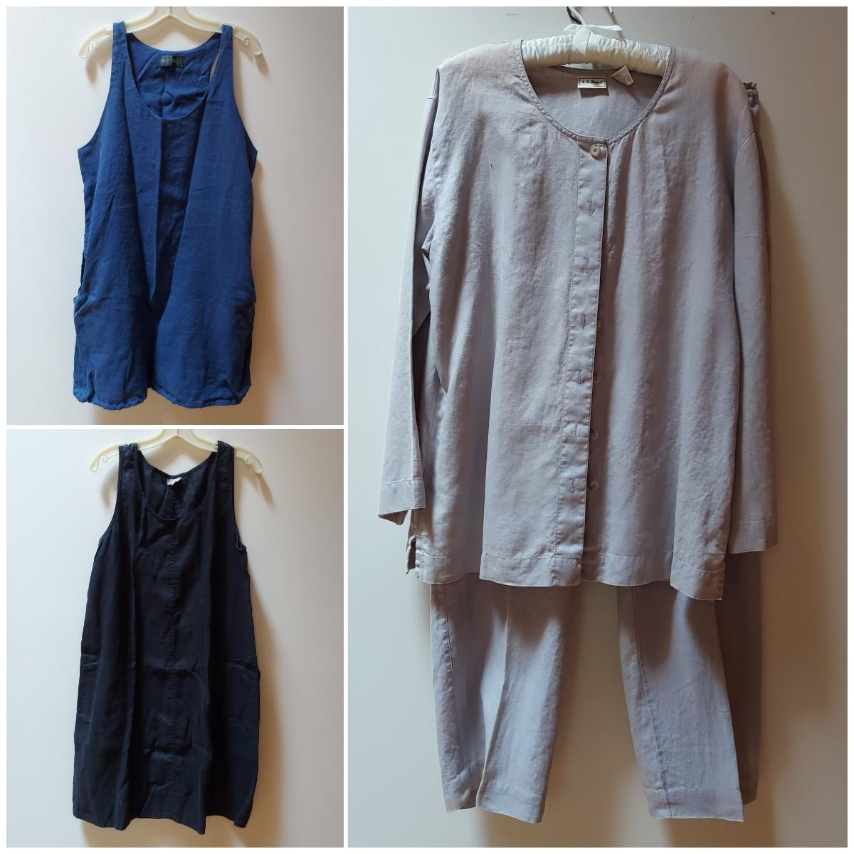 Lot includes two dresses, two matching sets and one maxi skirt. Brands include L.L. Bean, J. Jill and more. Some items have dust and/or discoloration from hanging in the closet. Appears to be washable. Items are mostly size M. Please see photos for details. Shipping available