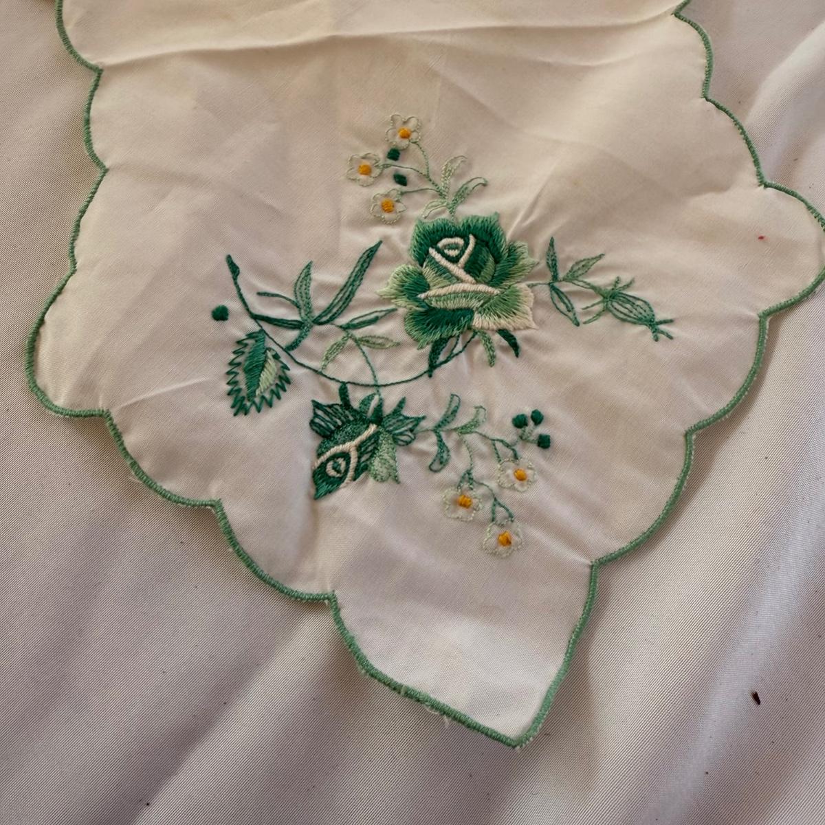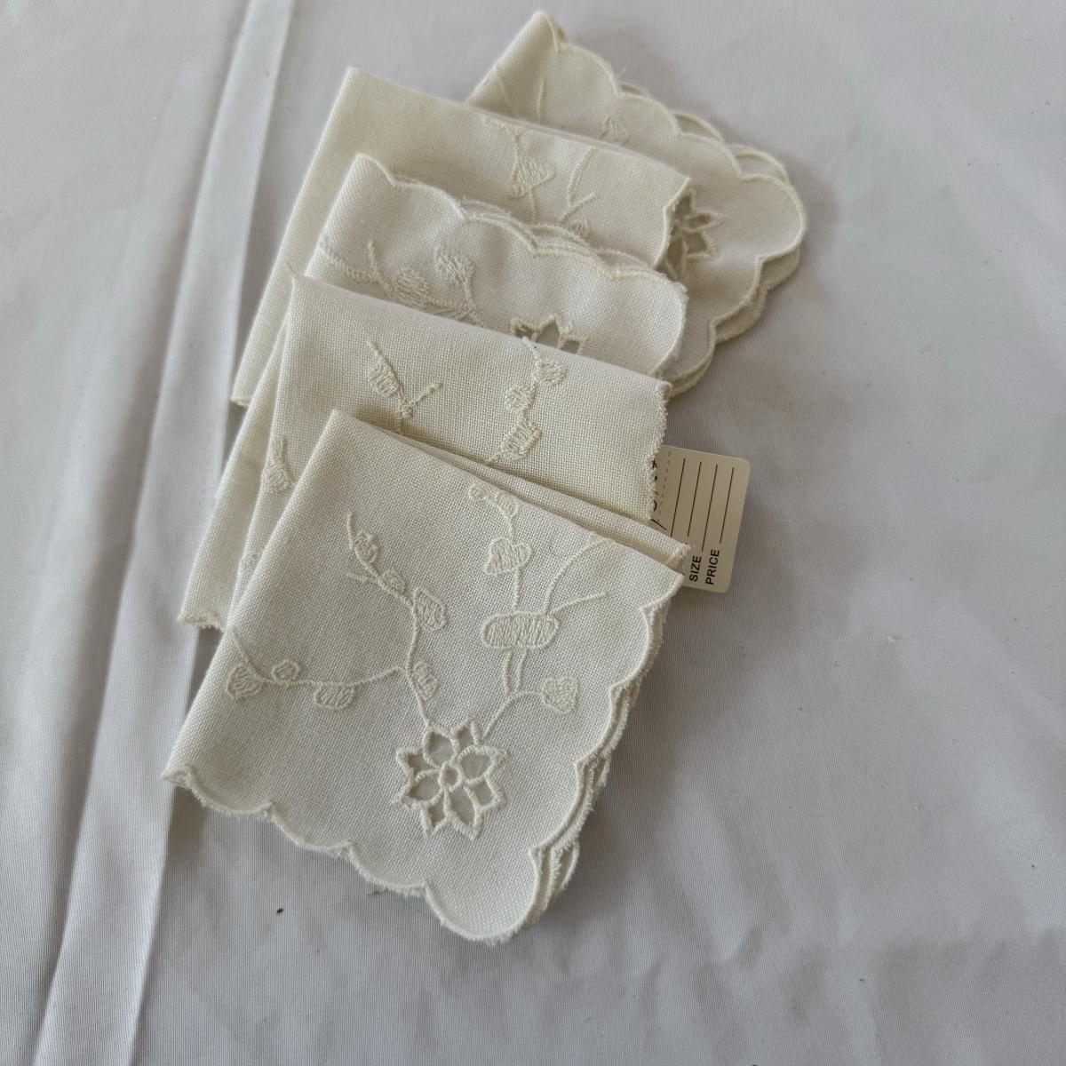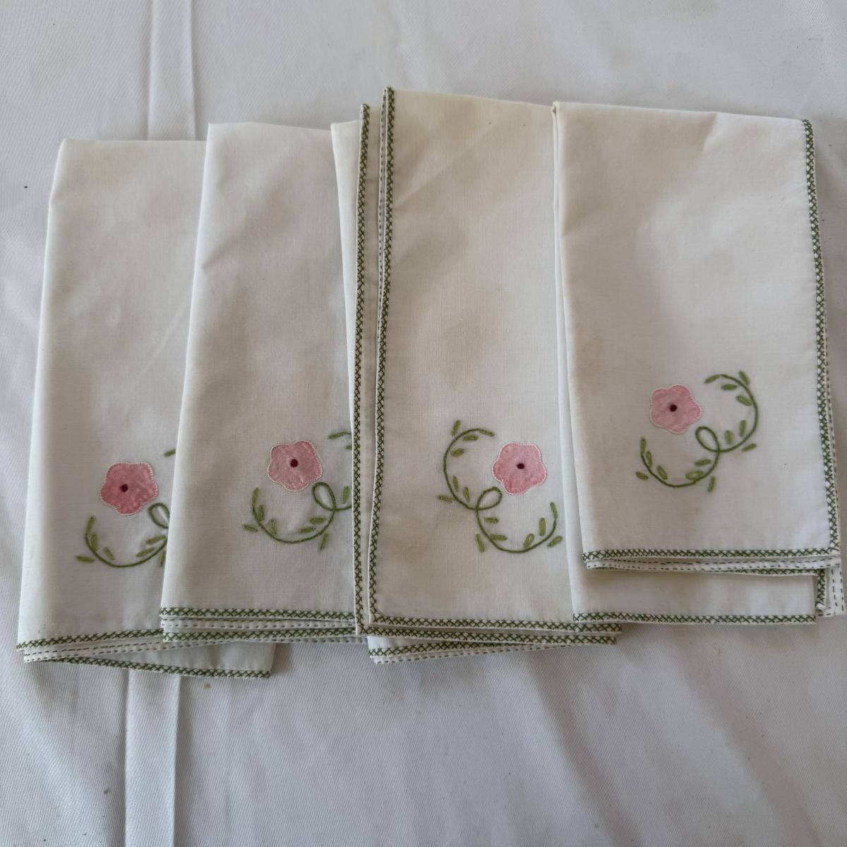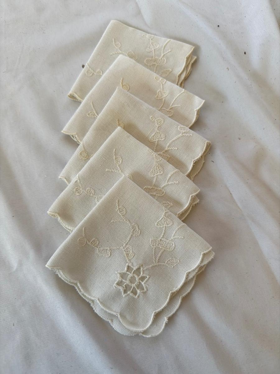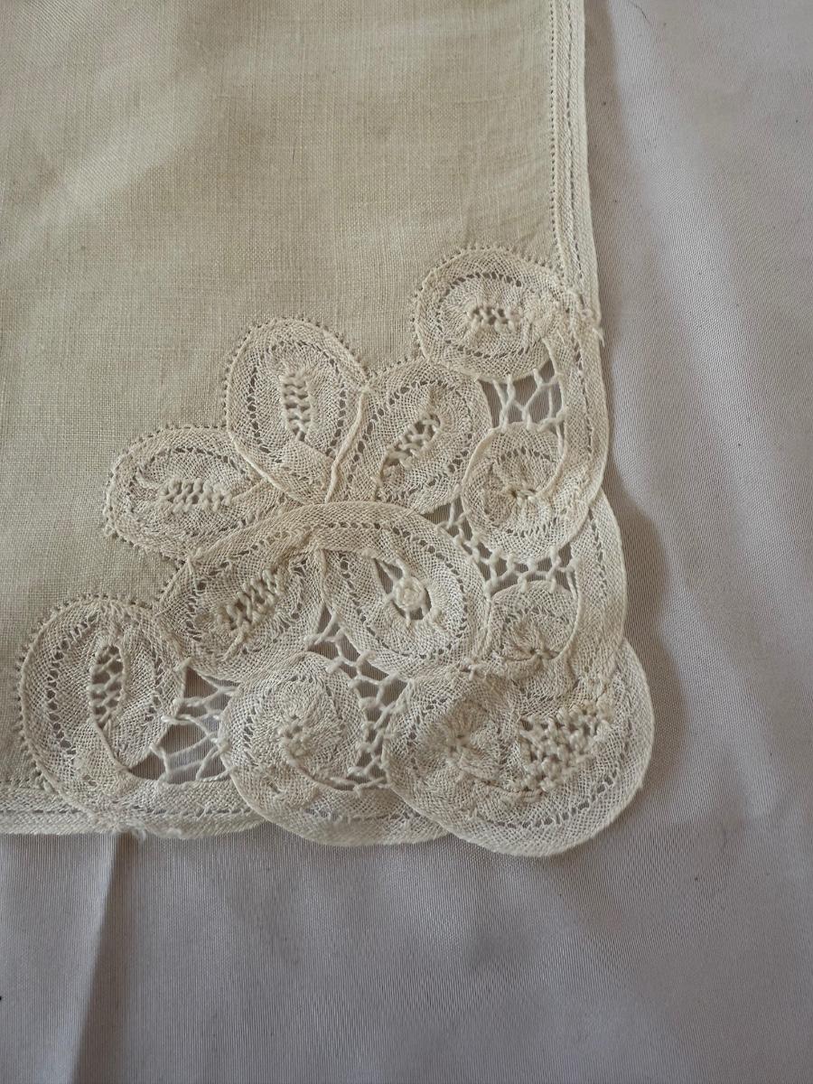 A large assortment of what appears to be hand crocheted doilies and beautiful linen coasters and napkins. The pink blue and yellow rectangular doily in the photograph measures 7.5” X 11”. The oval, orange and cream doily measures 16” X 7.5”. Eleven matching linen white napkins measure 11.5 X 17.5” each. The cross stitched linen table runner measures 41” X 14”. See photographs for entire inventory of lot.
